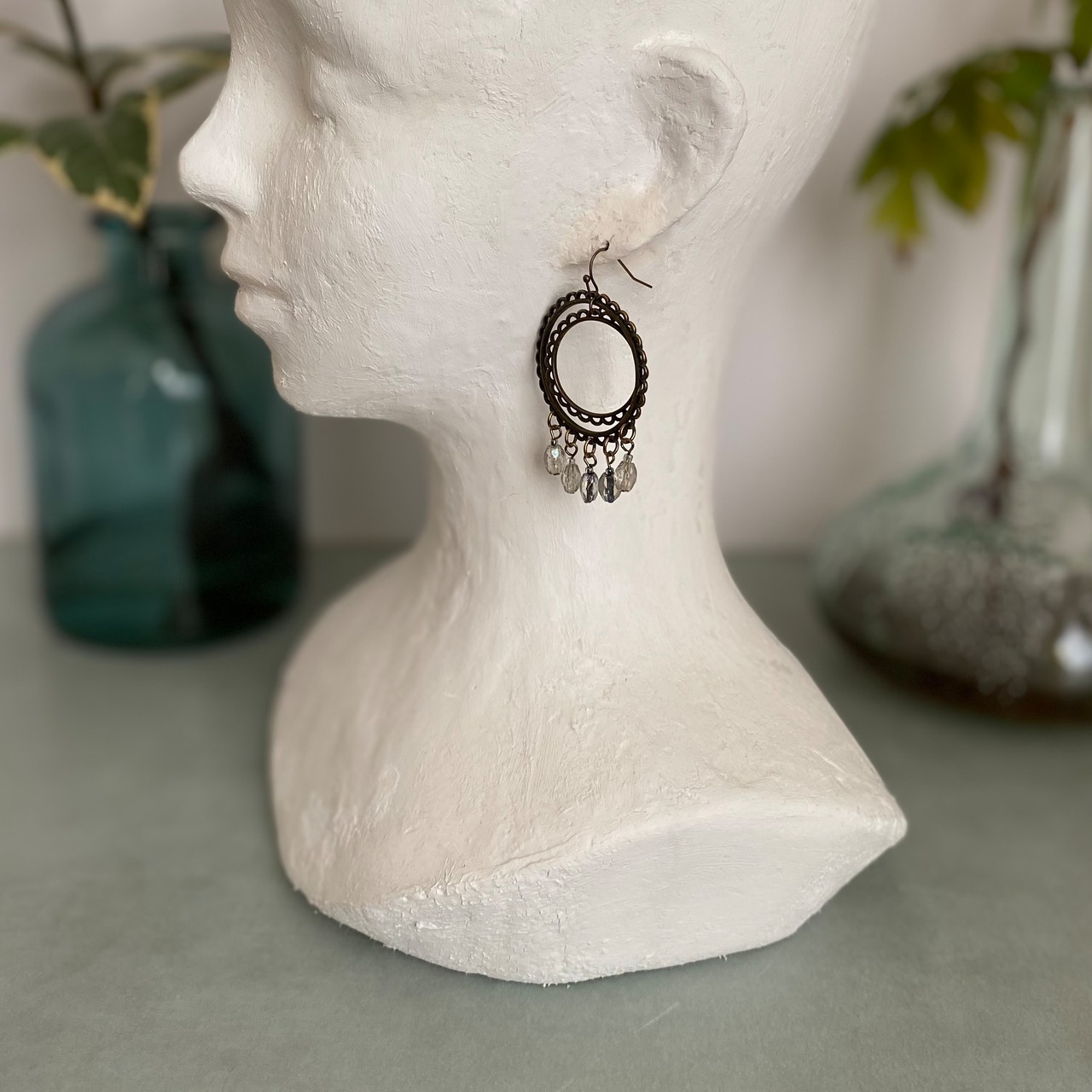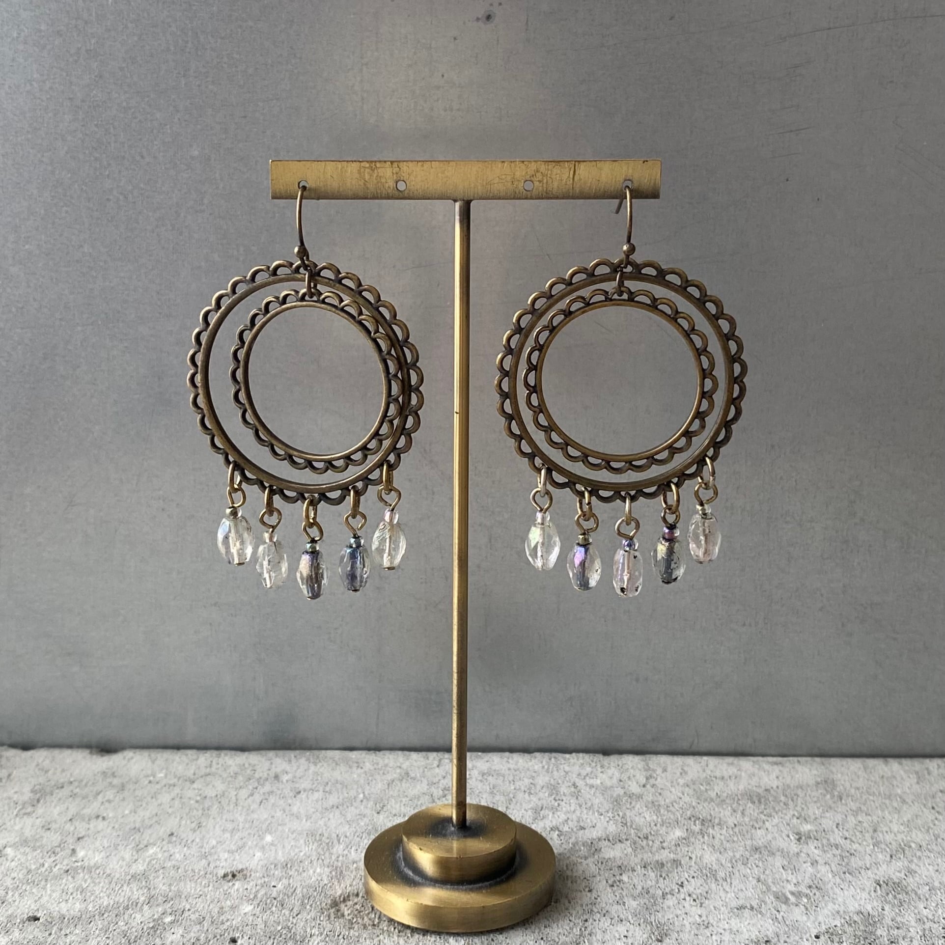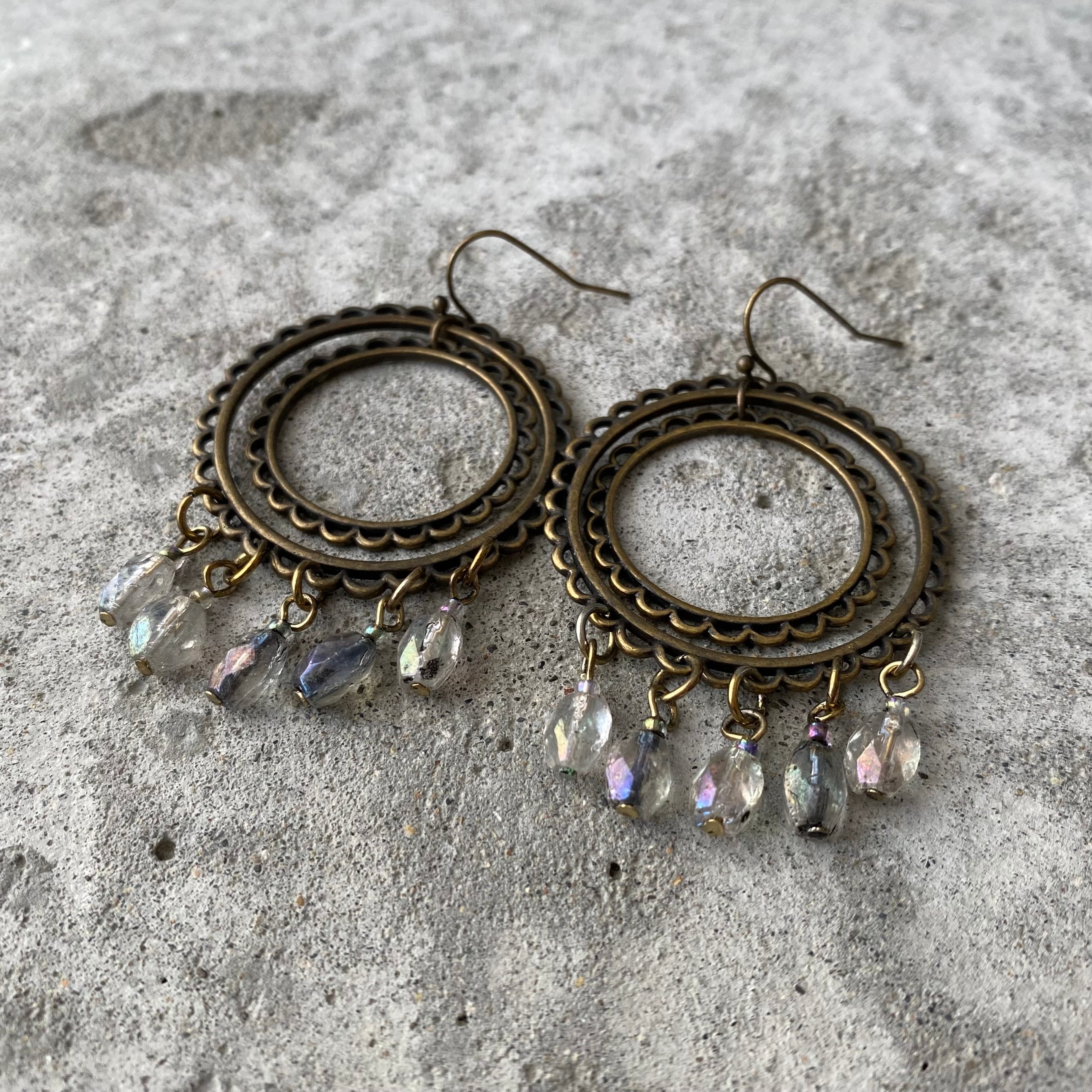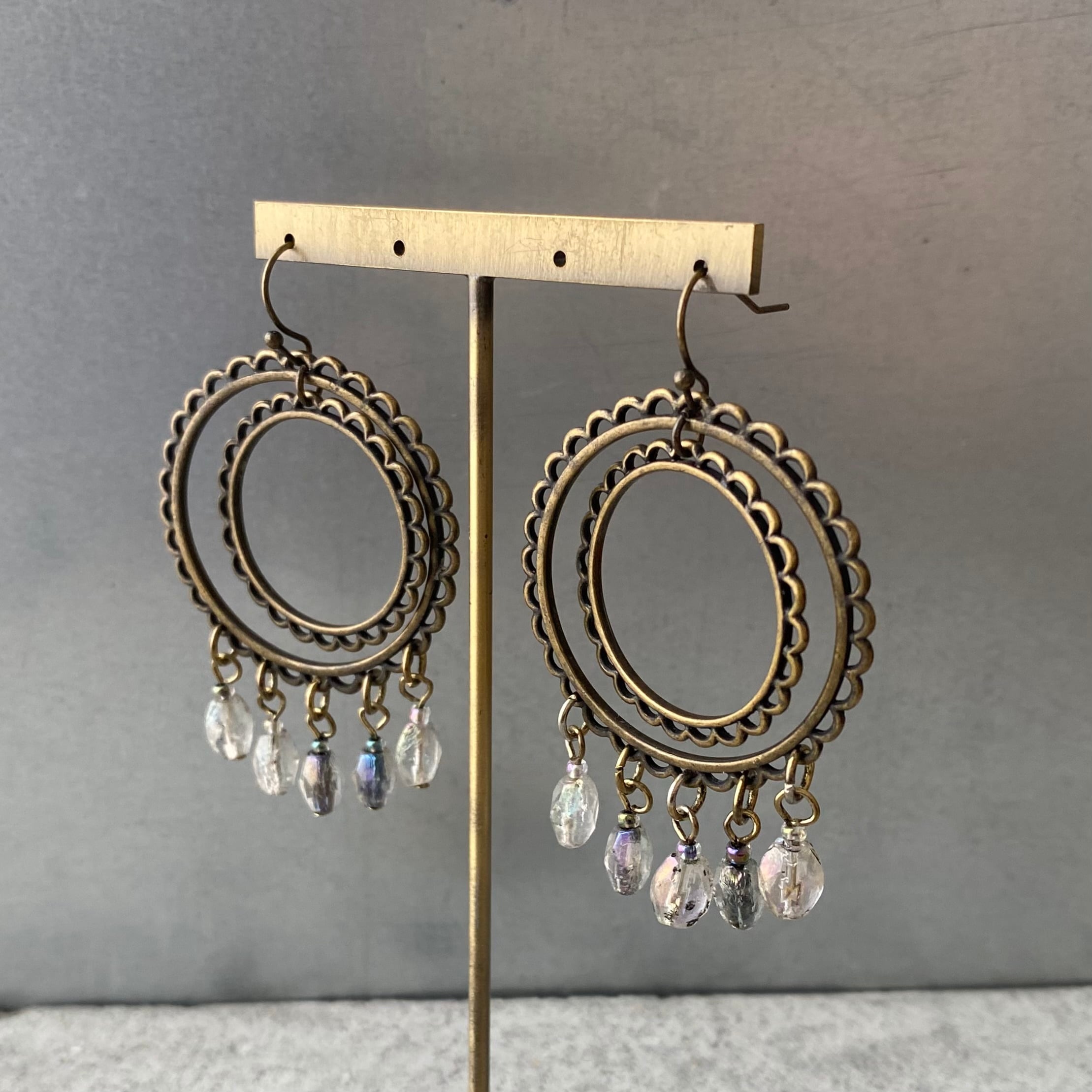 クラシカルな雰囲気のUSAユーズドピアス。ハンドメイドのガラスビーズがフリンジのように揺らめくお洒落なデザインです。存在感がありお顔まわりを華やかな雰囲気にしてくれます。