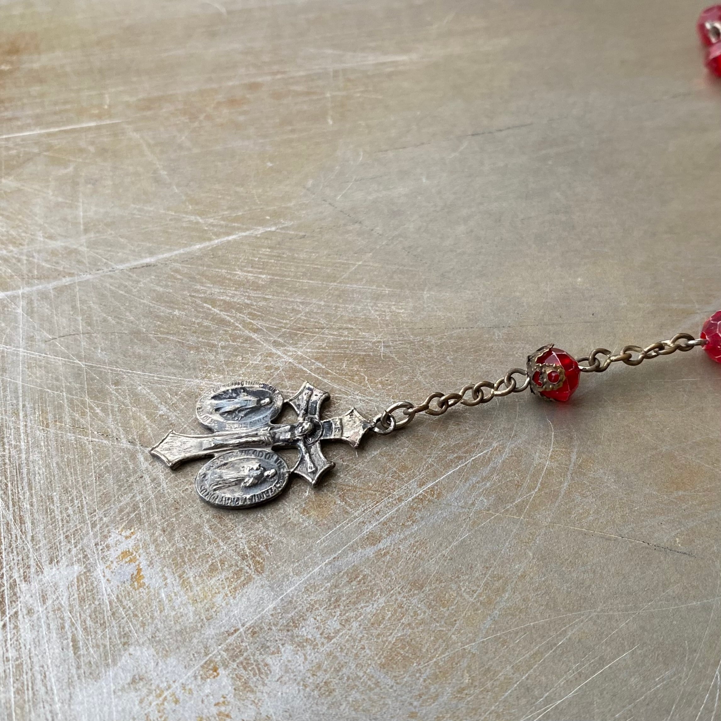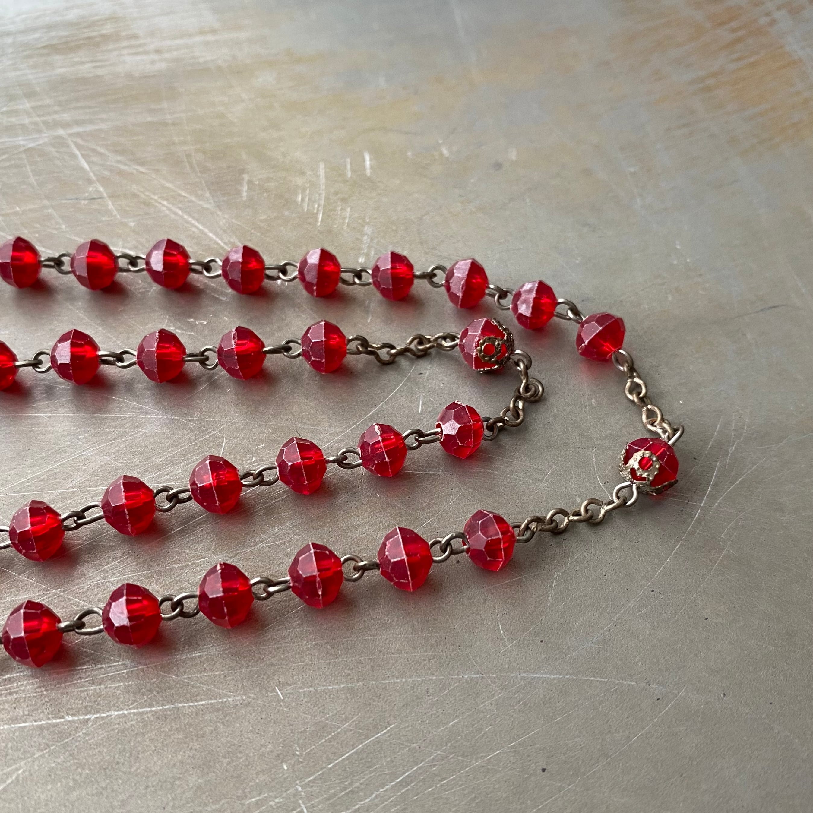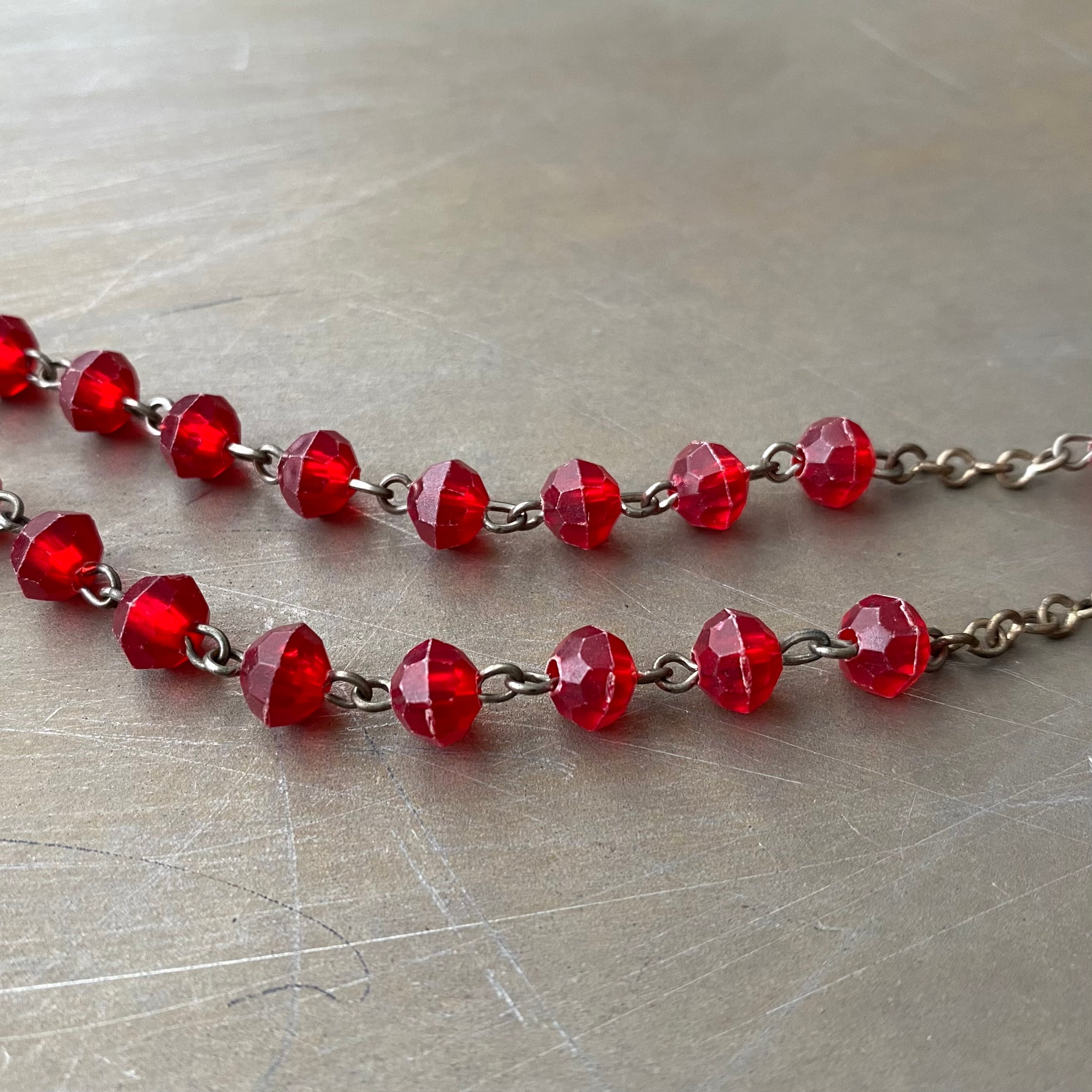 Vintage USA retro red bedas rosario necklace レトロ アメリカ ヴィンテージ アクセサリー レッド 赤 ビーズ ロザリオ ネックレス