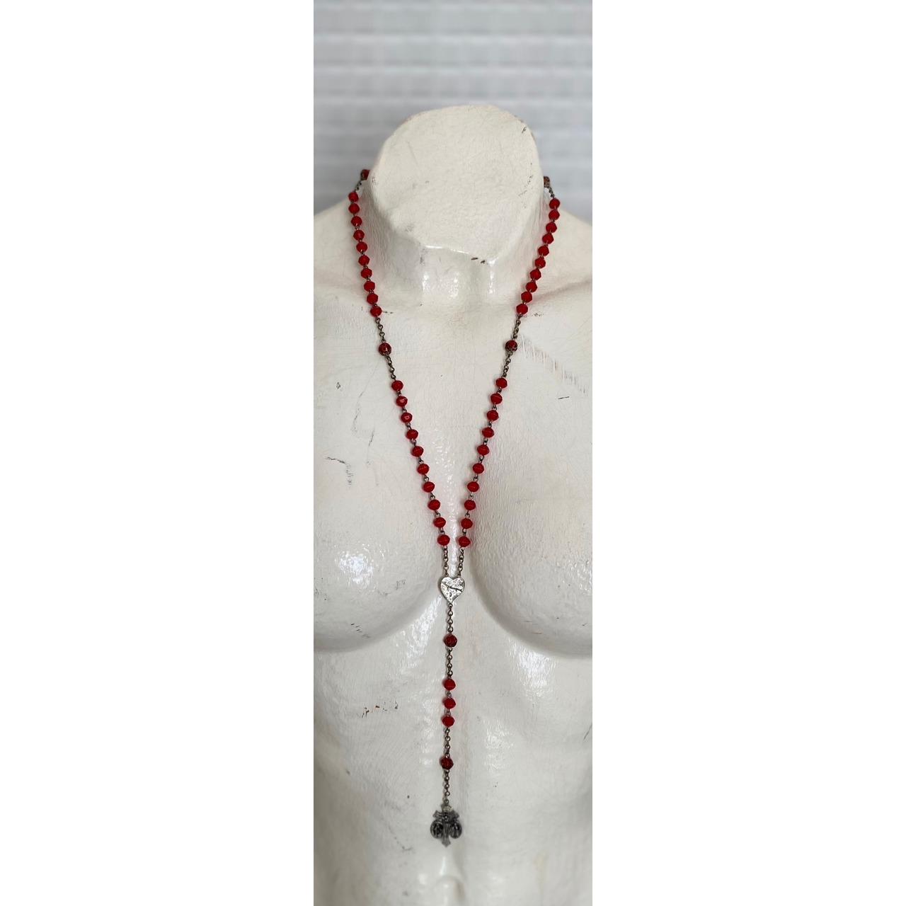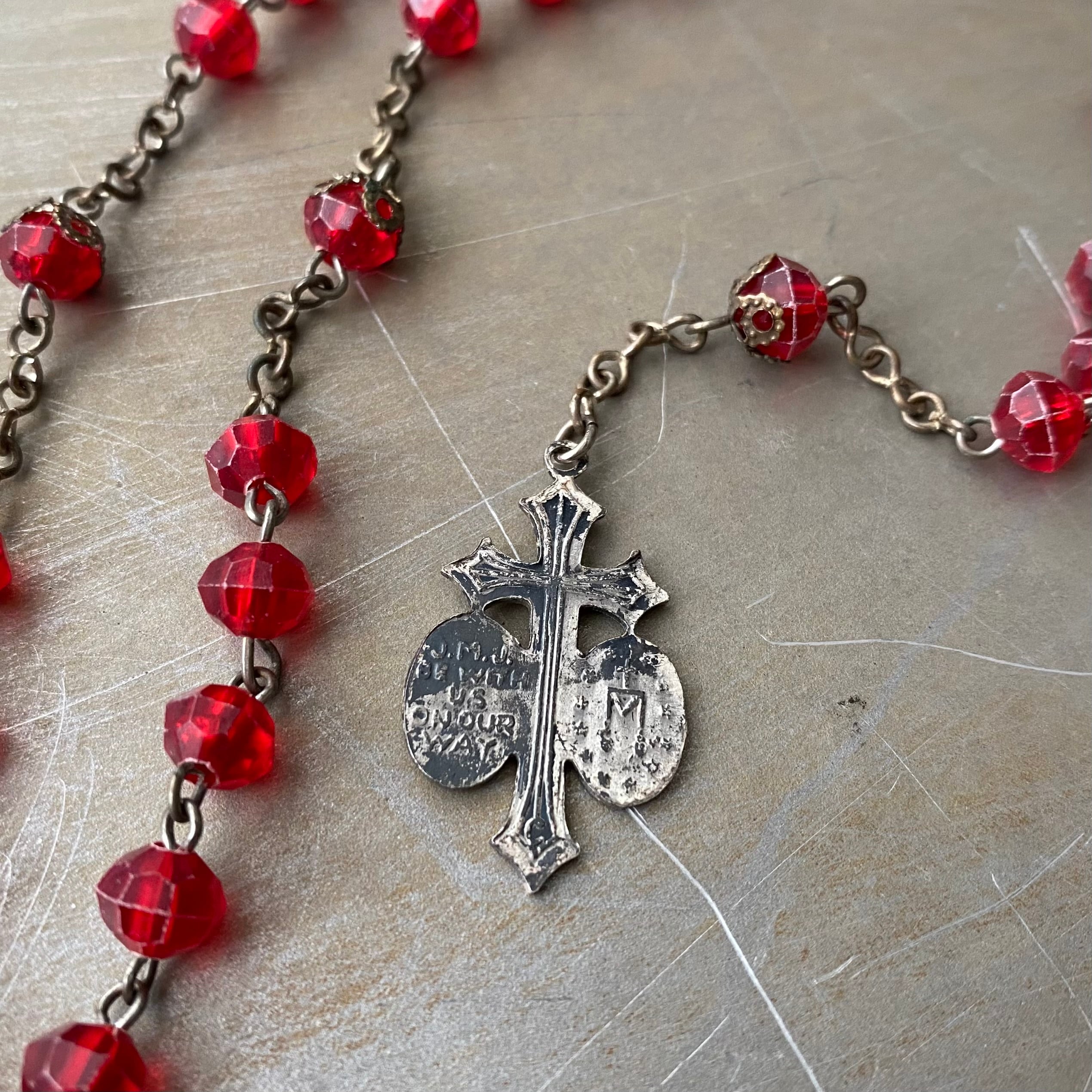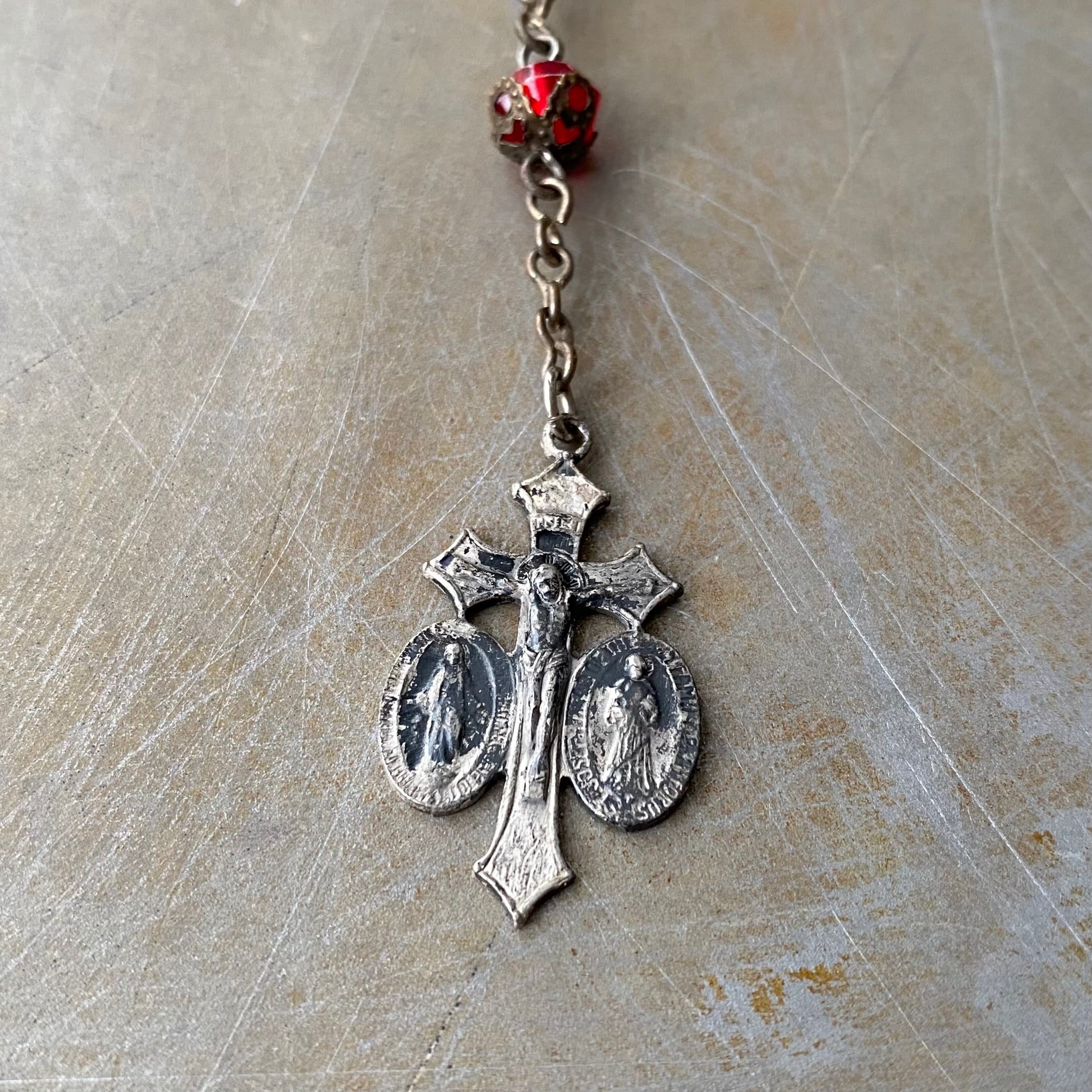 Vintage USA retro red bedas rosario necklace レトロ アメリカ ヴィンテージ アクセサリー レッド 赤 ビーズ ロザリオ ネックレス