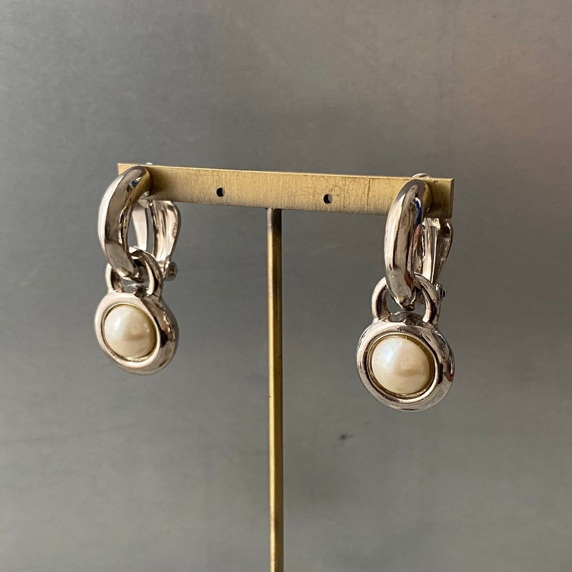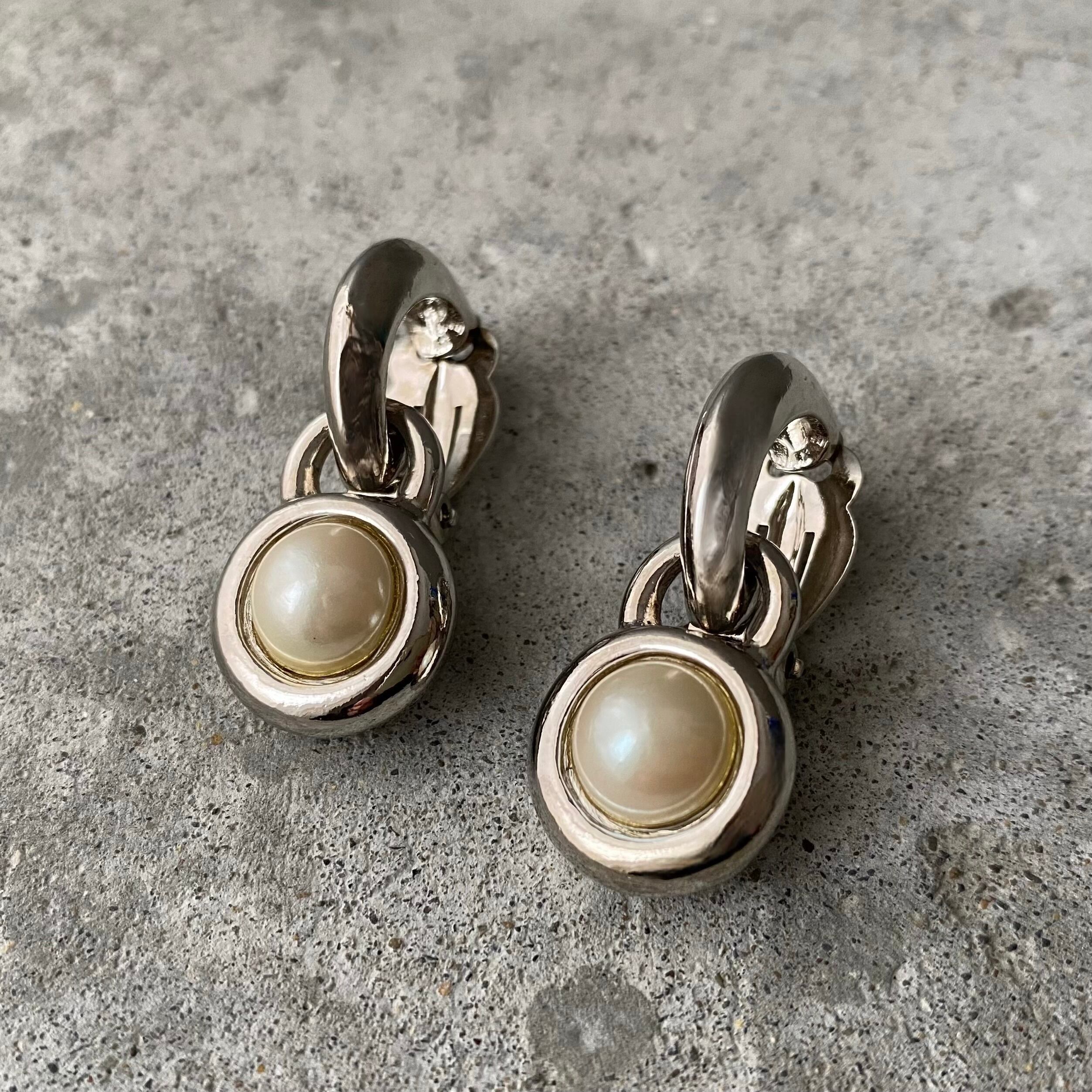 Vintage 80s-90s retro pearl hoop earring レトロ ヴィンテージ アクセサリー シルバー パール フープ イヤリング