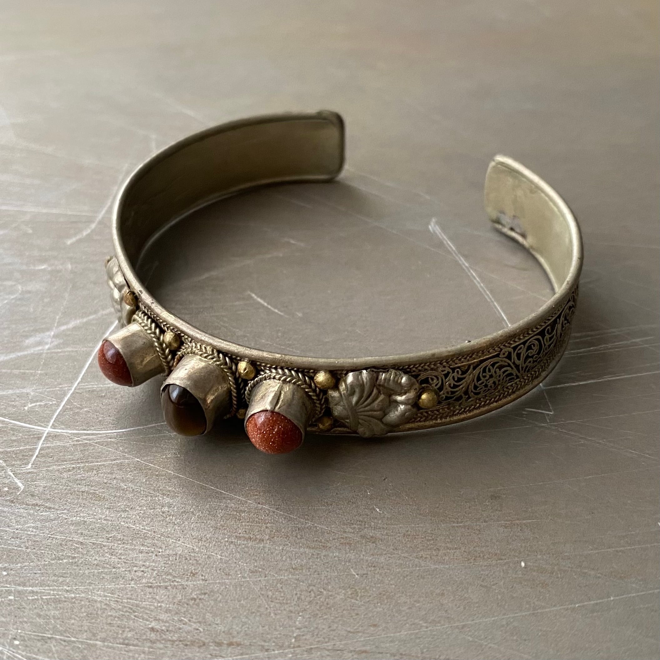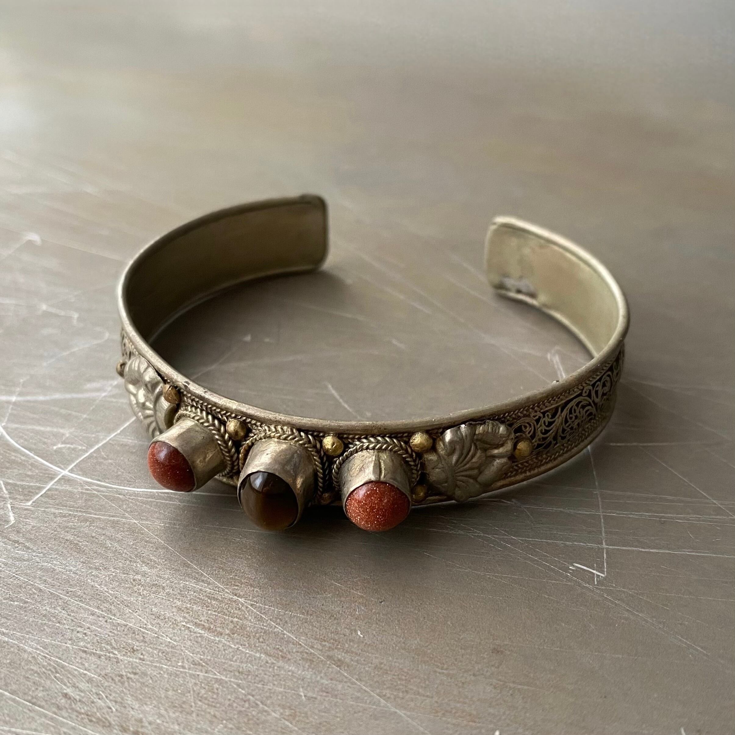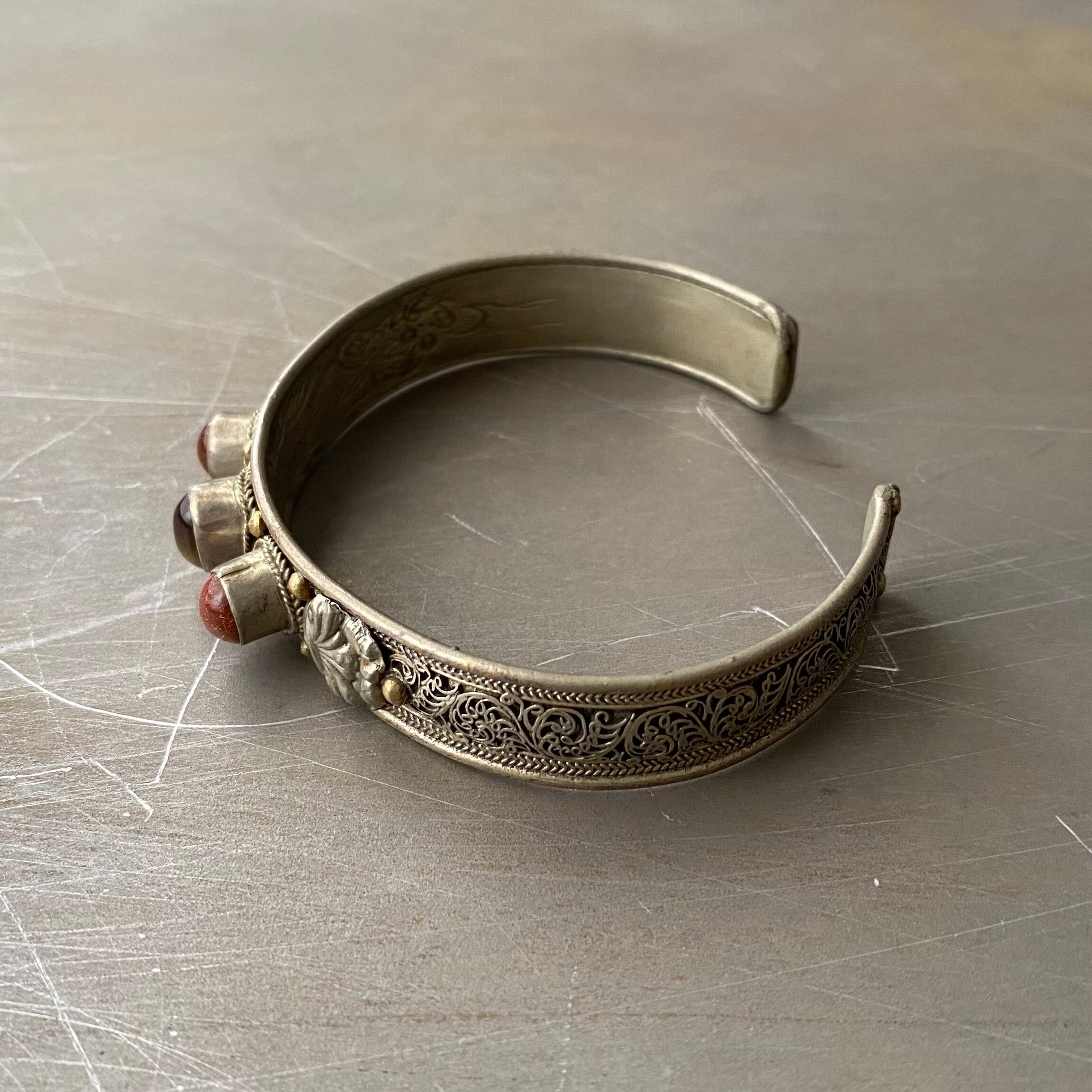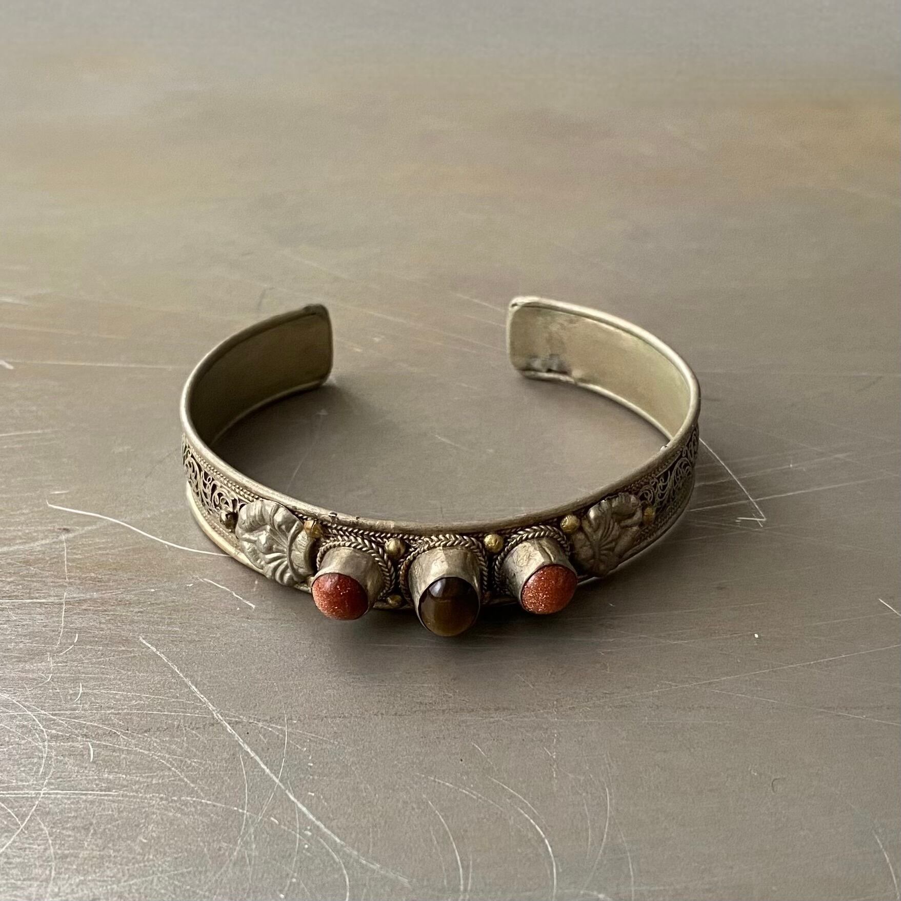 Used retro tibetan silver filigree design stone bangle レトロ ユーズド アクセサリー チベットシルバー フィリグリー デザイン ストーン バングル
