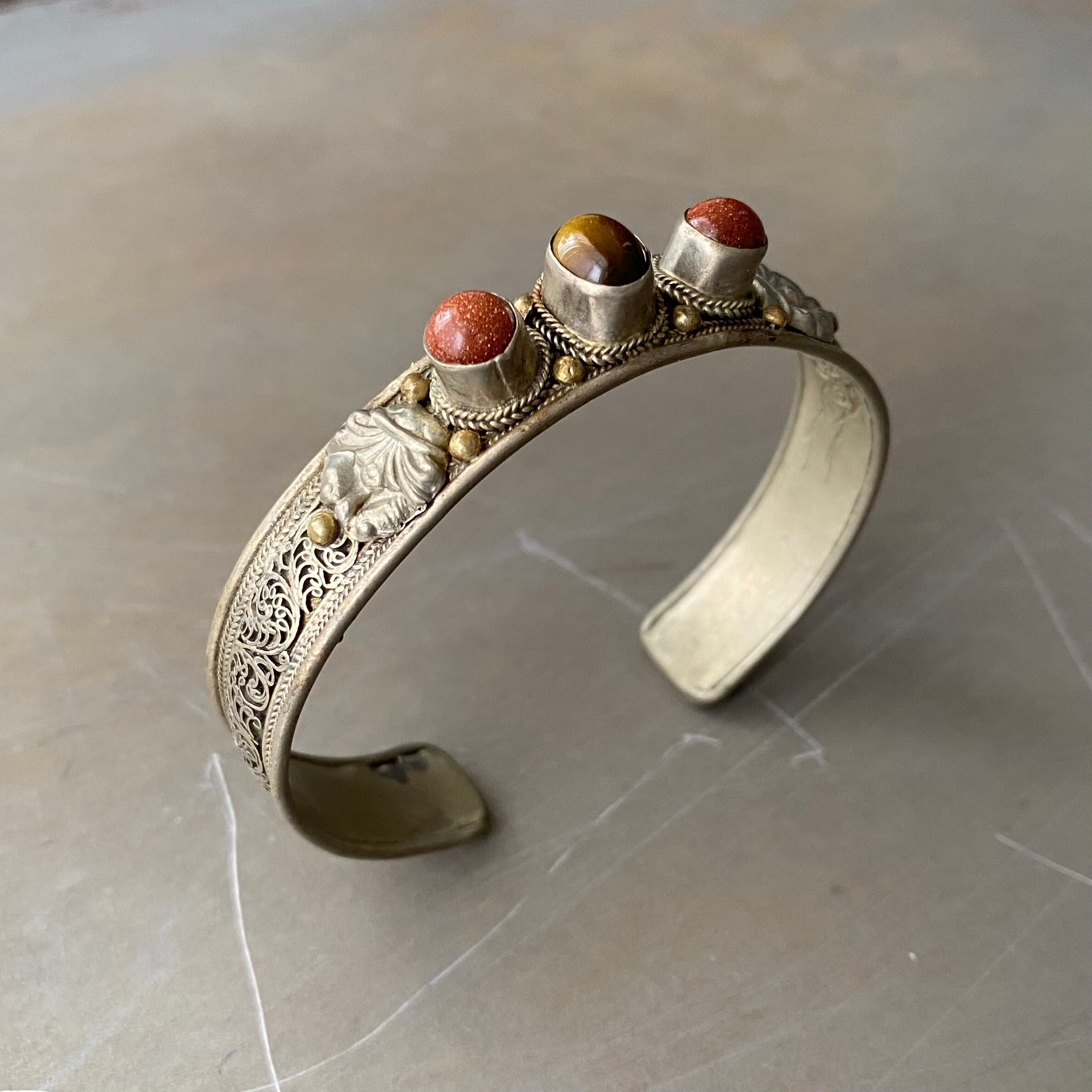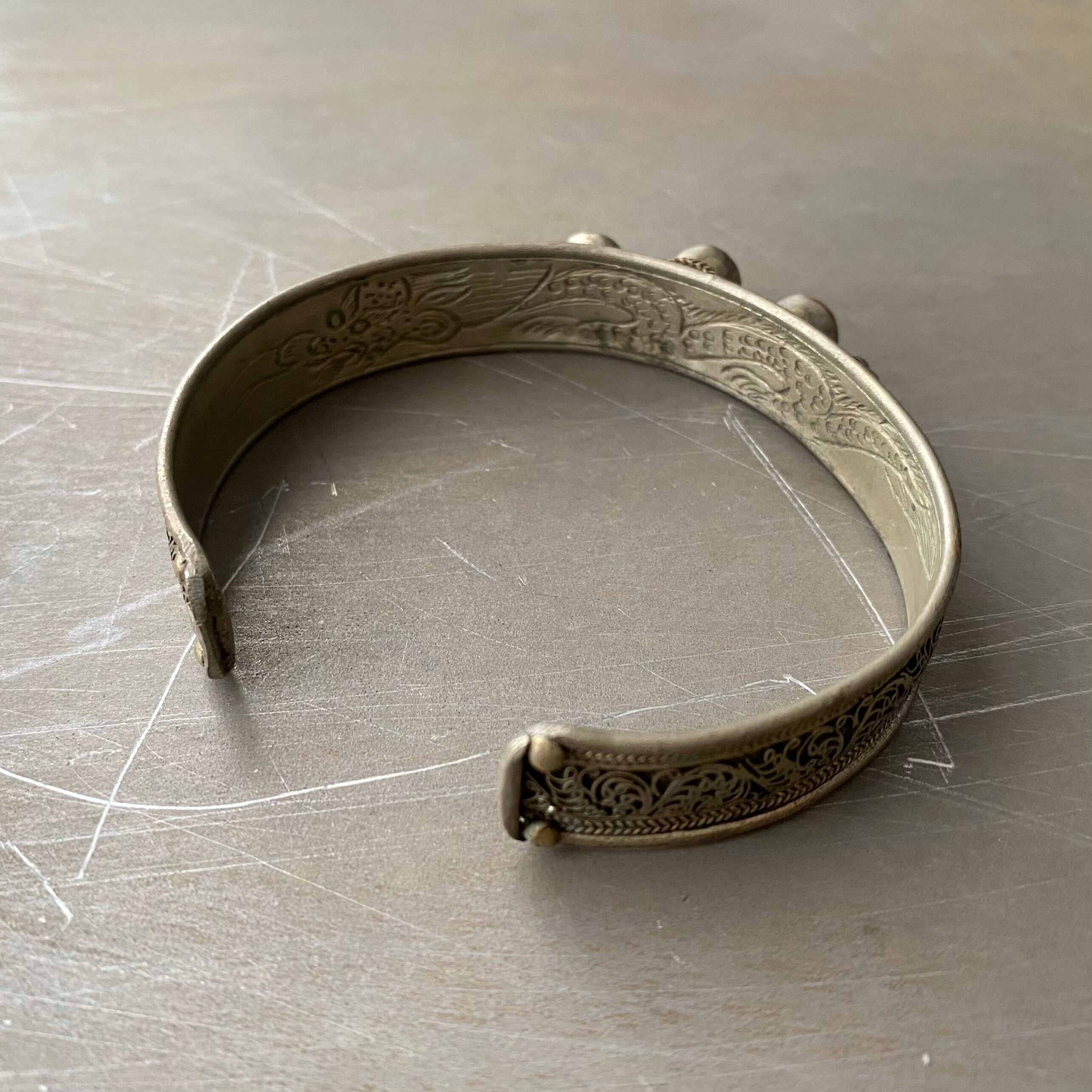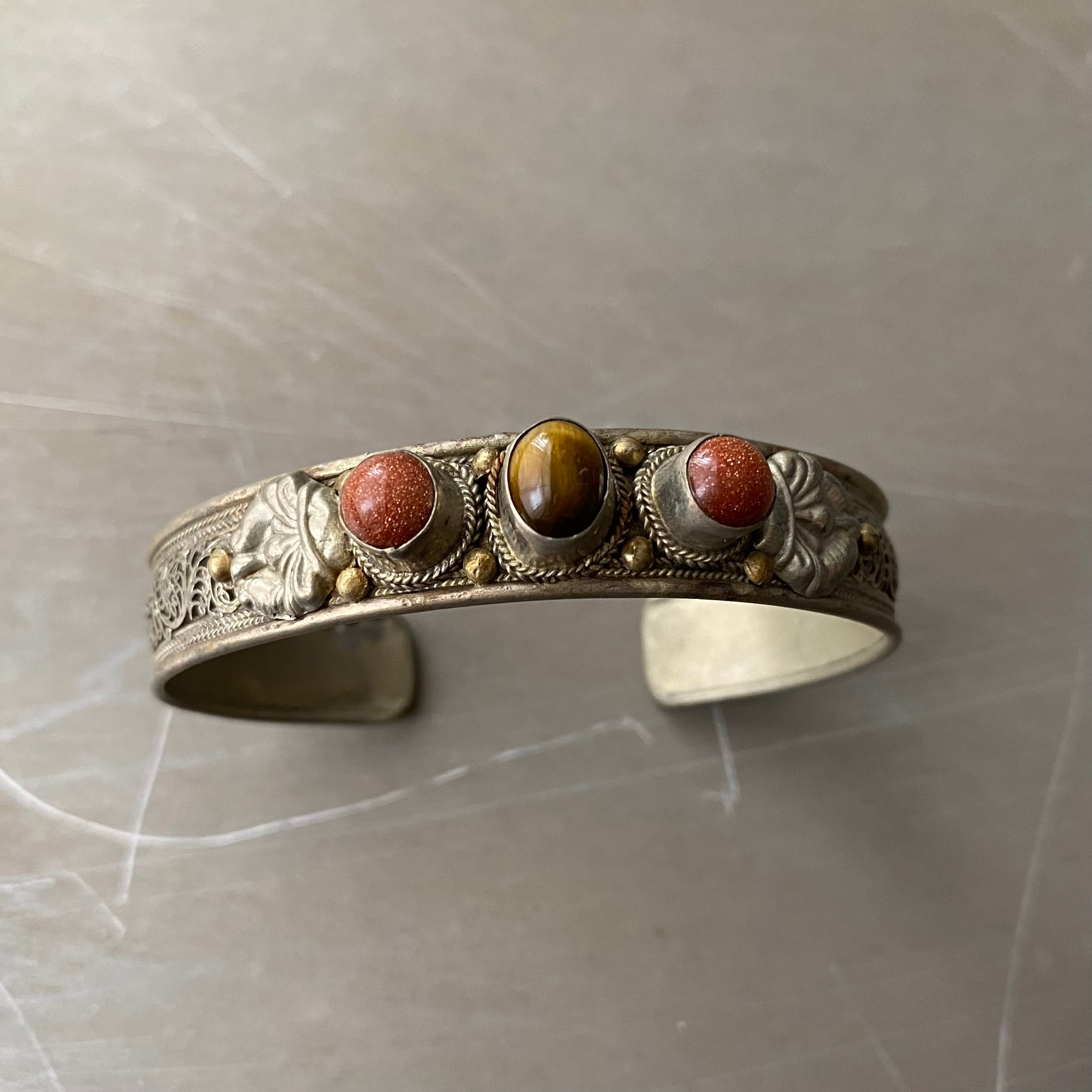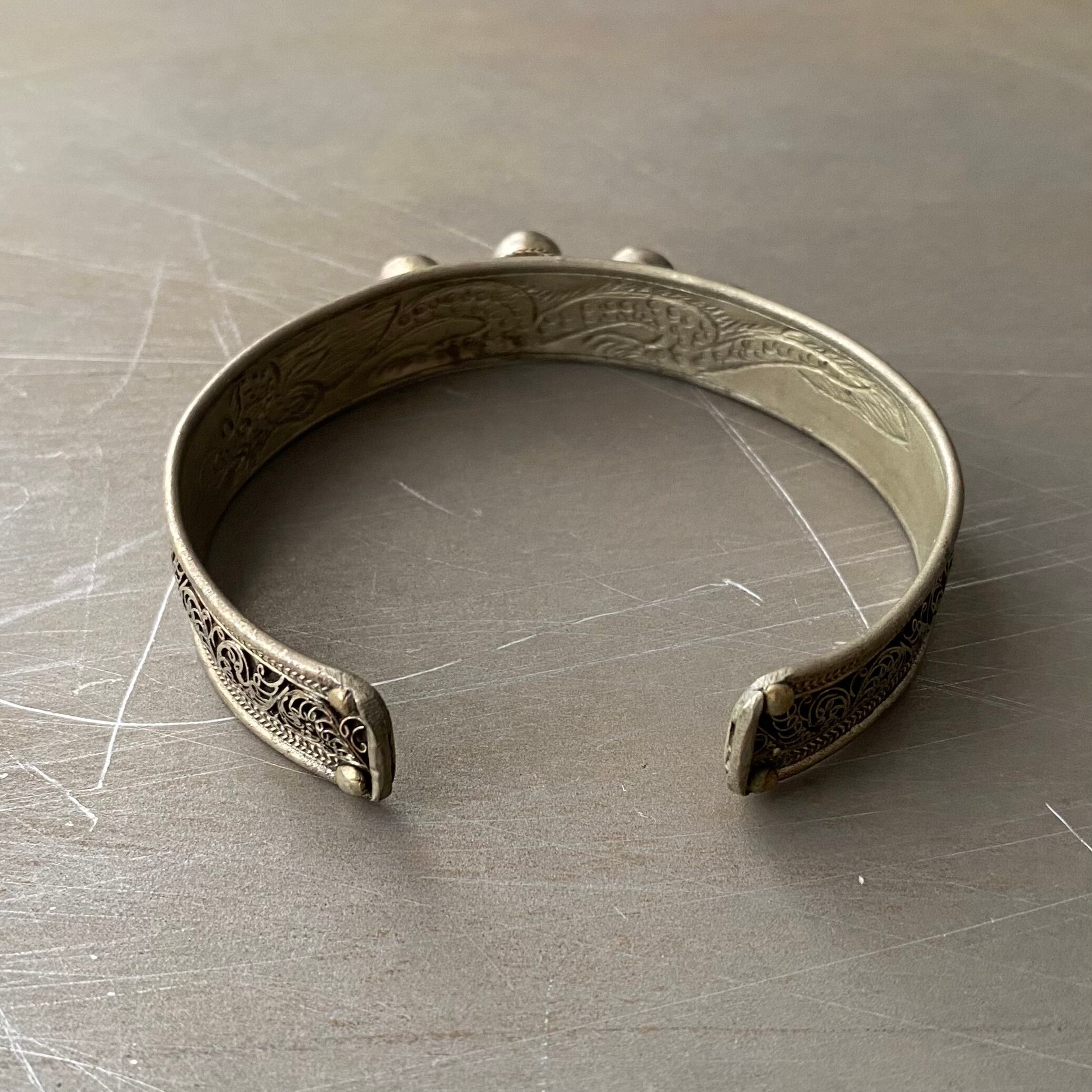 Used retro tibetan silver filigree design stone bangle レトロ ユーズド アクセサリー チベットシルバー フィリグリー デザイン ストーン バングル