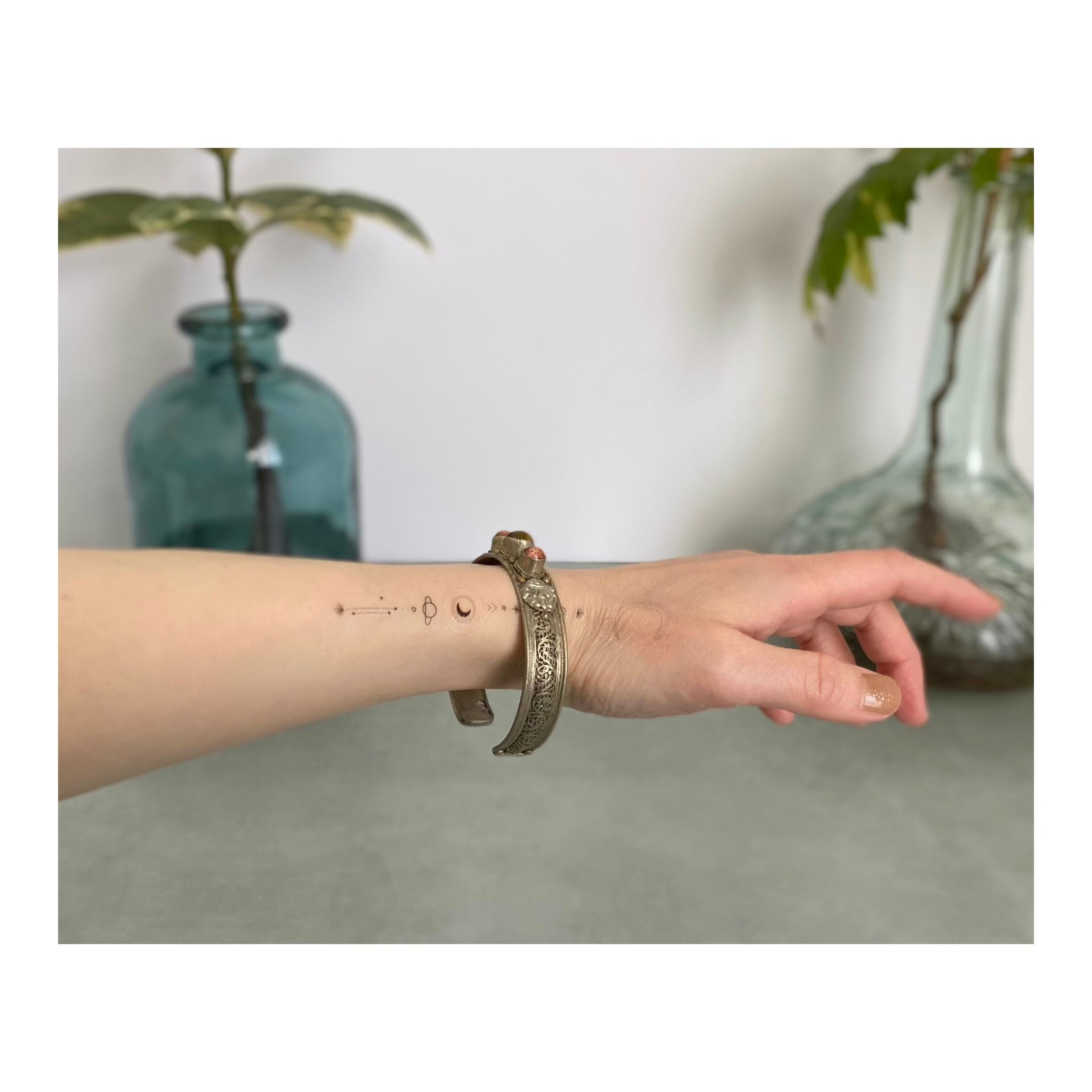 繊細なフィリグリー細工が魅力的なハンドメイドのバングル。チベットシルバーと呼ばれるアンティーク風の色合いが特徴的な、銀を少量含む合金で作られています。バングルの裏側部分には、龍のデザインが彫られた細部まで手の込んだ魅力的な作りです。ゆったりとした着け心地のユニセックスなサイズ感で、スタイリングに個性的な雰囲気をプラスしてくれます。