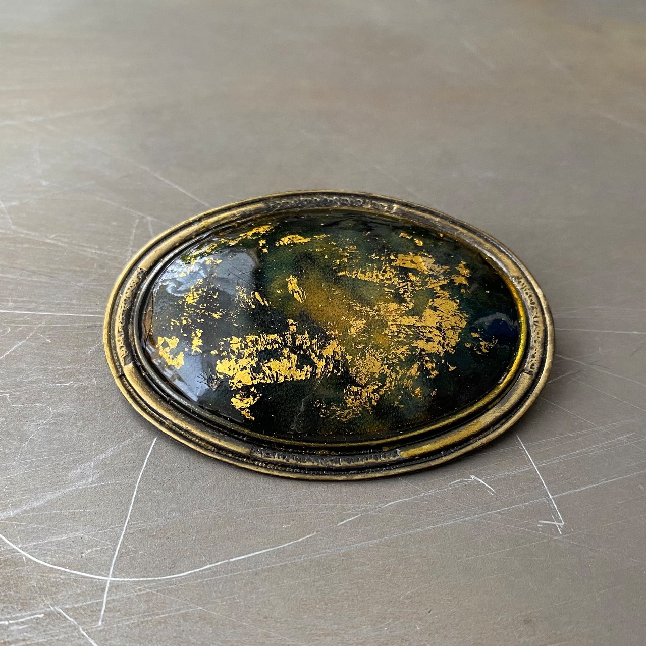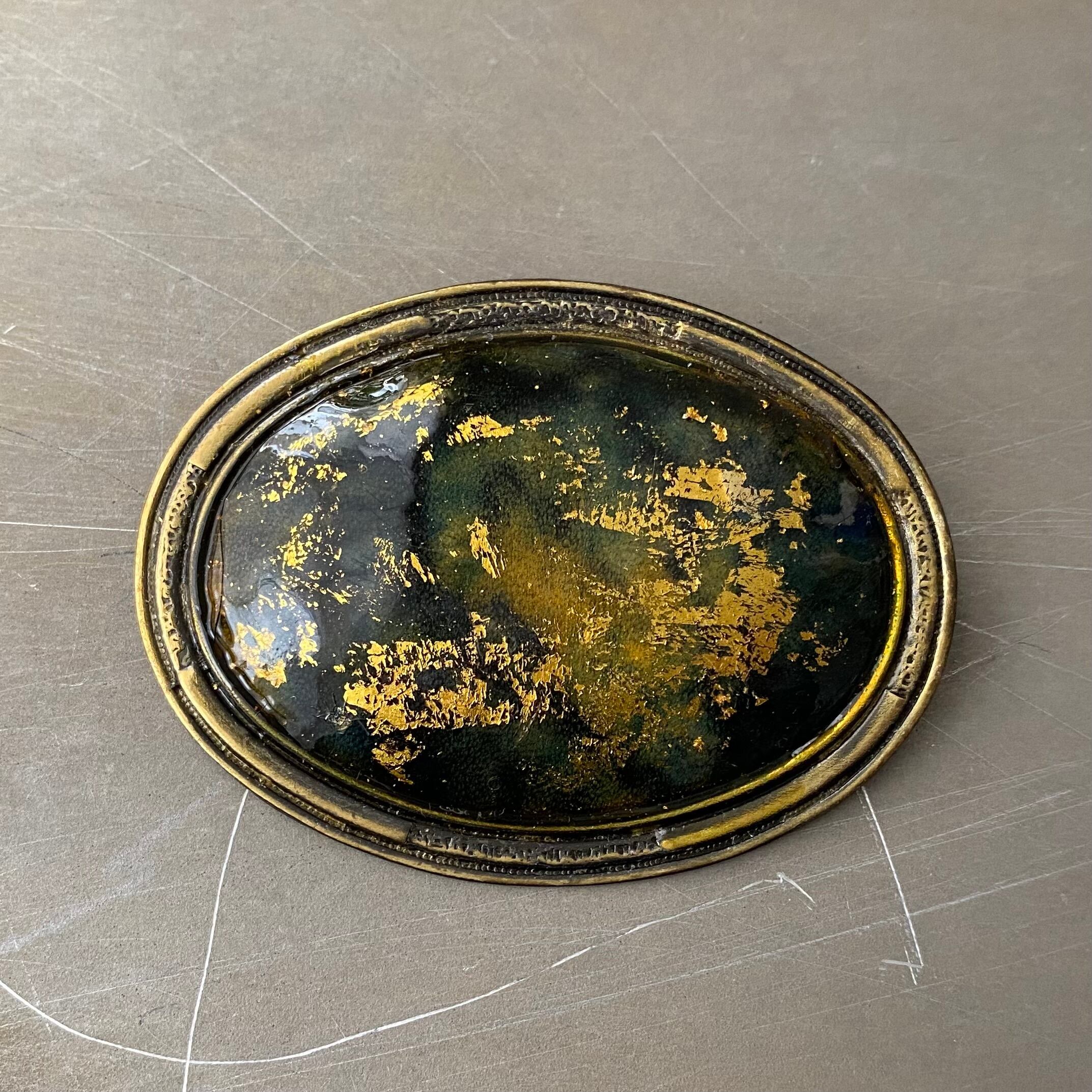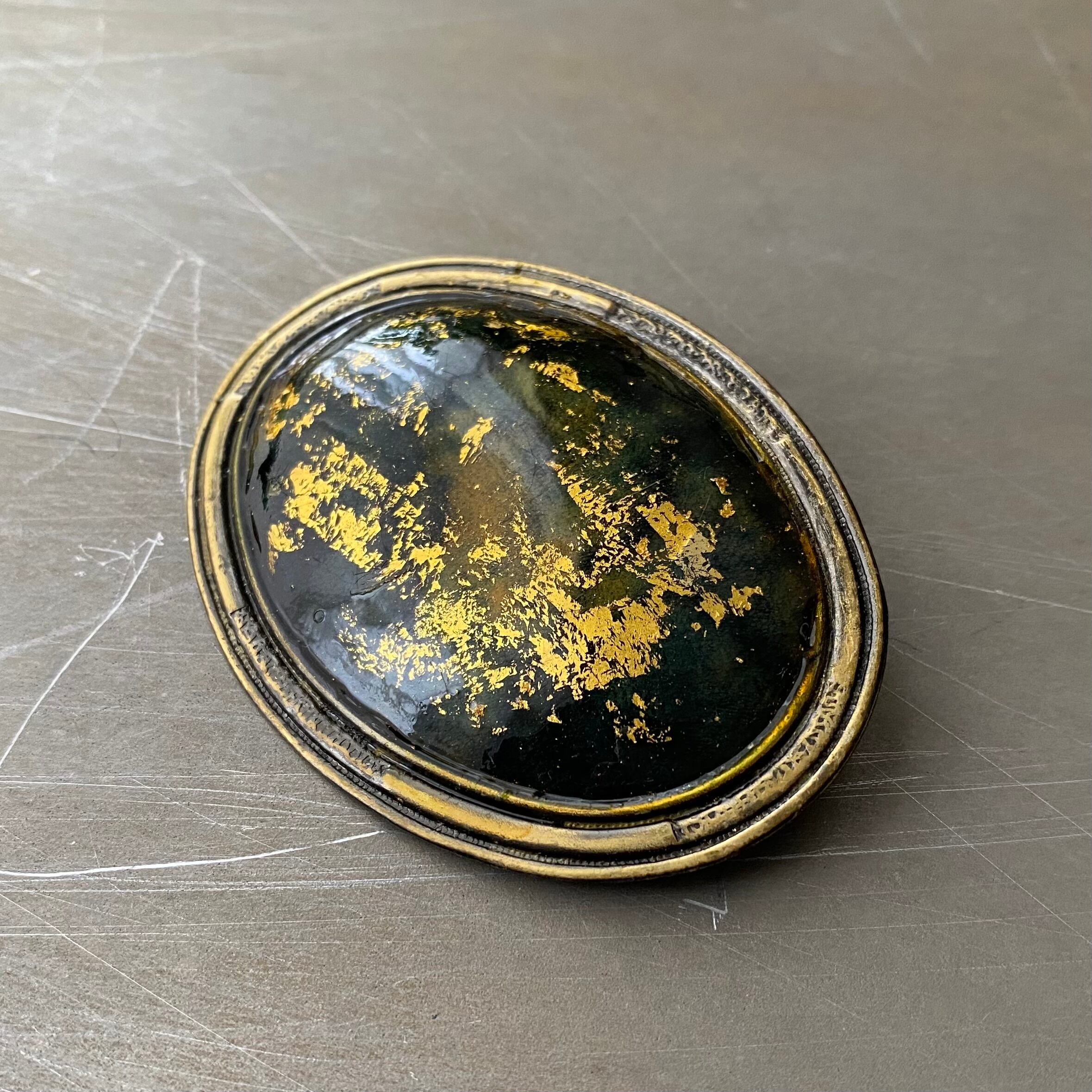 キラキラと輝くアーティスティックなエナメルが魅力的なヴィンテージブローチ。かなり大ぶりでインパクトのあるデザインです。存在感がありスタイリングに個性的な雰囲気をプラスしてくれます。