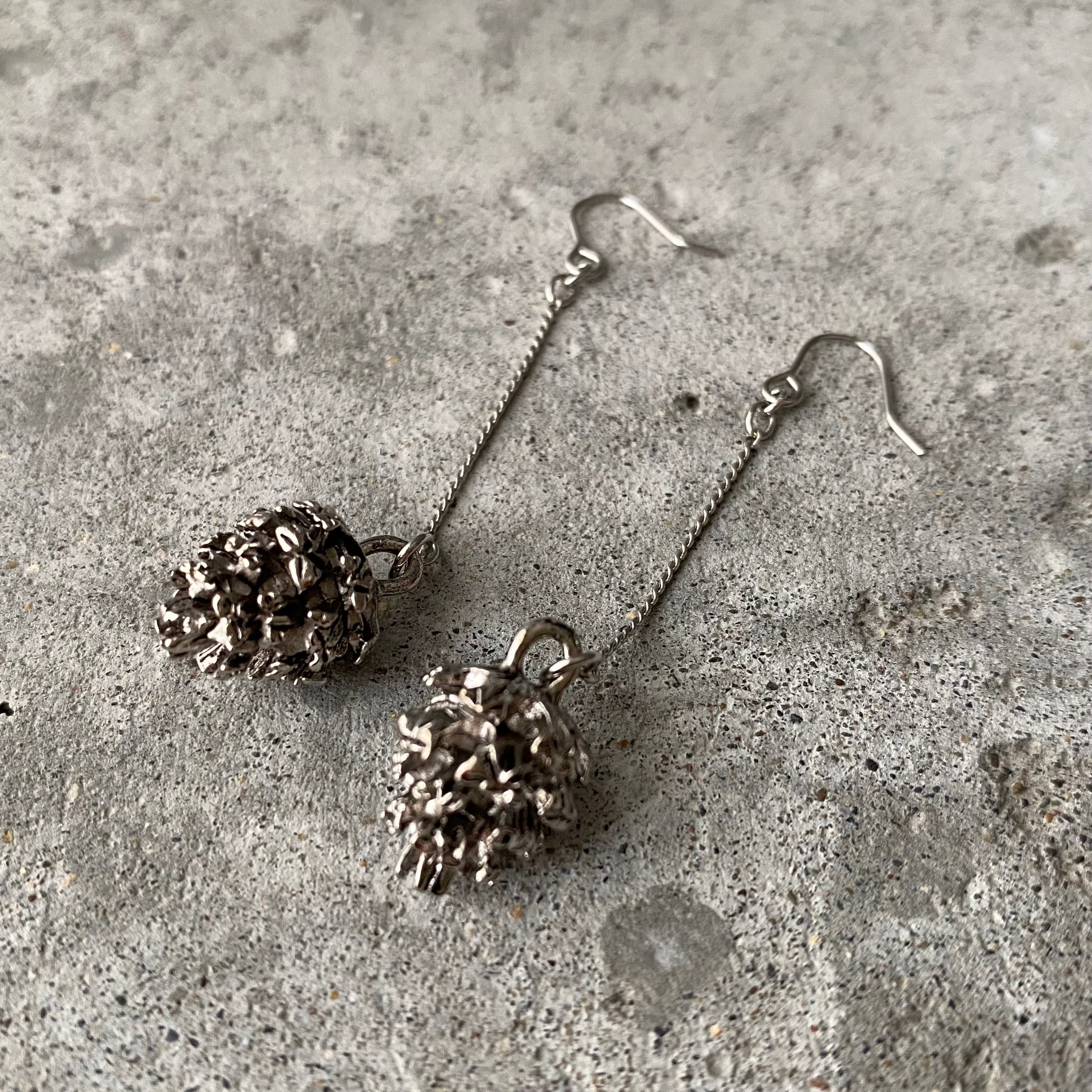 ゆらゆらと揺れ動くレトロ可愛い「松ぼっくり」のヴィンテージピアス。スタイリングのアクセントにおすすめです。