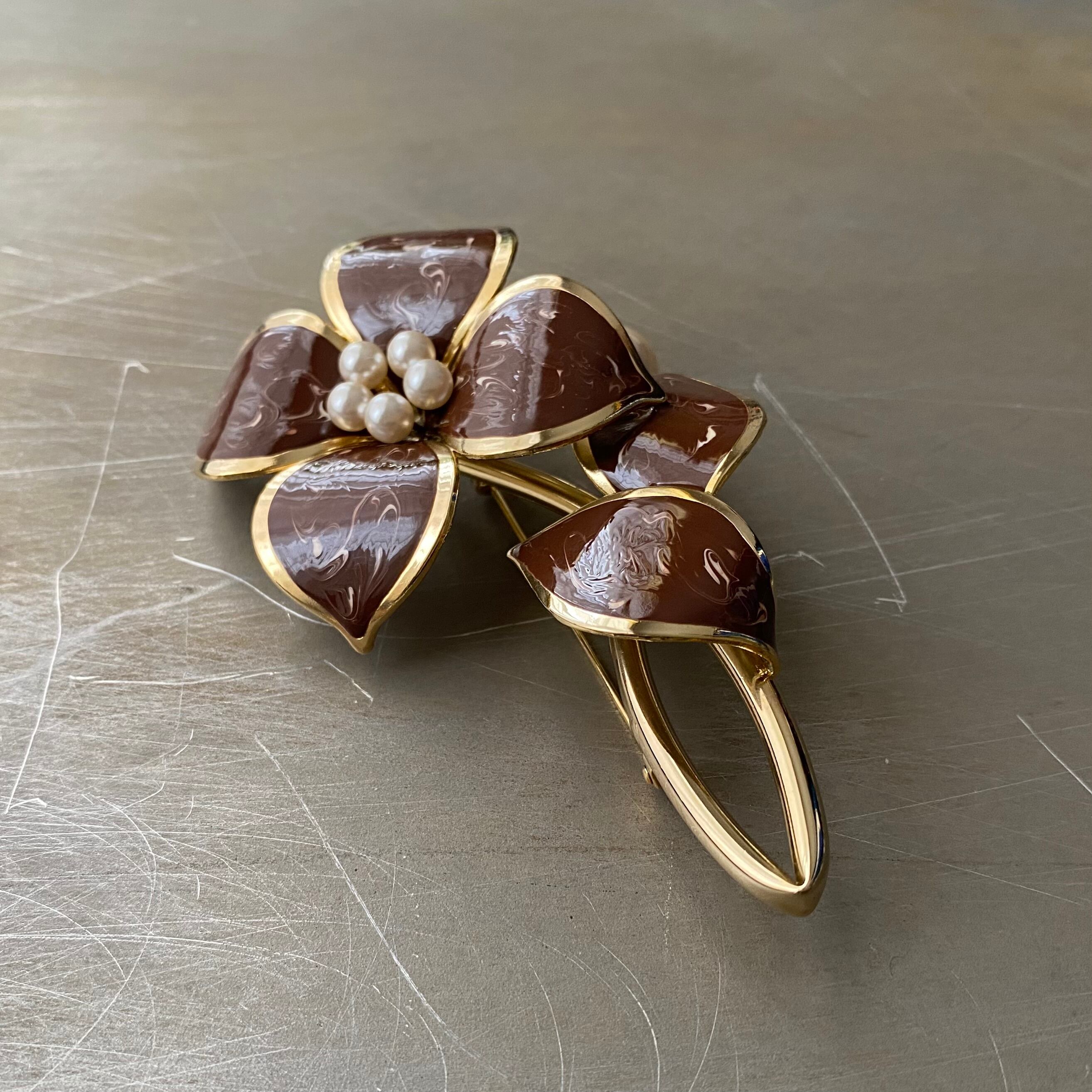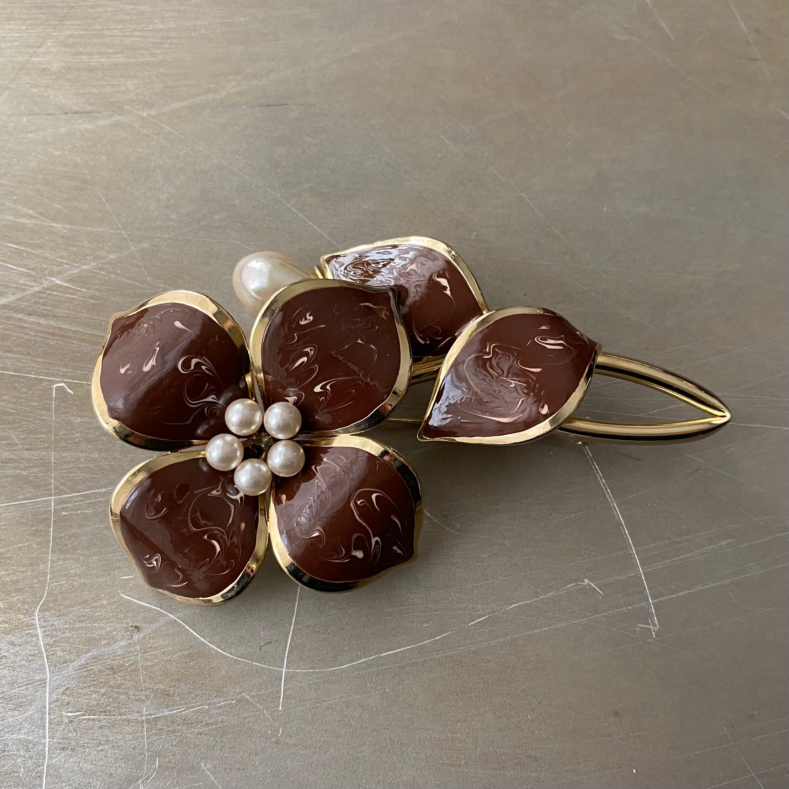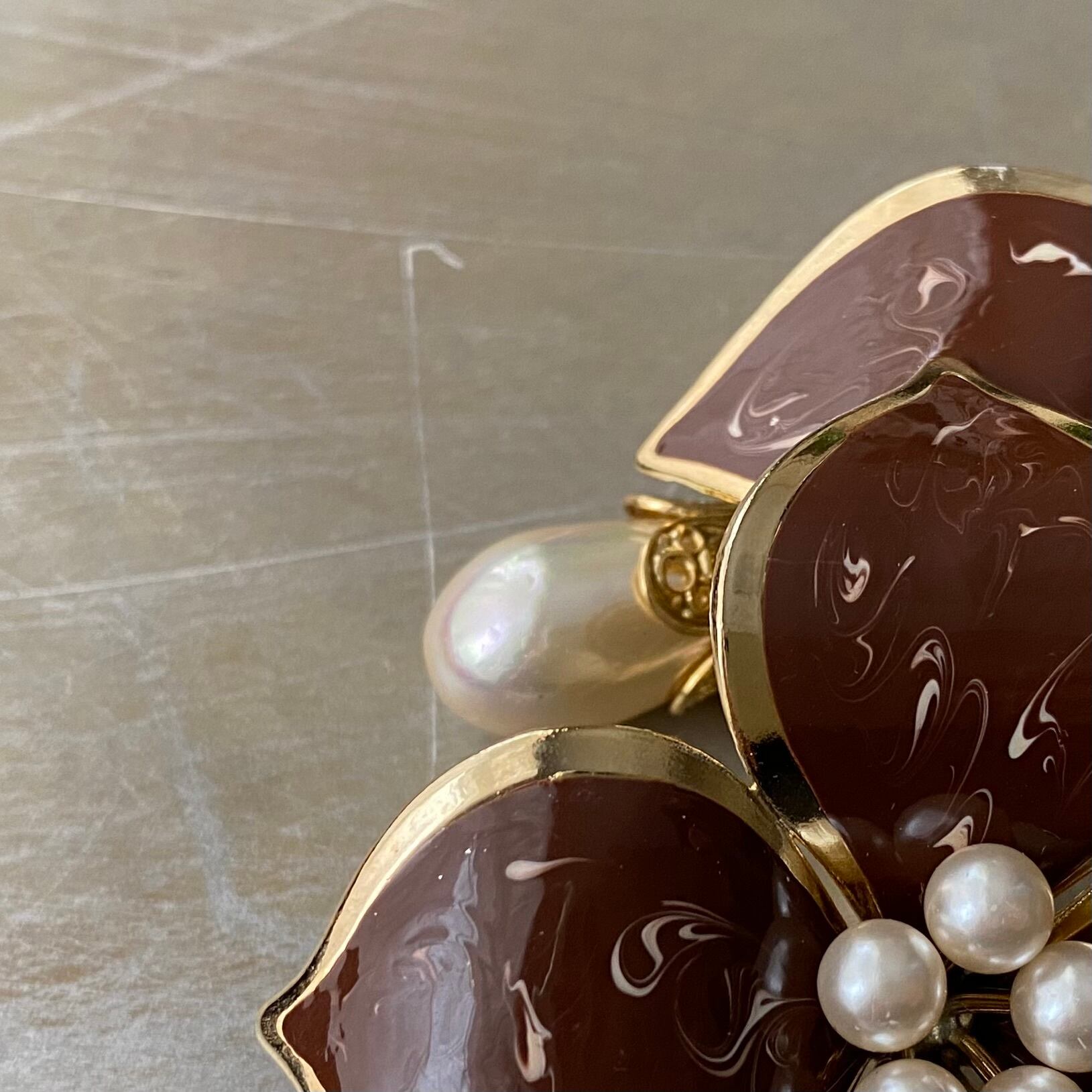 Vintage 80s-90s retro botanical flower enamel pearl big brooch レトロ ヴィンテージ アクセサリー ボタニカル フラワー 花 エナメル パール ビッグ ブローチ