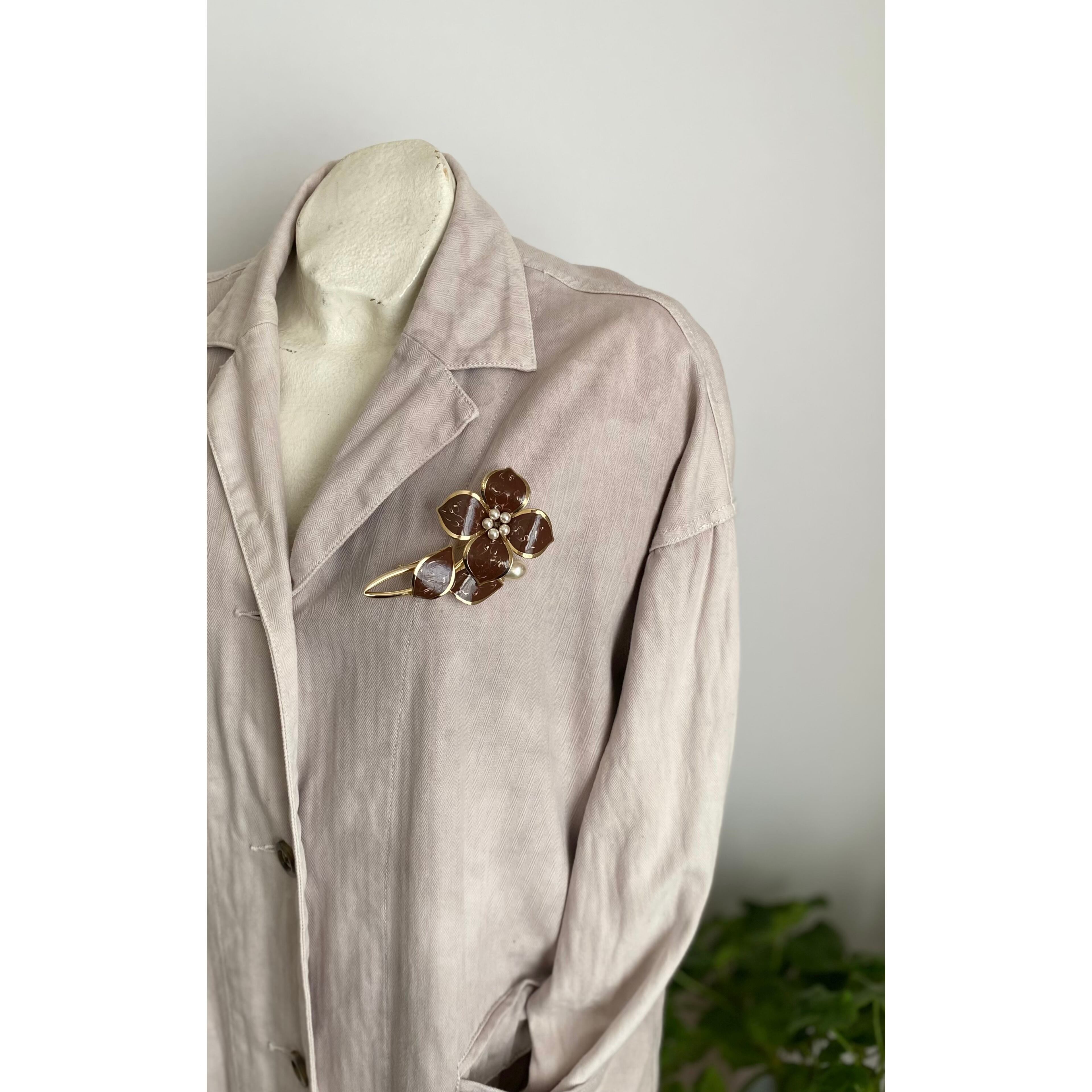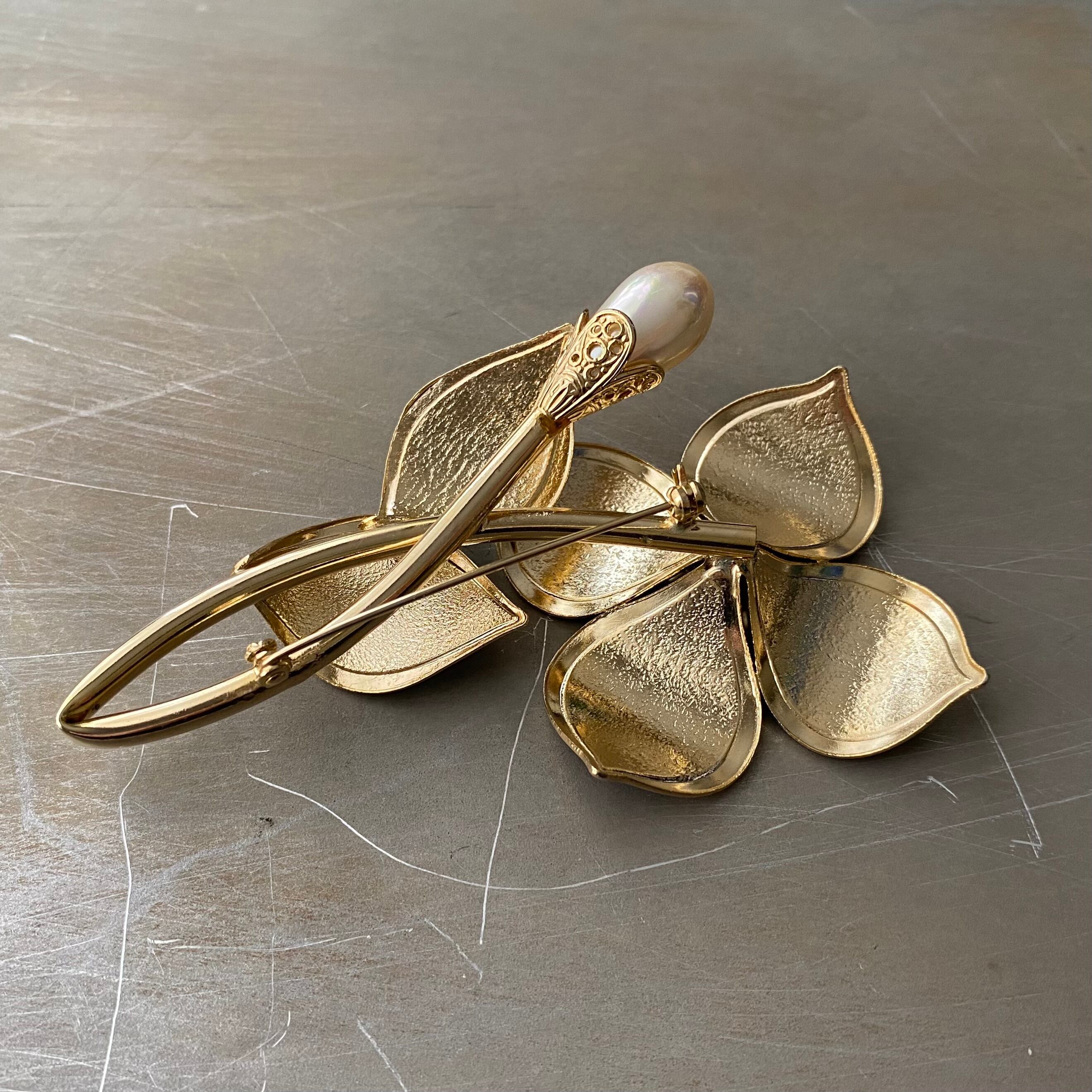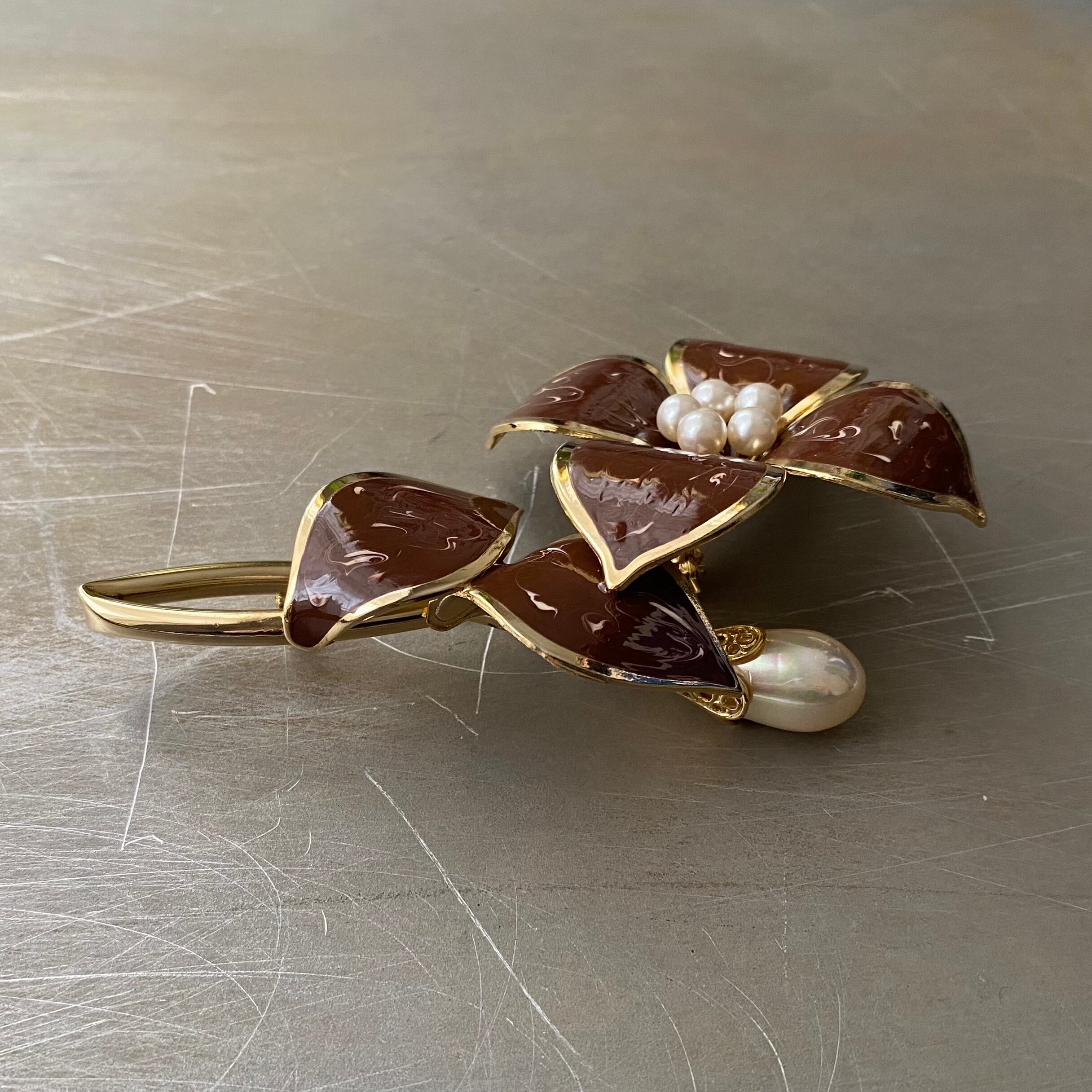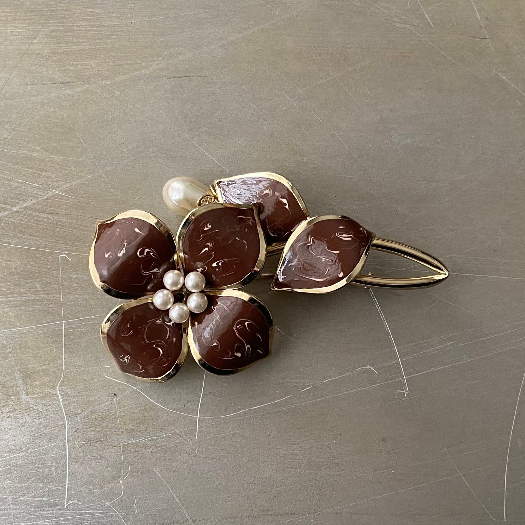 Vintage 80s-90s retro botanical flower enamel pearl big brooch レトロ ヴィンテージ アクセサリー ボタニカル フラワー 花 エナメル パール ビッグ ブローチ