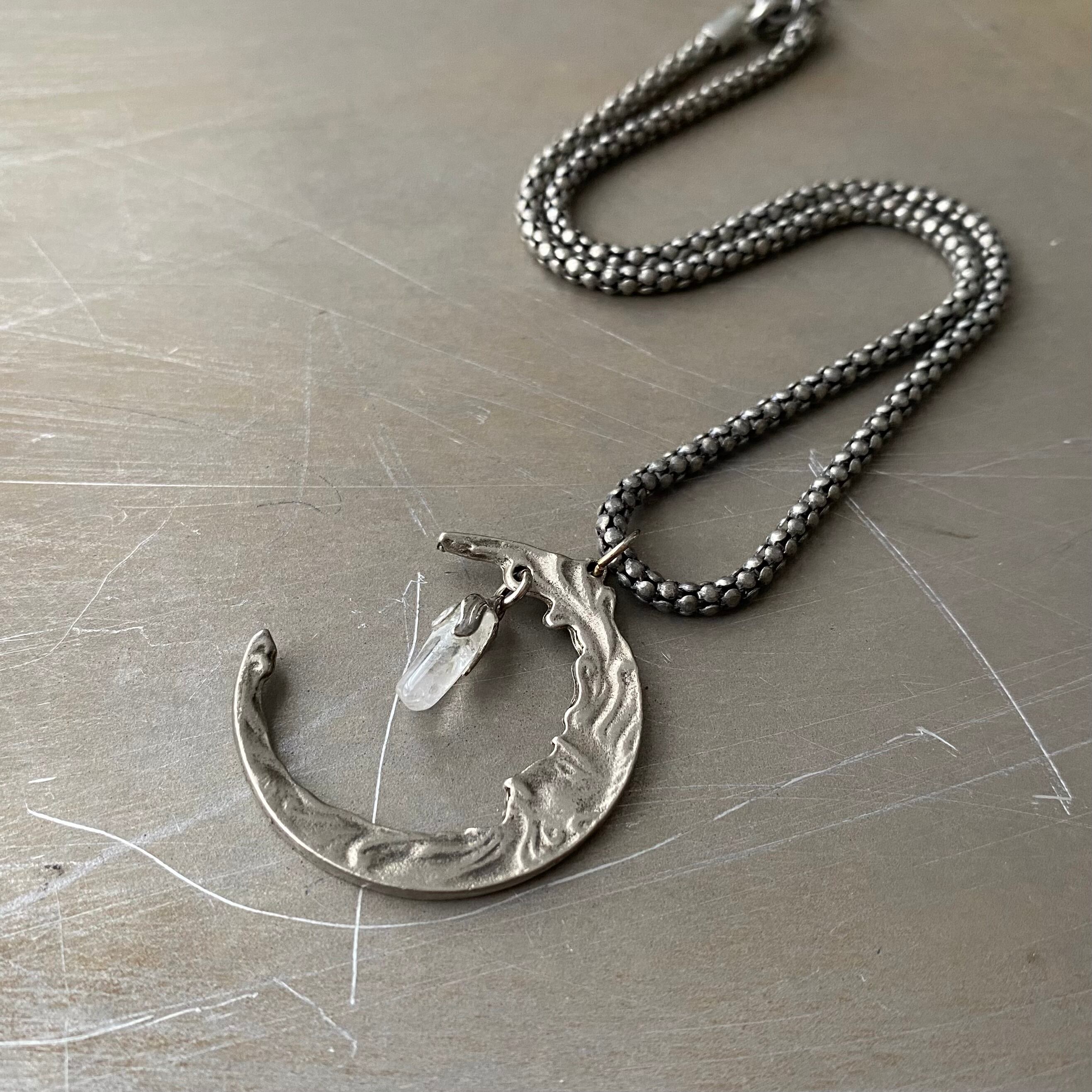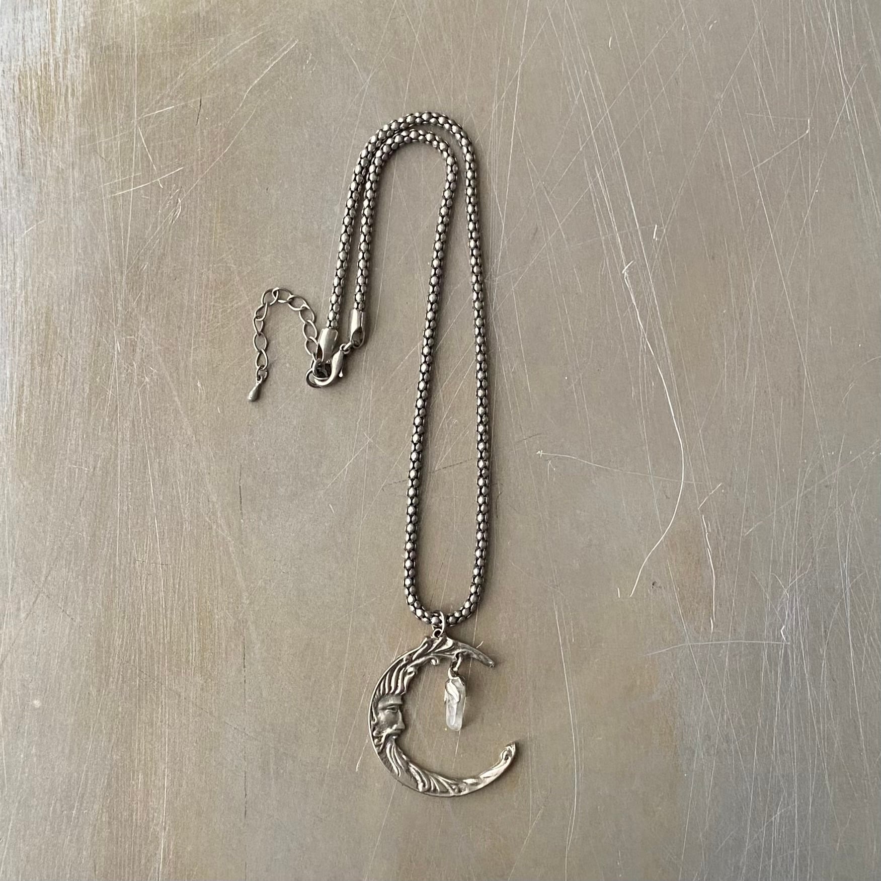 Vintage USA retro moon face crystal quartz necklace レトロ アメリカ ヴィンテージ アクセサリー ムーン フェイス 天然石 クリスタル クオーツ ネックレス