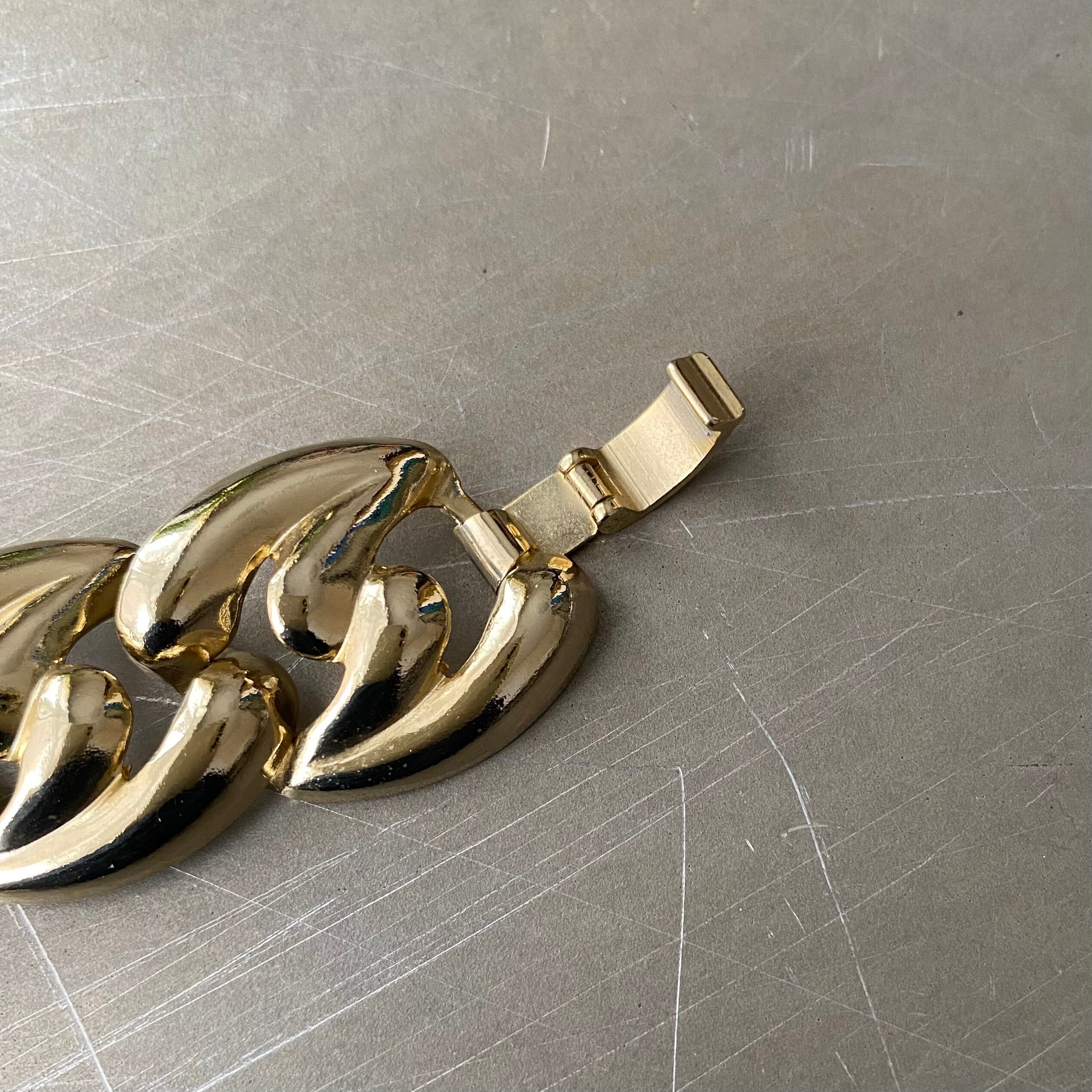 Vintage 80s-90s USA retro mode gold tone wide design chain bracelet アメリカ ヴィンテージ アクセサリー レトロ モード ゴールド ワイド デザイン チェーン ブレスレット