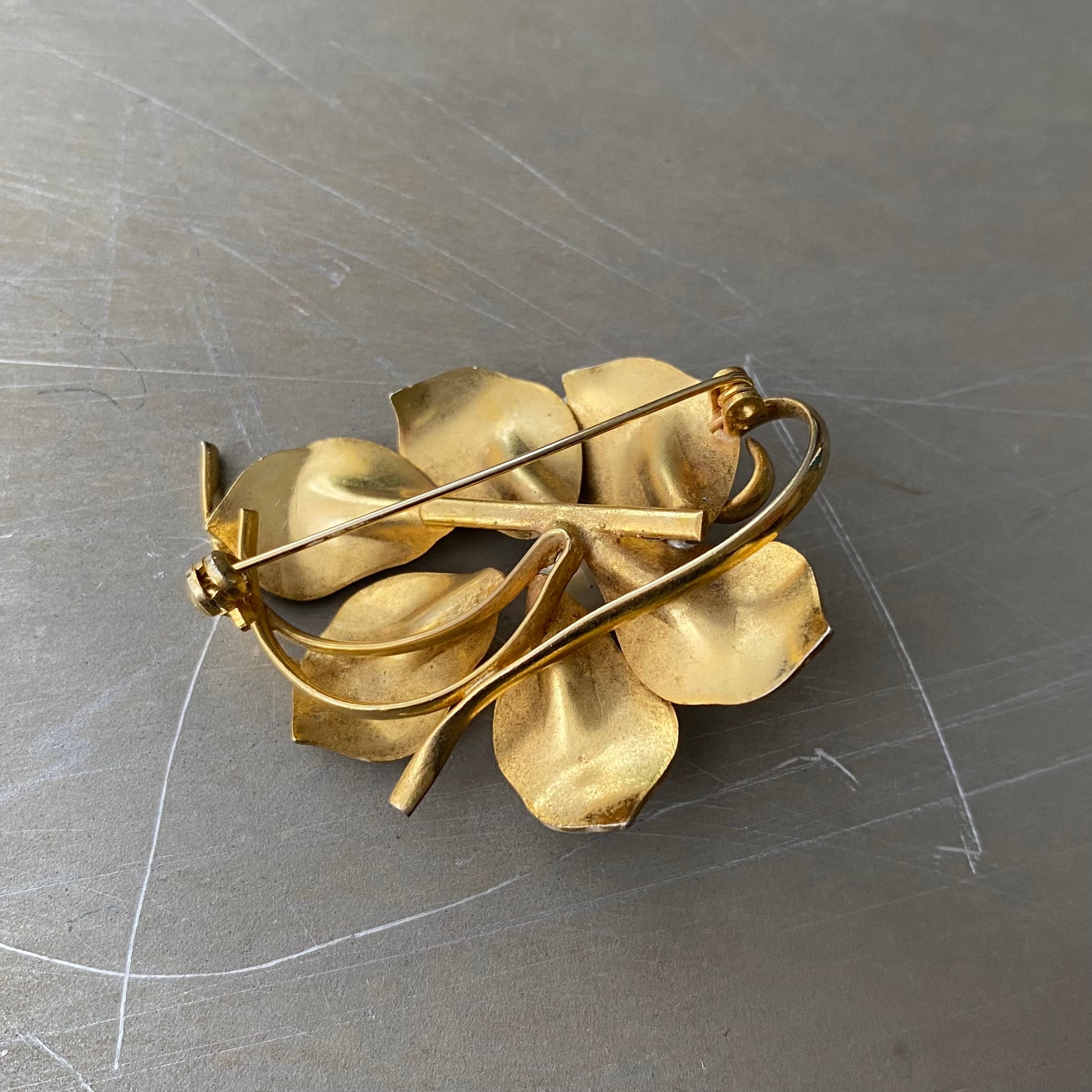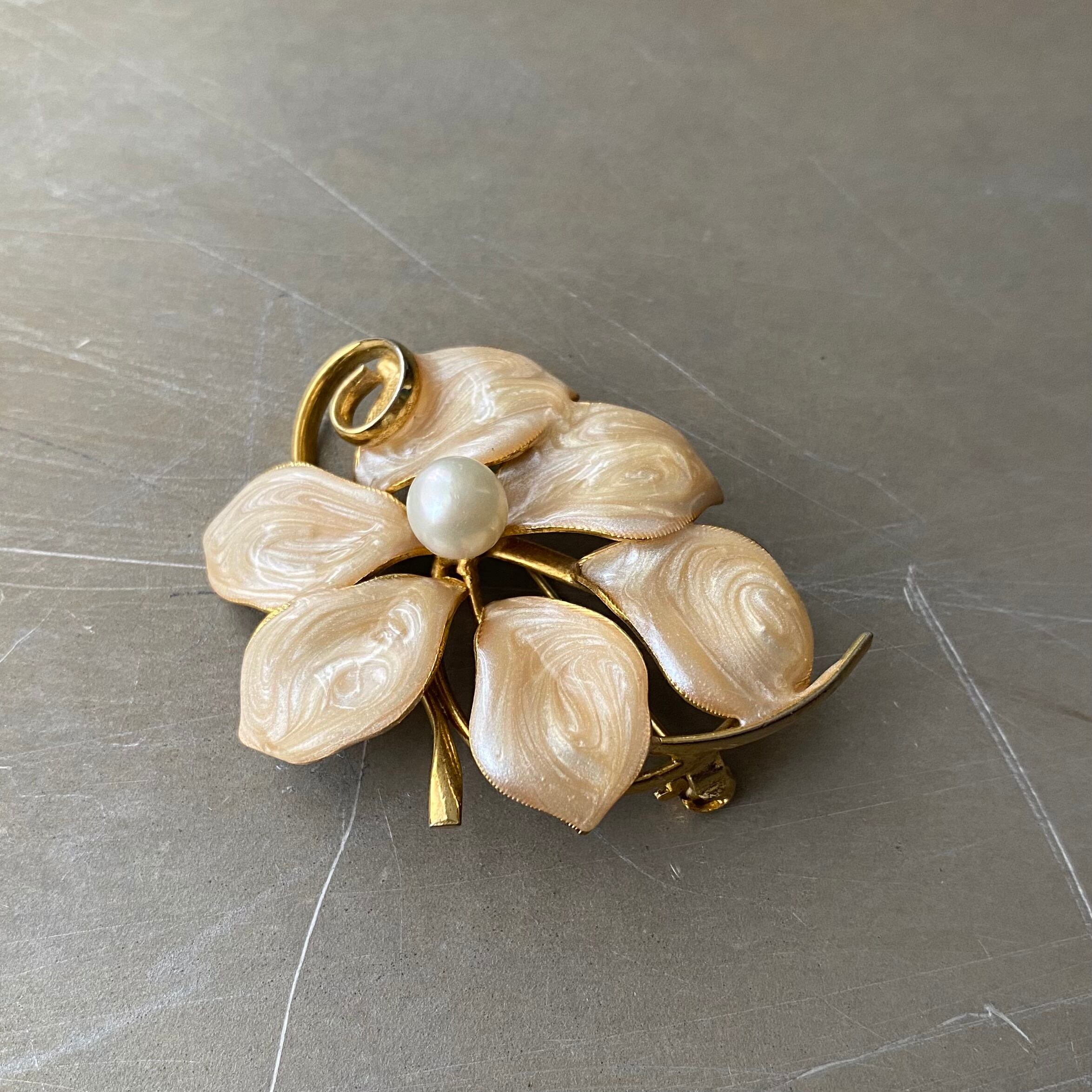 Vintage 80s-90s retro botanical flower enamel pearl brooch レトロ ヴィンテージ アクセサリー ボタニカル フラワー 花 エナメル パール ブローチ