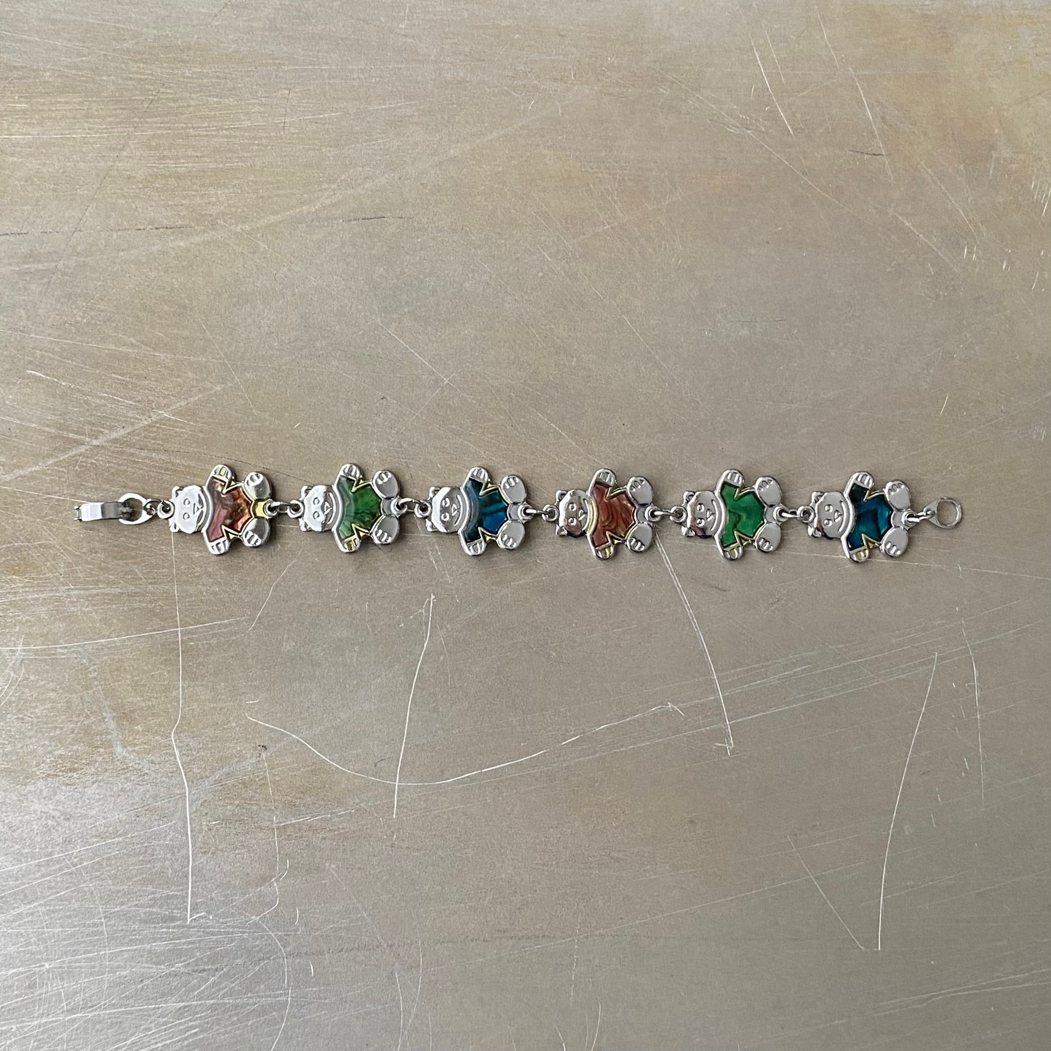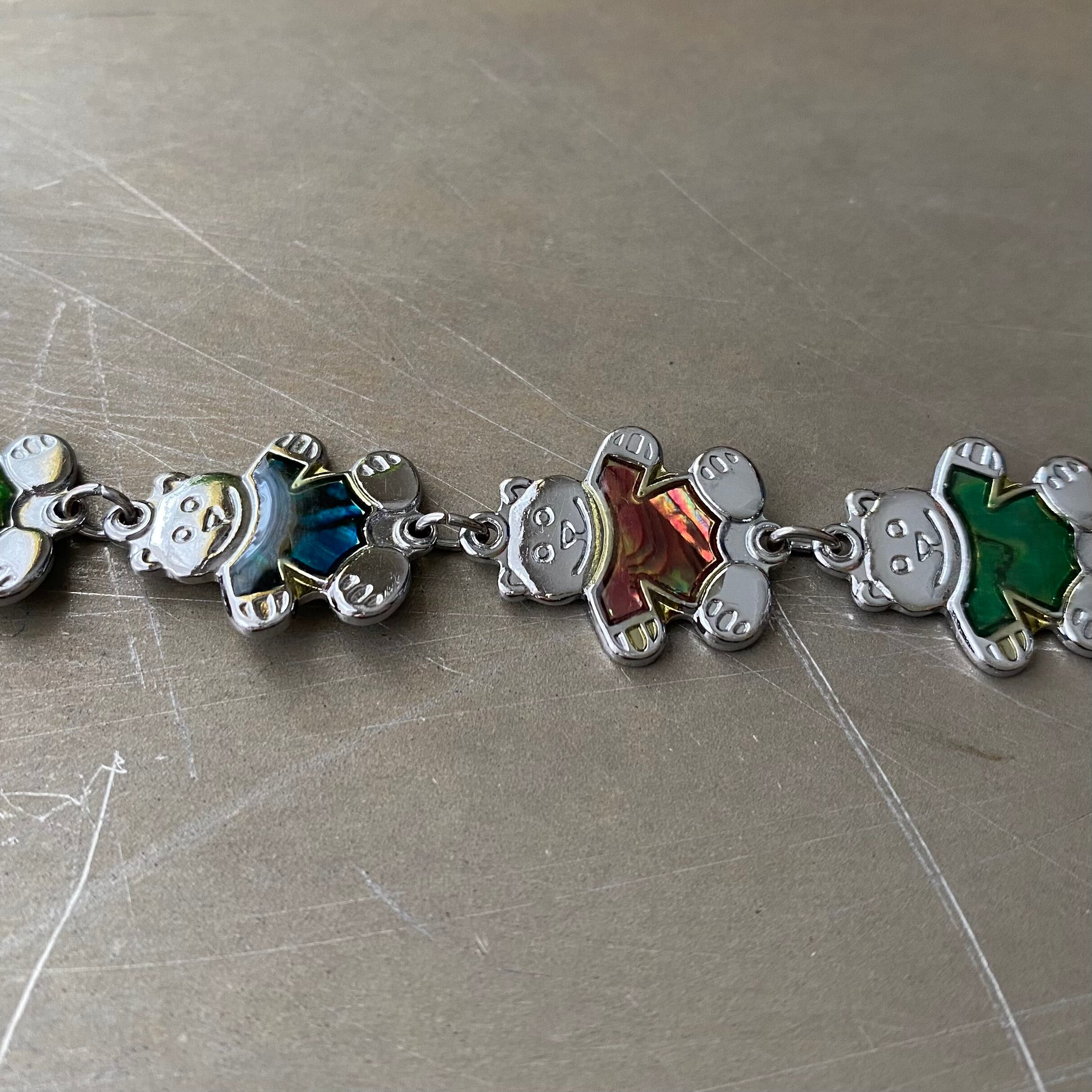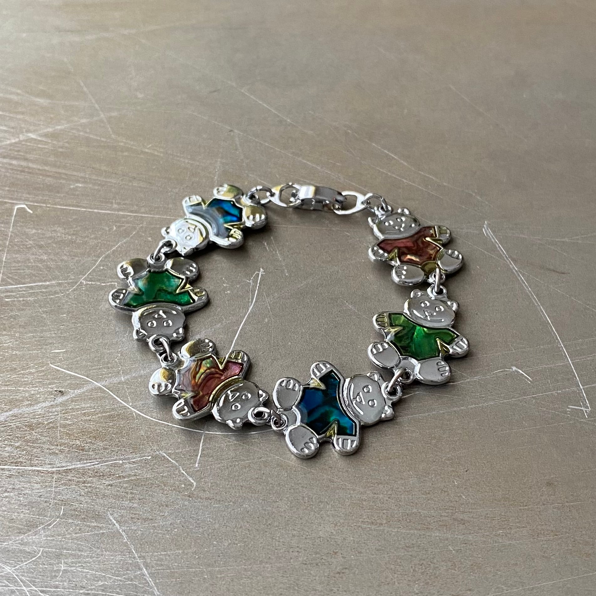 レトロ可愛いテディベアのUSAヴィンテージブレスレット。カラフルなシェルのお洋服が動くたびにキラキラと輝きます。