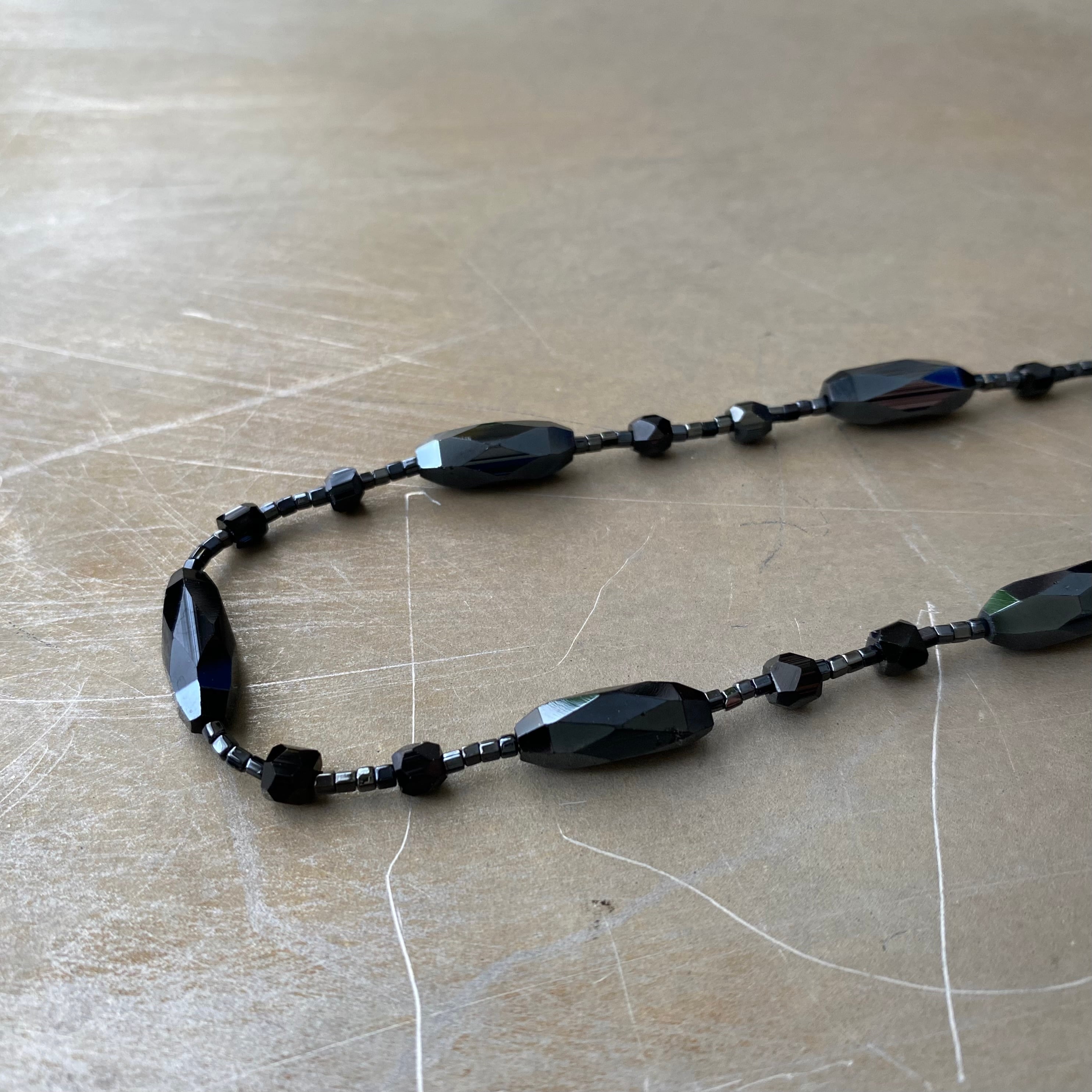 Vintage 70s-80s retro black glass beads necklace レトロ ヴィンテージ アクセサリー ブラック ガラス ビーズ ネックレス