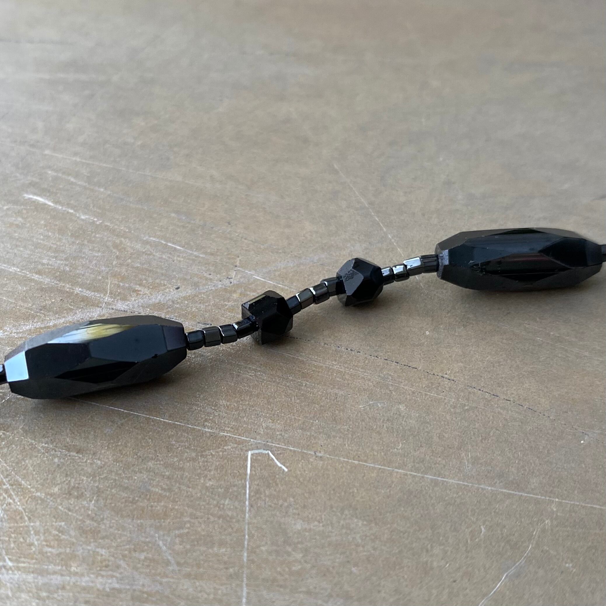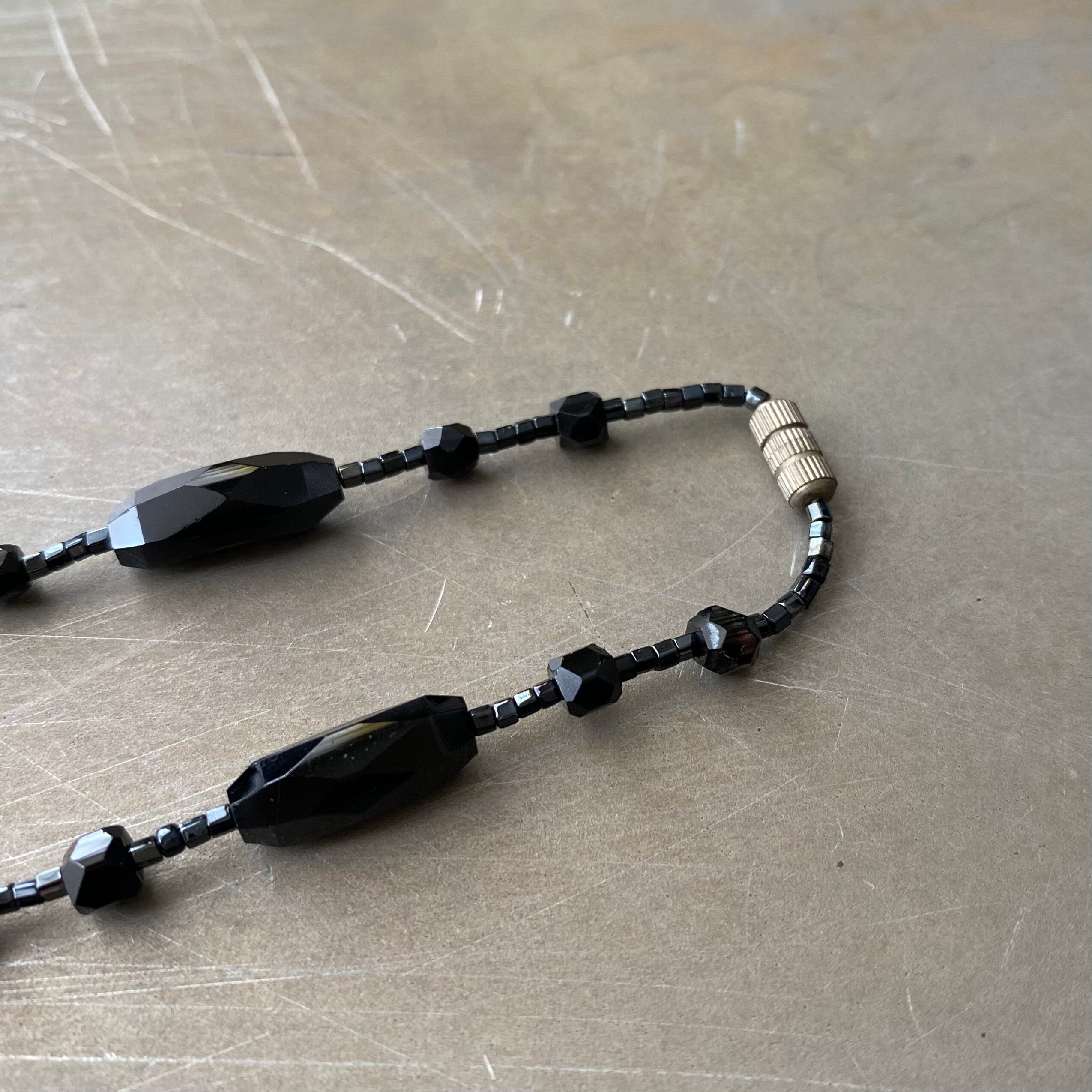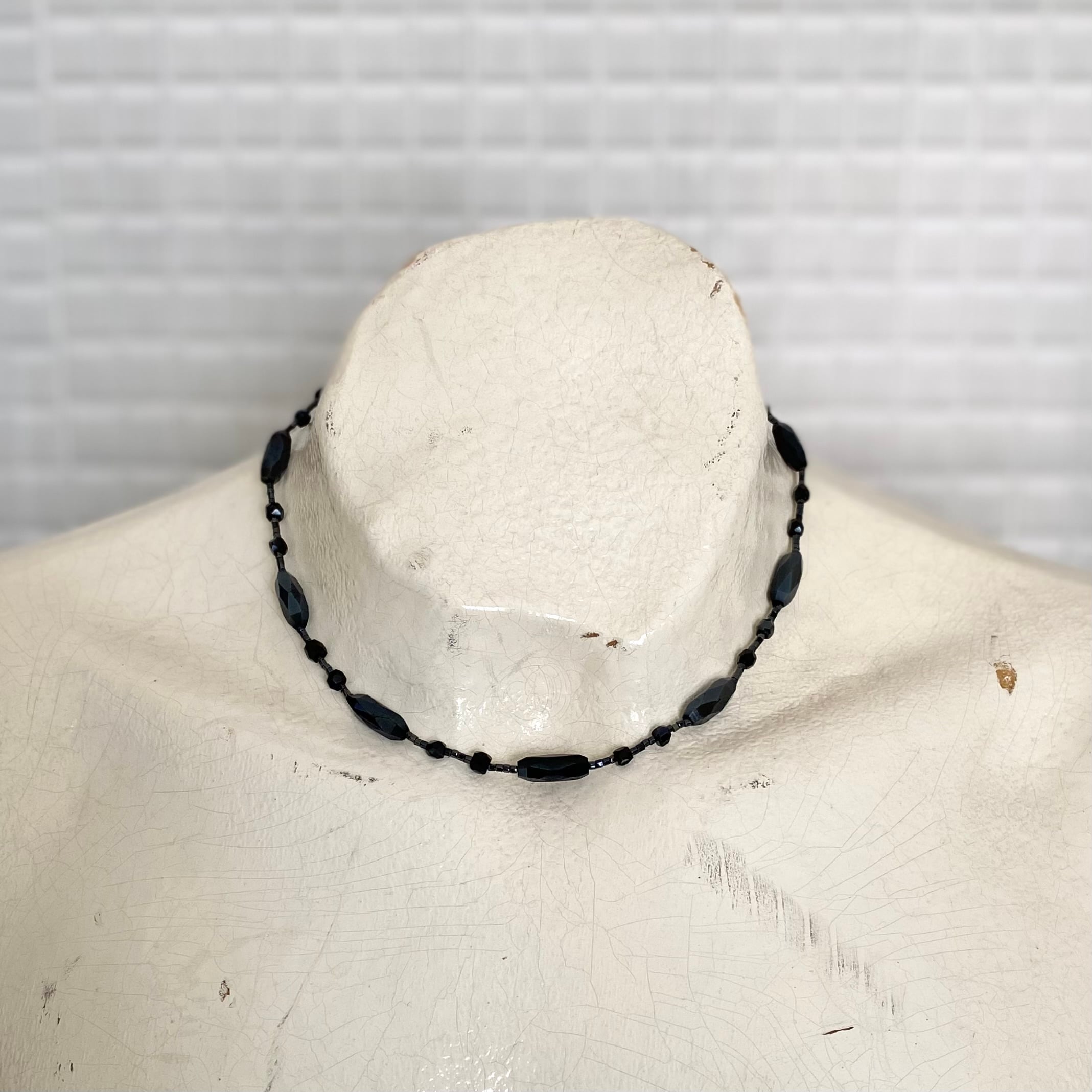 ブラックカラーのガラスビーズがキラキラと輝くクラシカルな雰囲気のヴィンテージネックレス。シンプルながらお顔まわりで映える魅力的なデザインです。