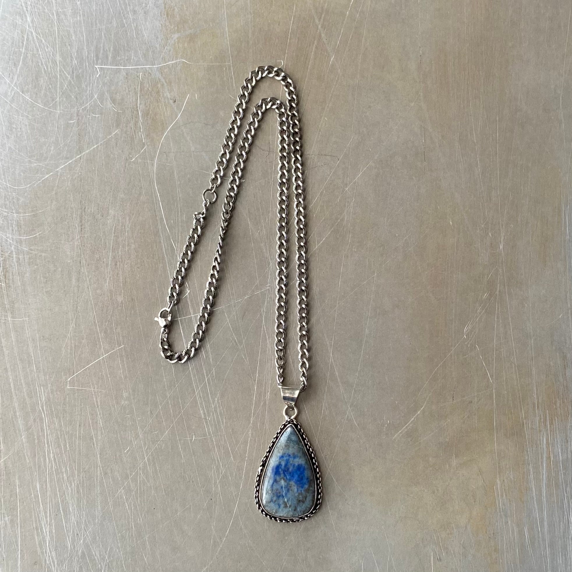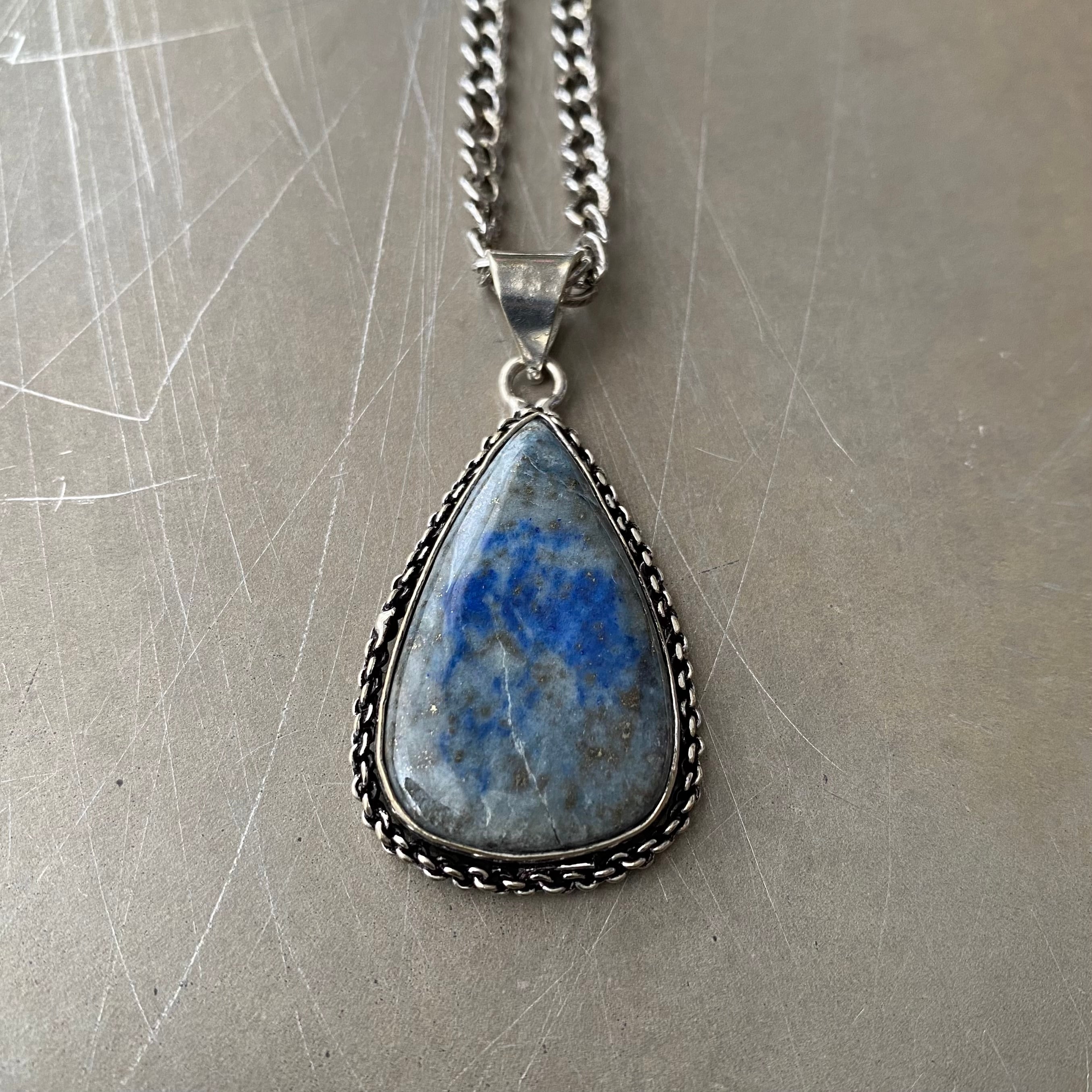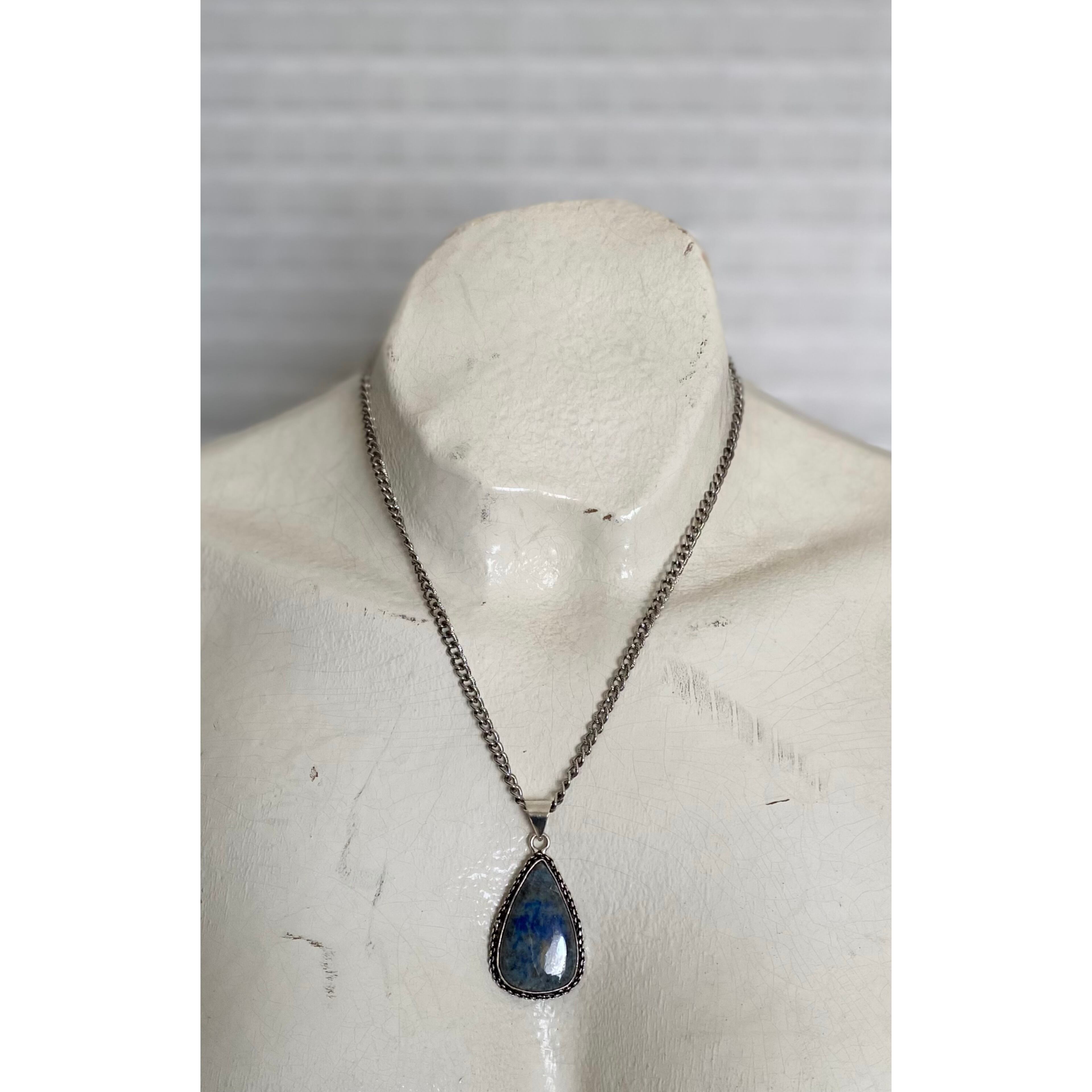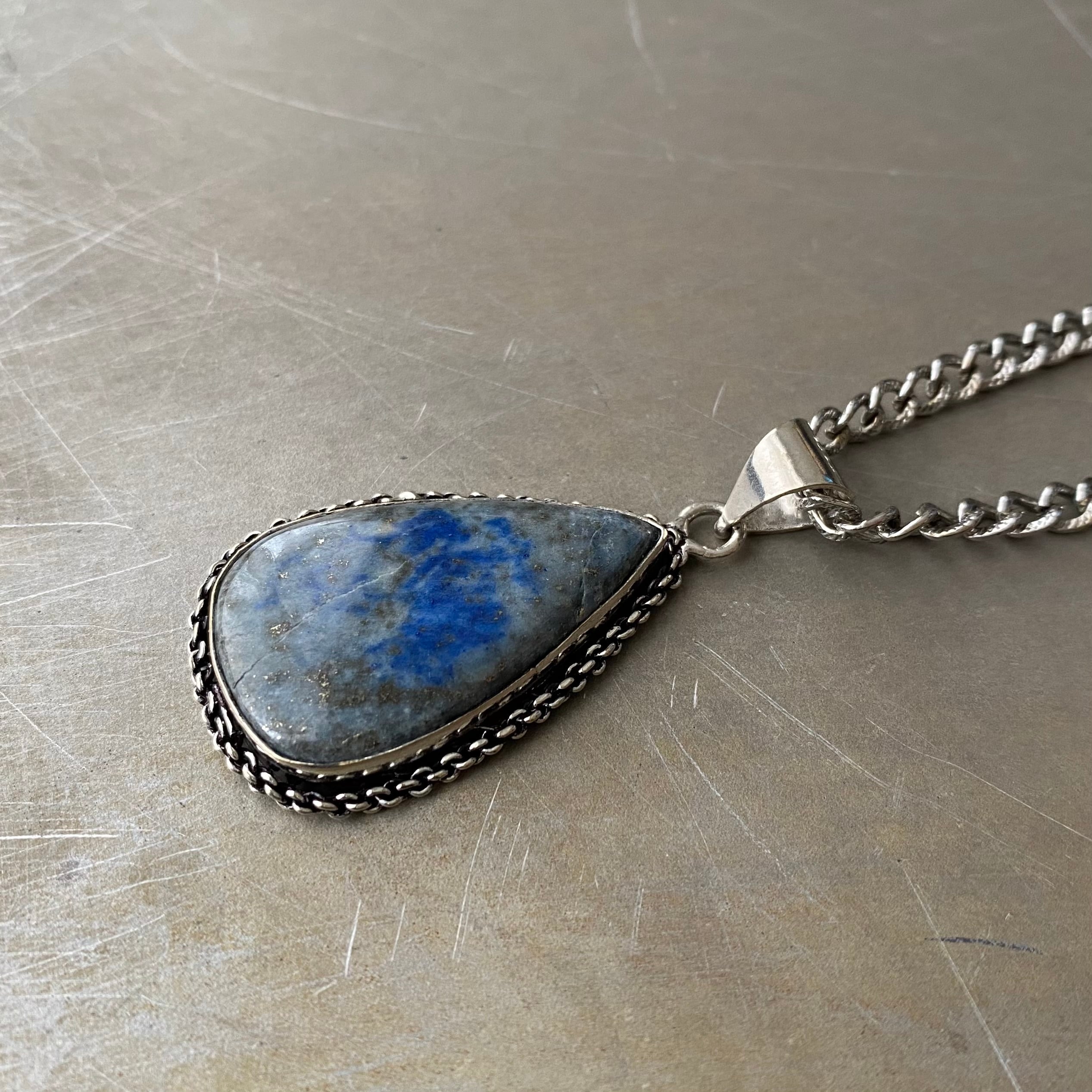 Retro hand made natural stone lapis lazuli necklace レトロ ハンドメイド アクセサリー 天然石 ラピスラズリ ネックレス