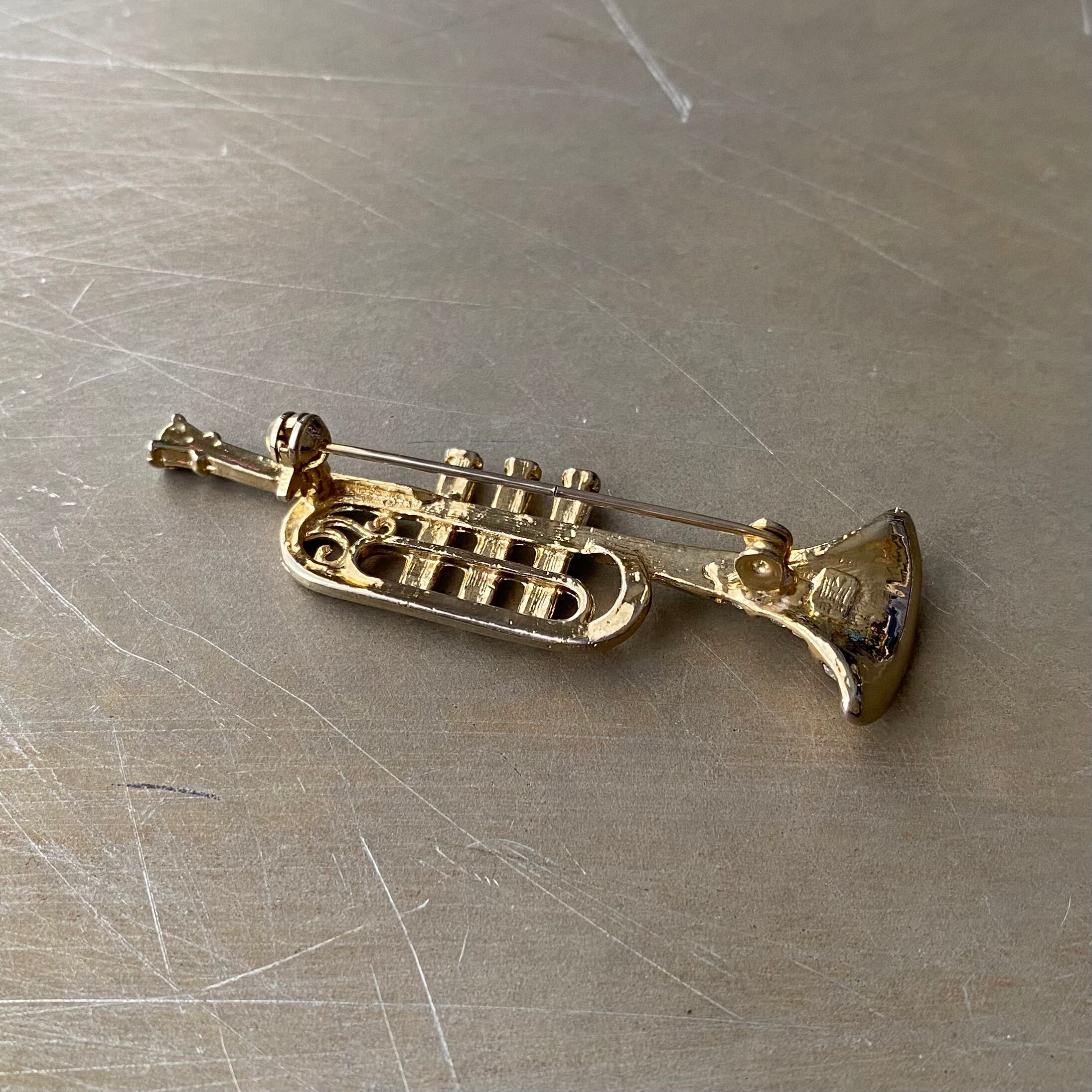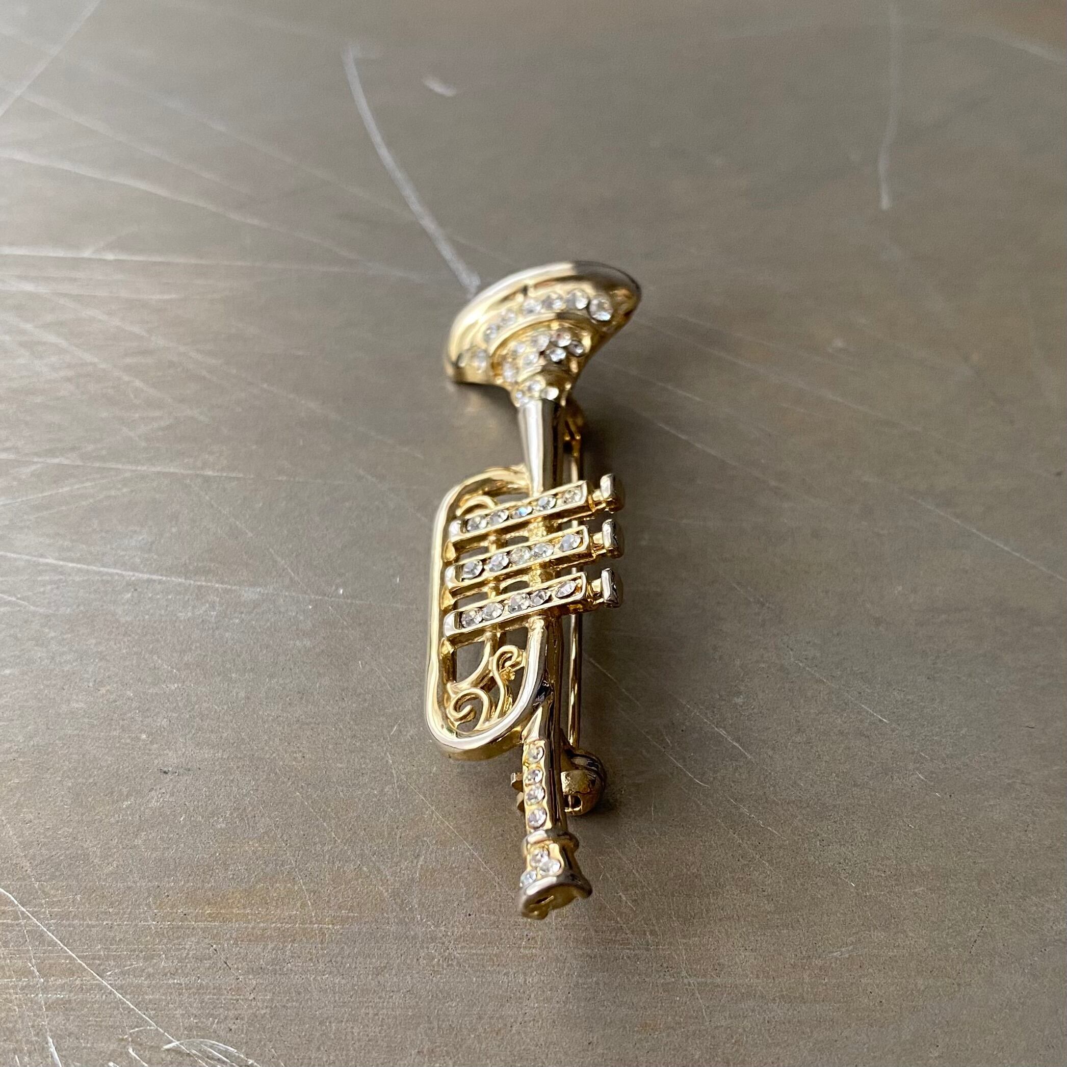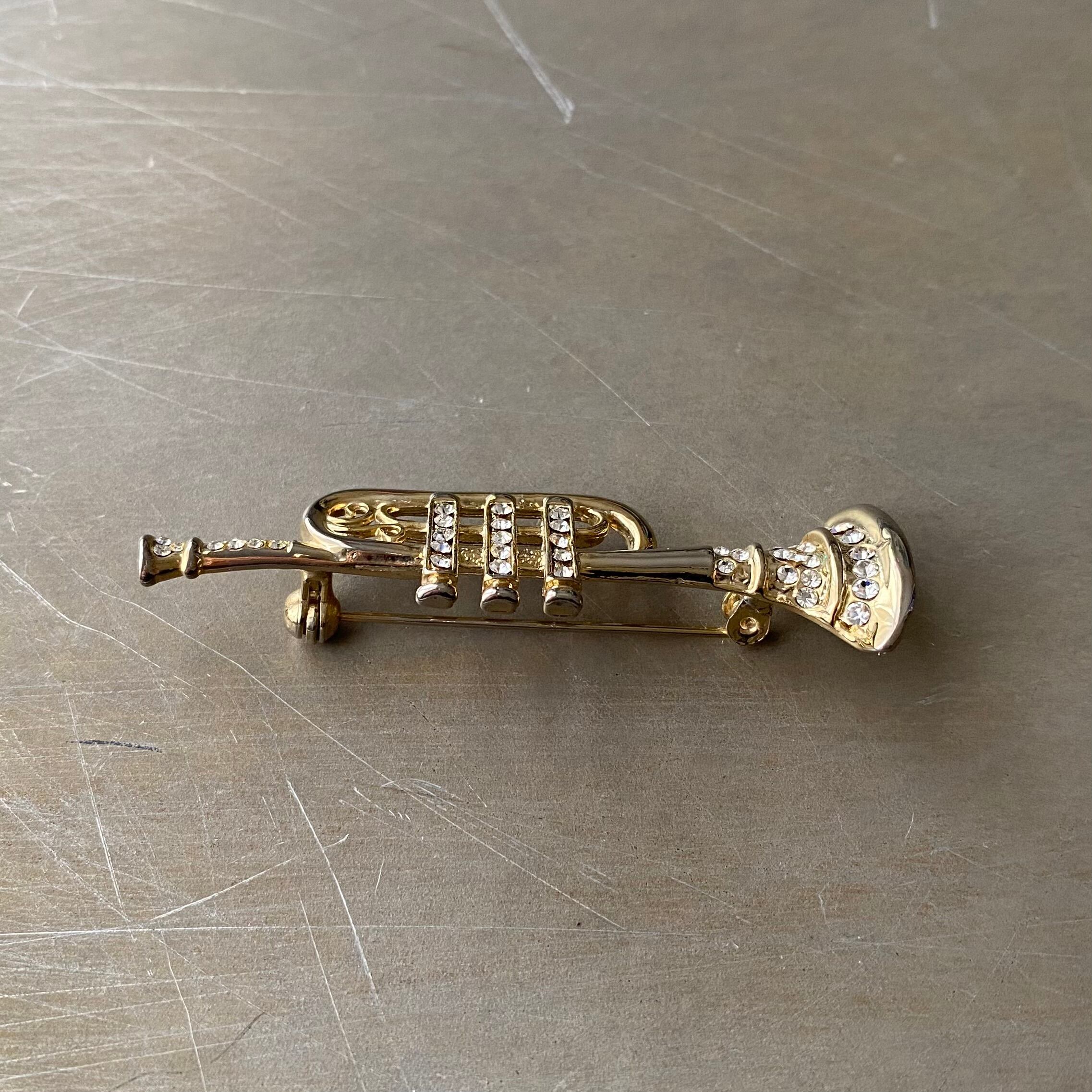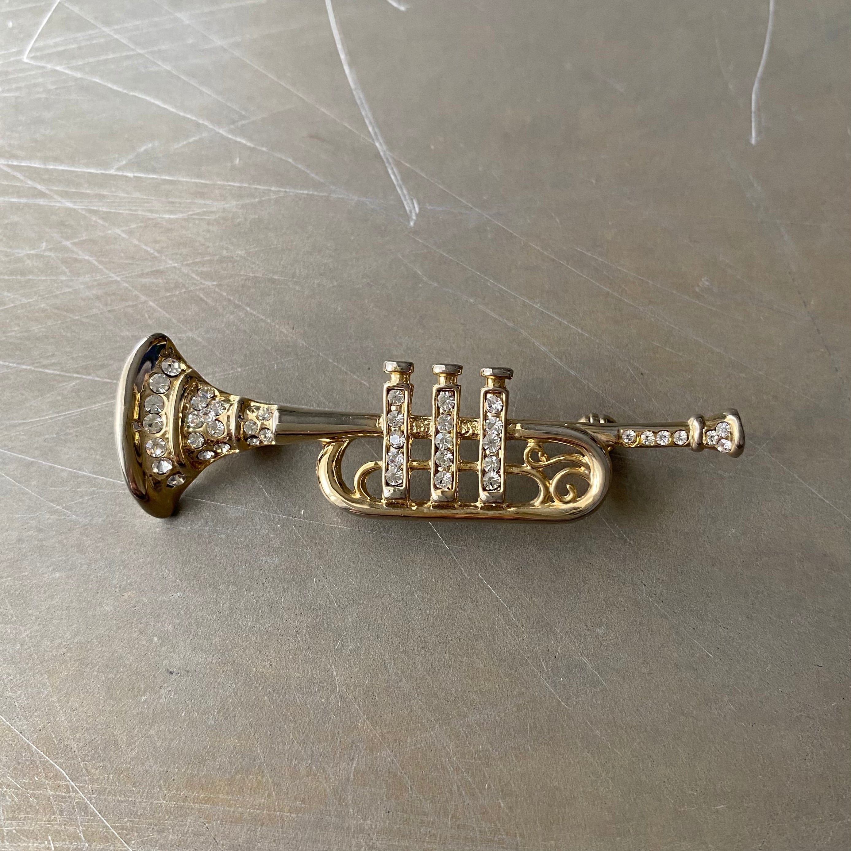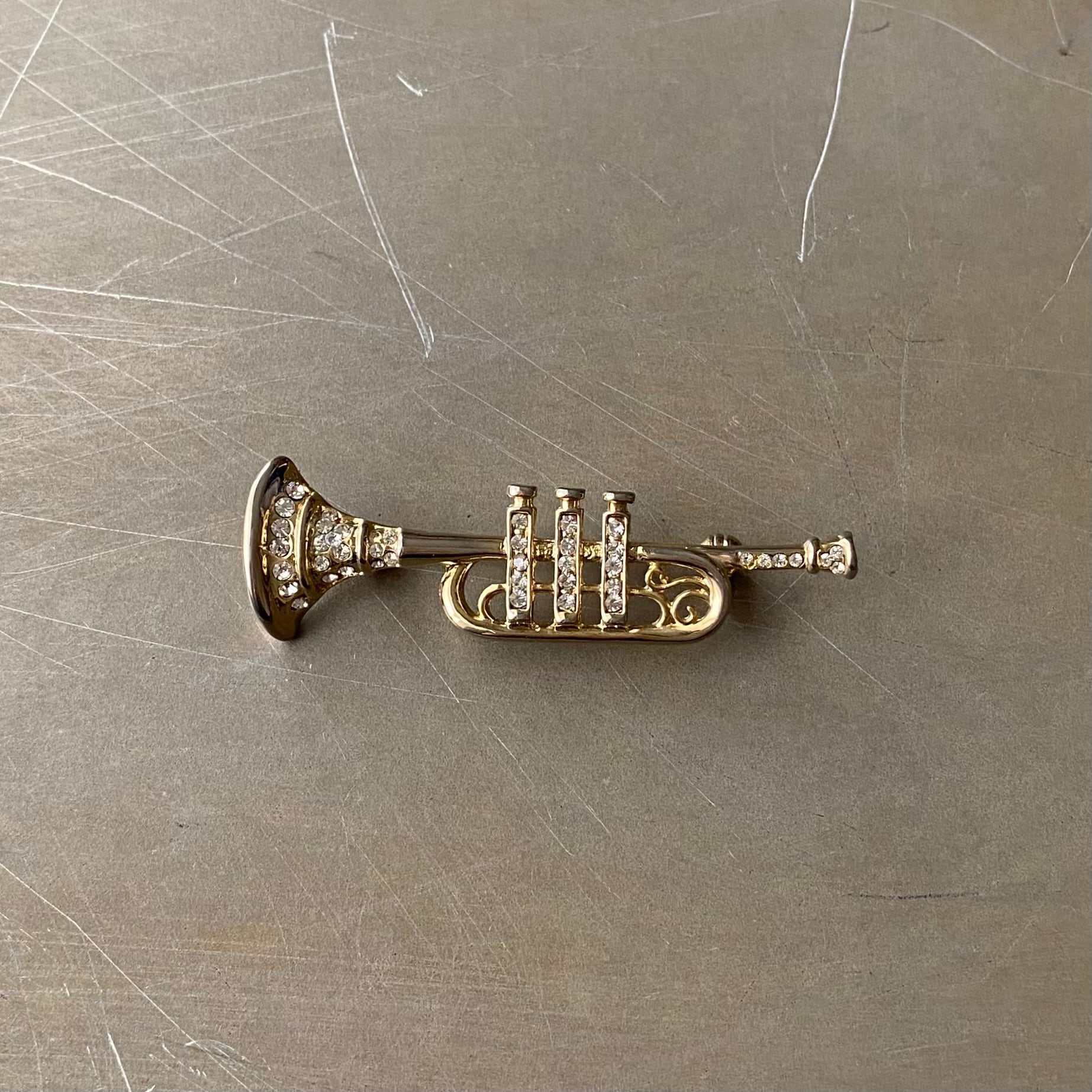 Used retro crystal bijou trumpet brooch レトロ ユーズド アクセサリー クリスタル ビジュー トランペット ブローチ