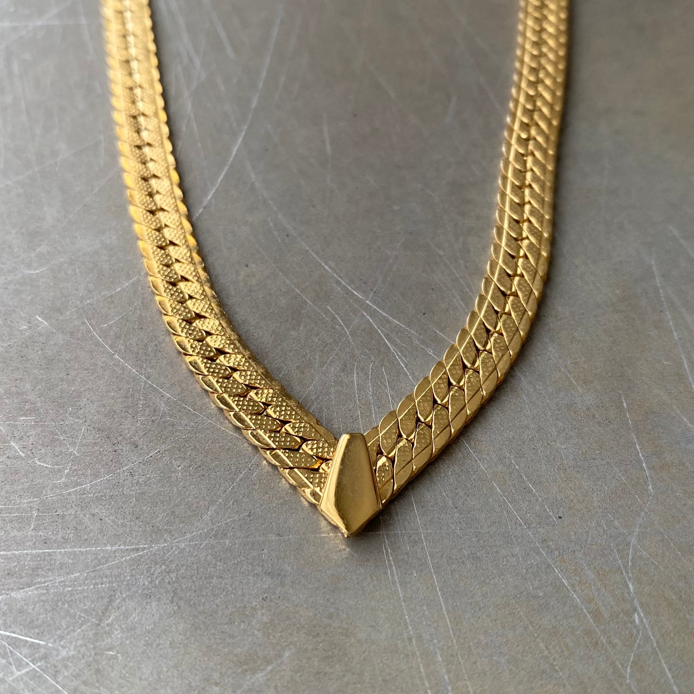 Vintage 80s USA retro gold tone V design classical chain necklace レトロ アメリカ ヴィンテージ アクセサリー ゴールド Vデザイン クラシカル チェーン ネックレス