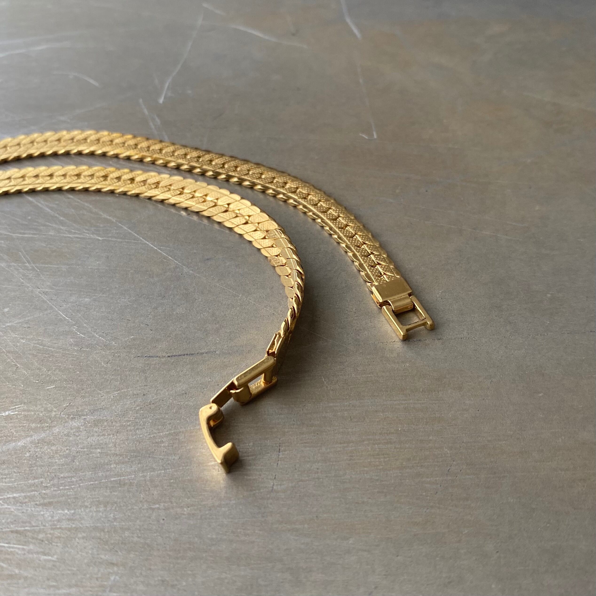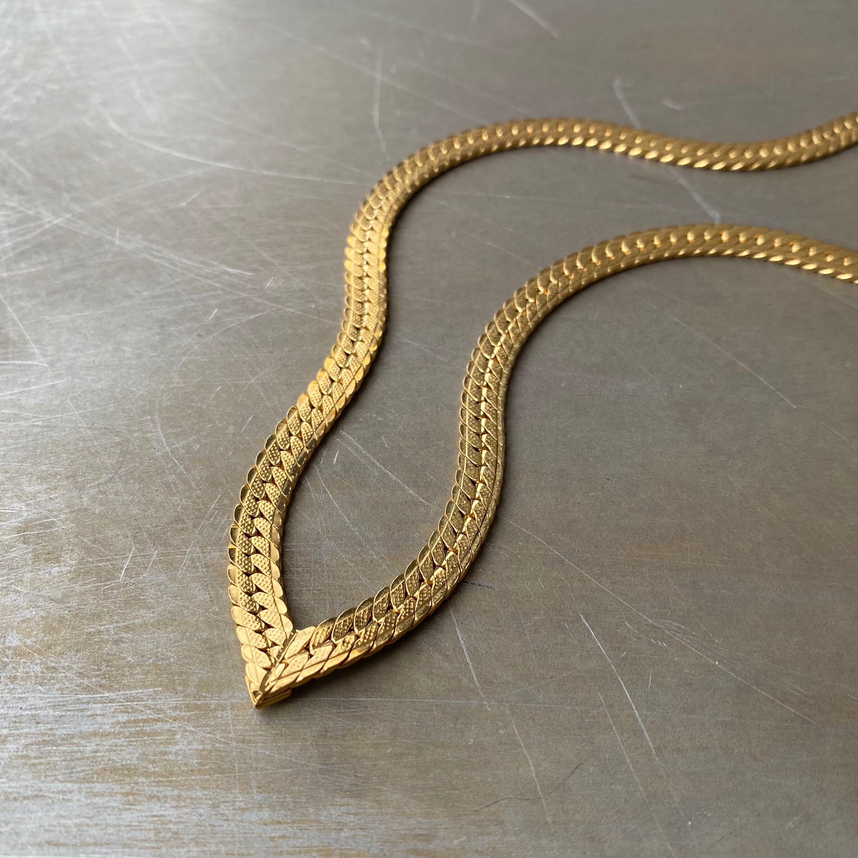クールなVラインのデザインが魅力的なフラットチェーンタイプのUSAヴィンテージネックレス。シンプルながら存在感がありスタイリングに上質な印象をプラスしてくれます。