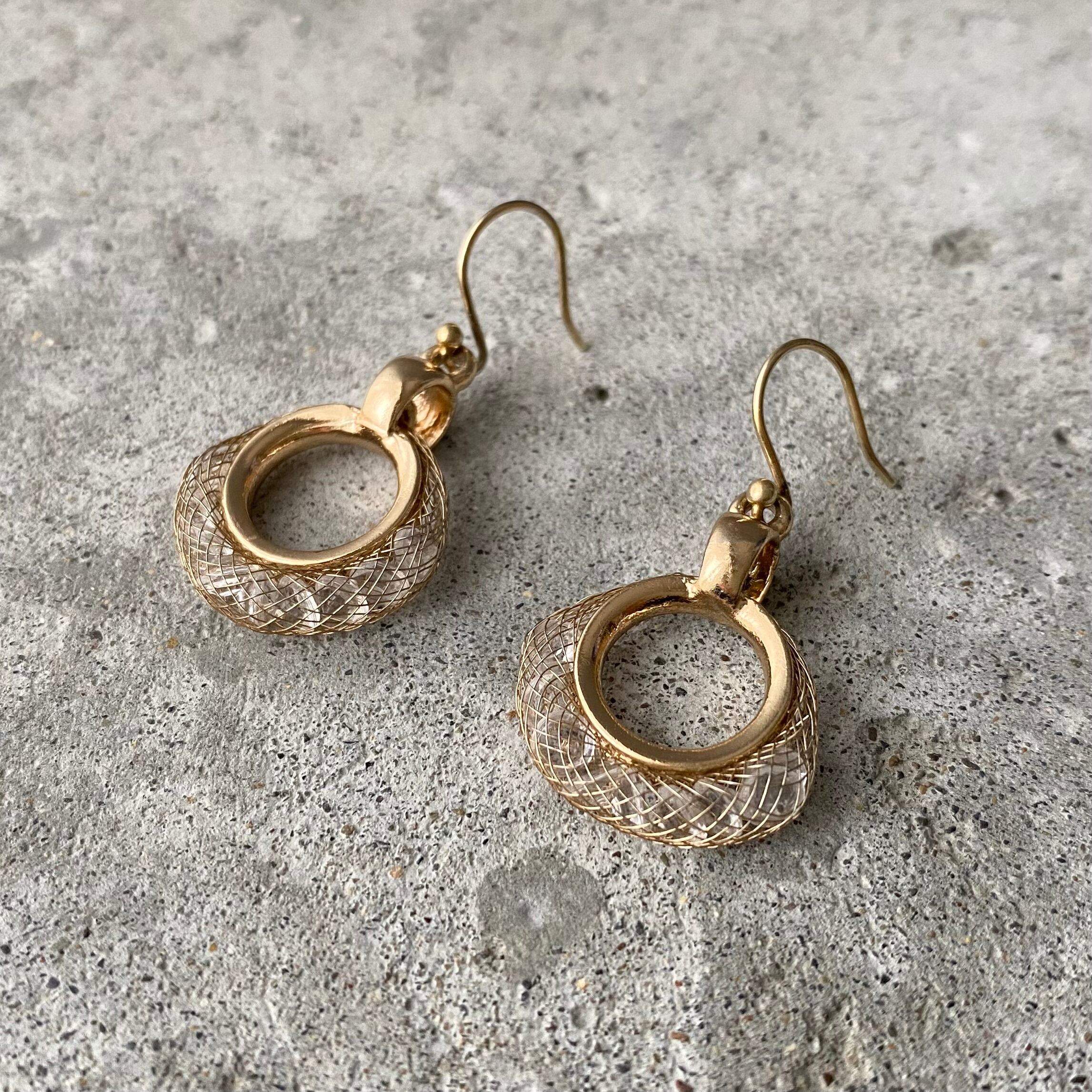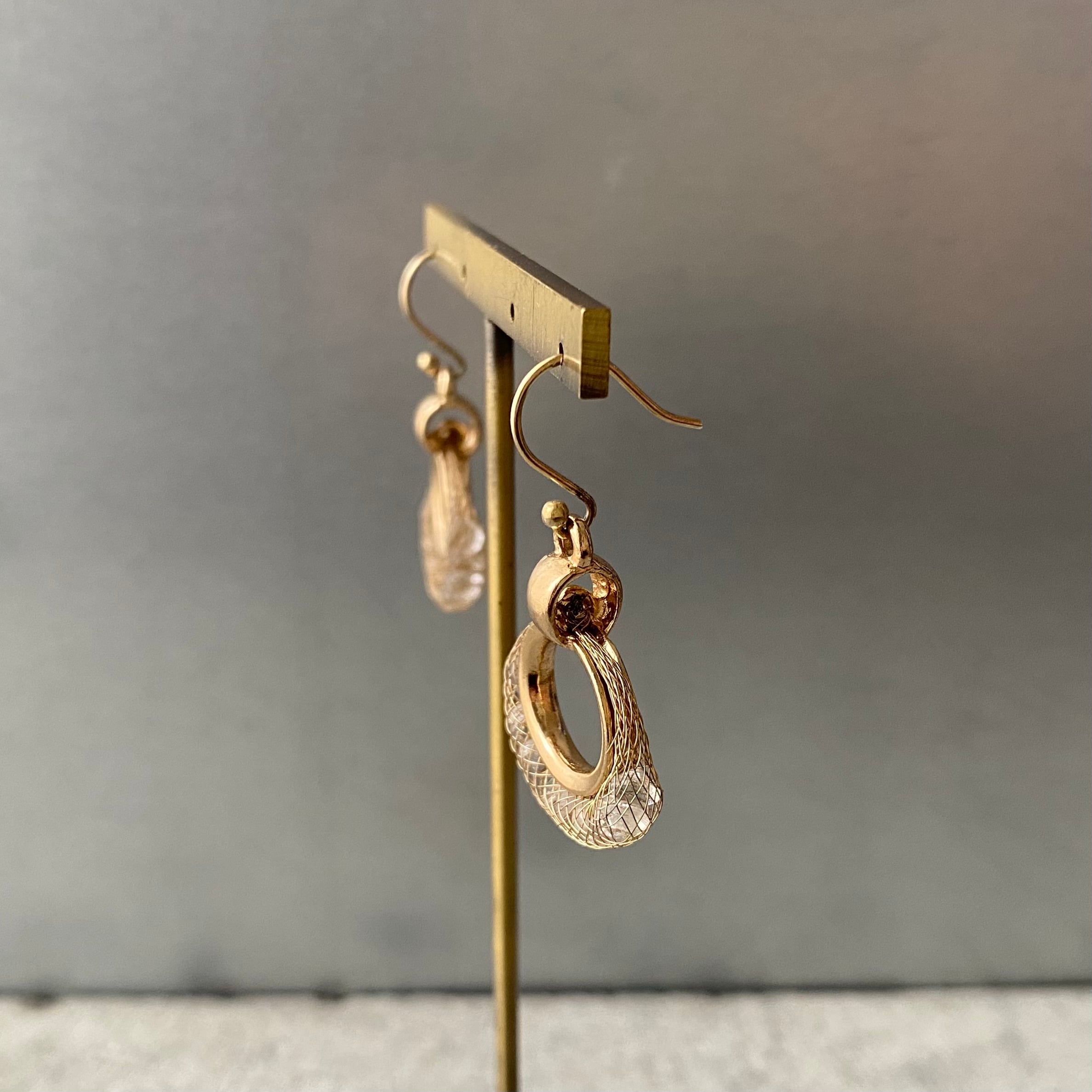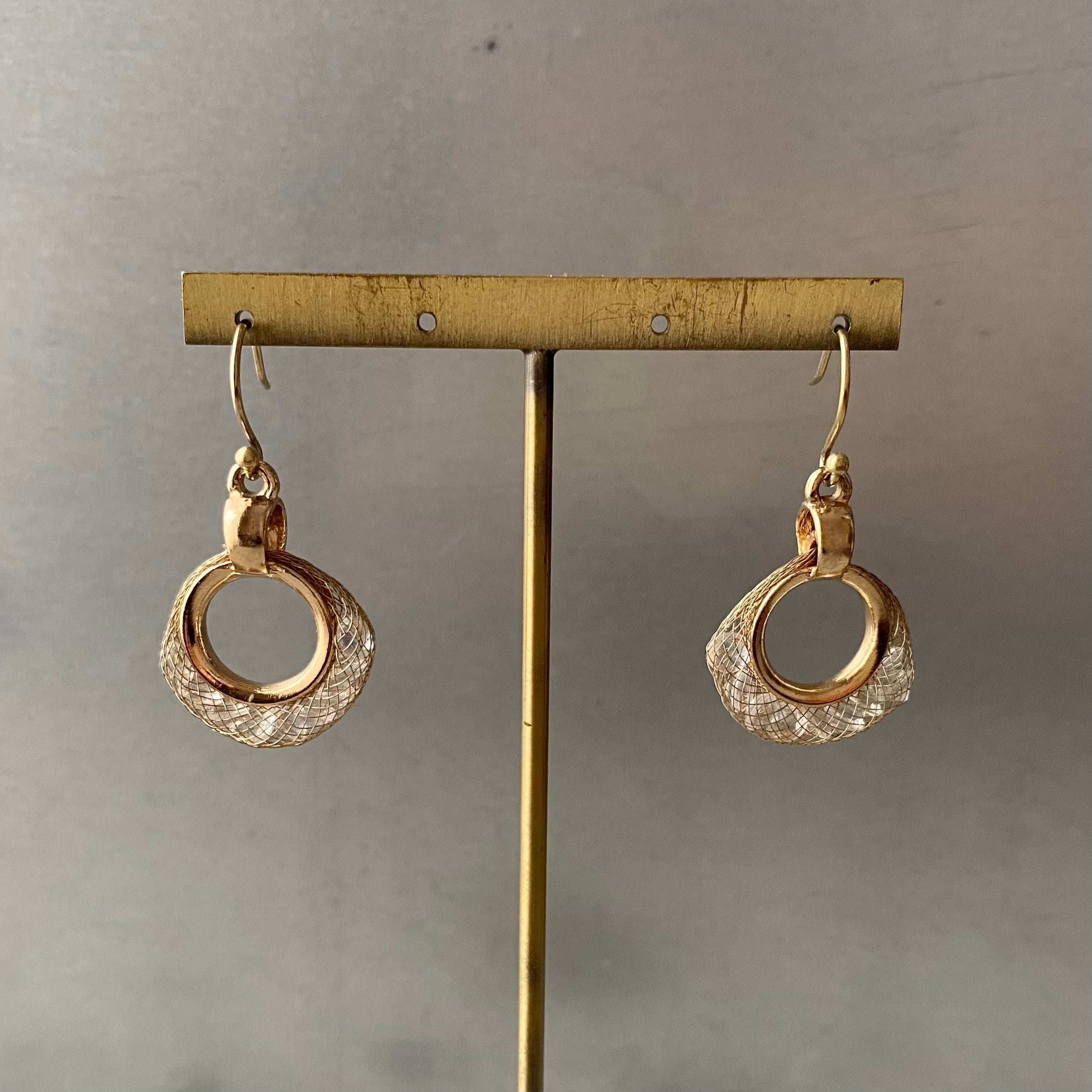 Vintage USA retro metal mesh crystal bijou pierce レトロ アメリカ ヴィンテージ アクセサリー ゴールド メタルメッシュ クリスタル ビジュー ピアス/イヤリング