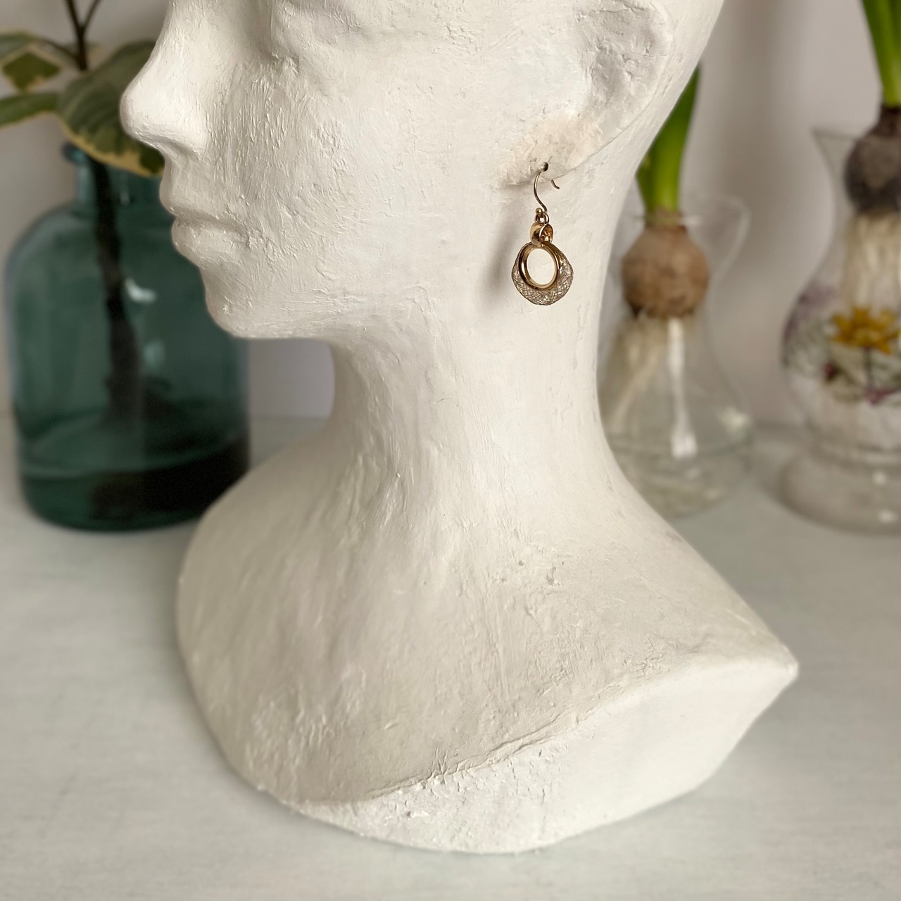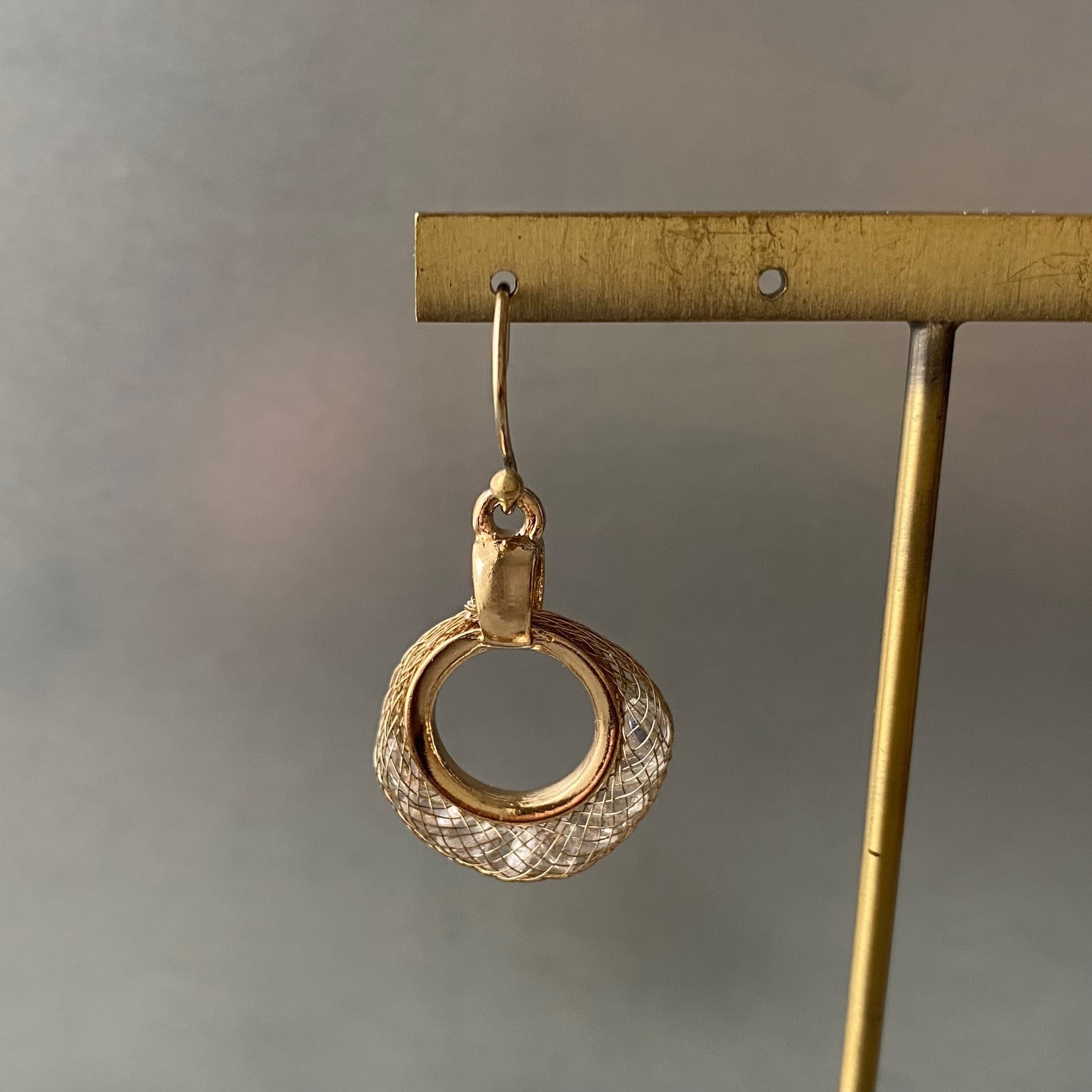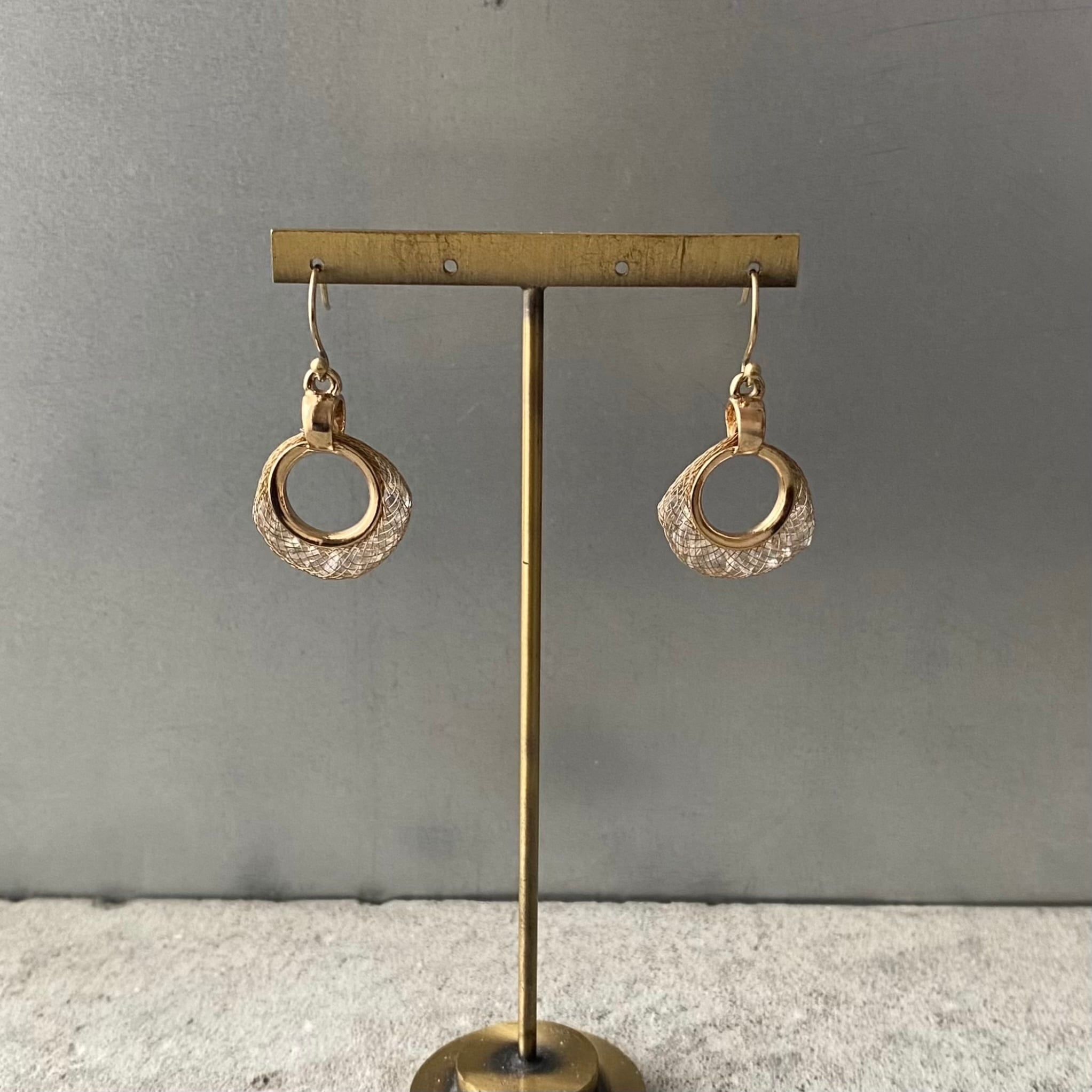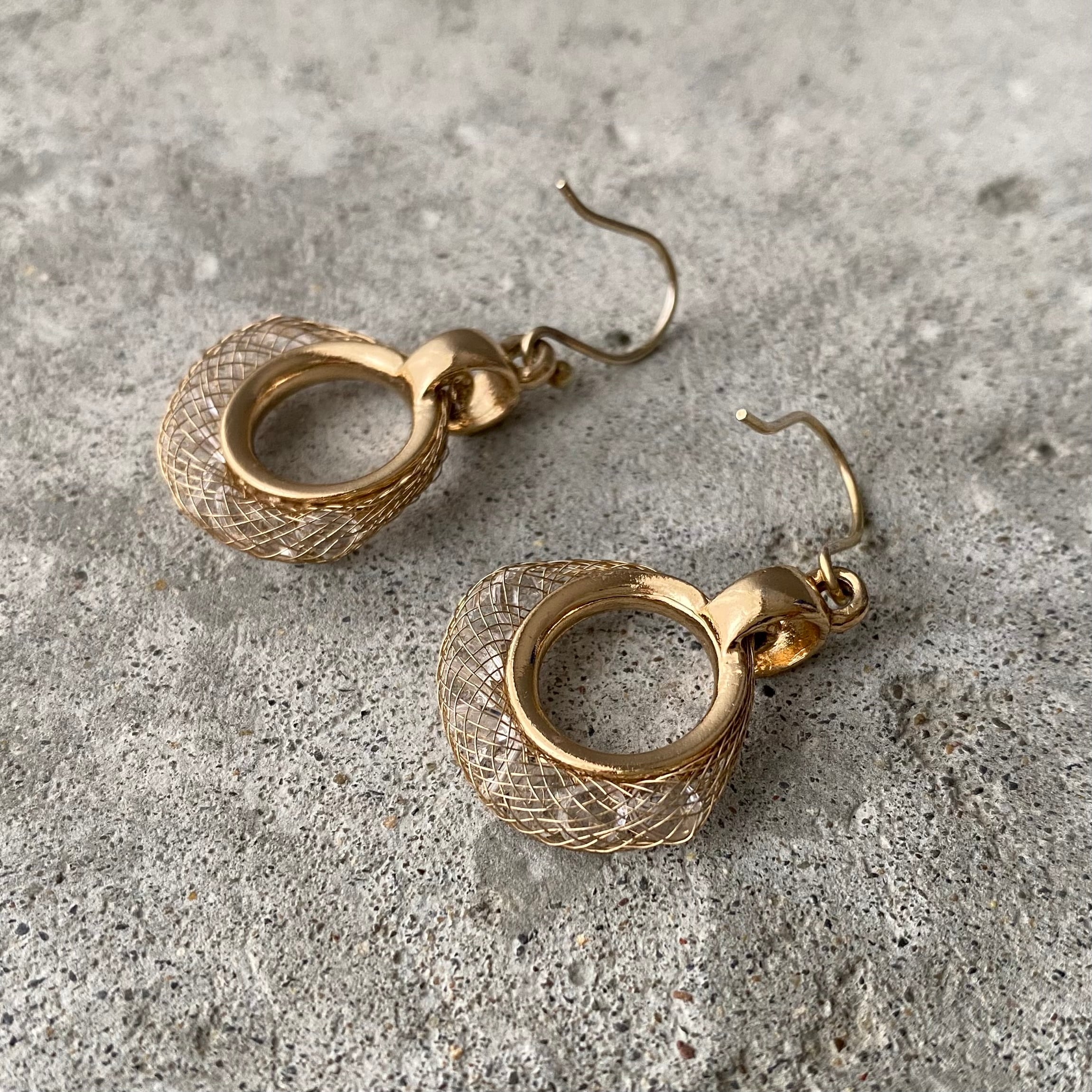 Vintage USA retro metal mesh crystal bijou pierce レトロ アメリカ ヴィンテージ アクセサリー ゴールド メタルメッシュ クリスタル ビジュー ピアス/イヤリング