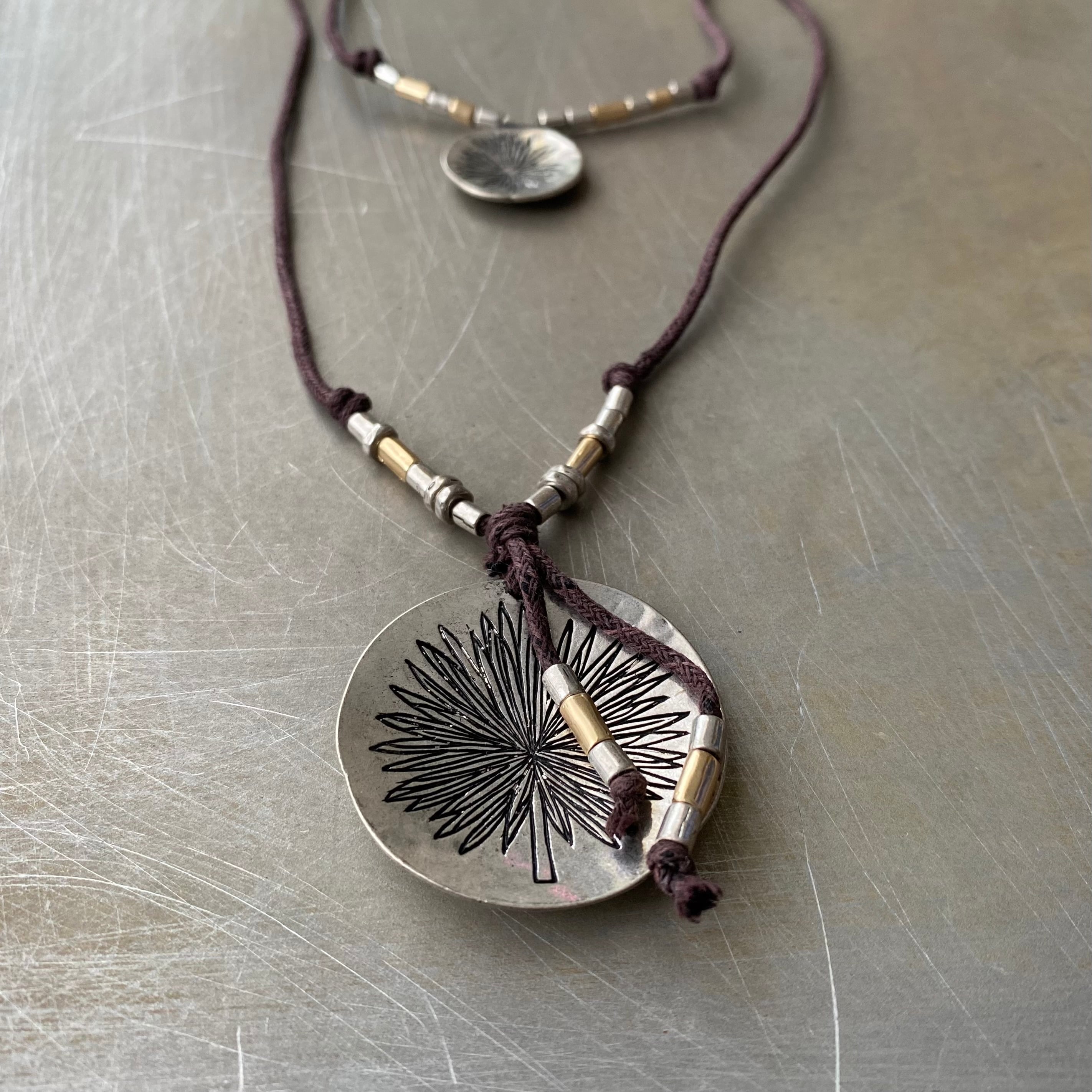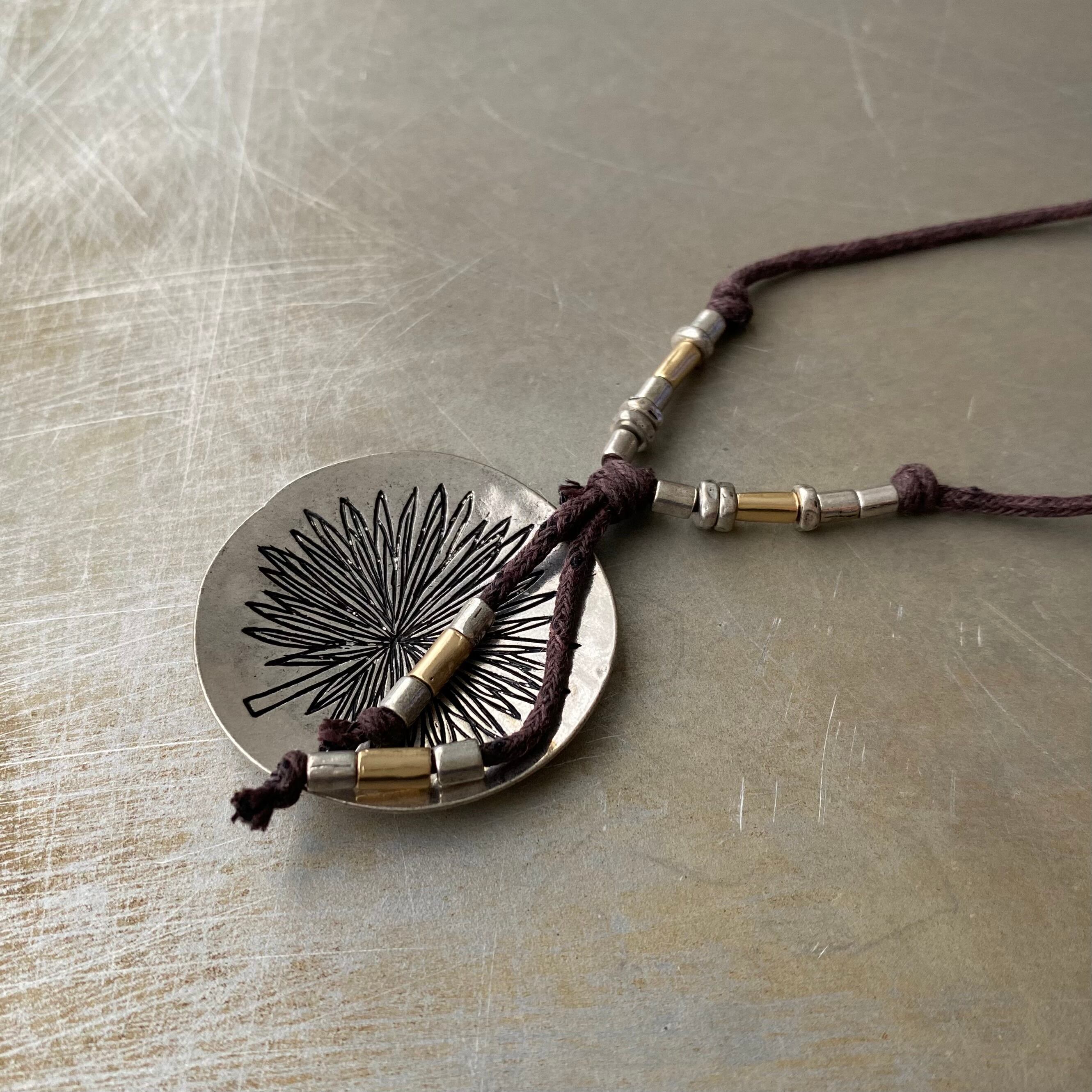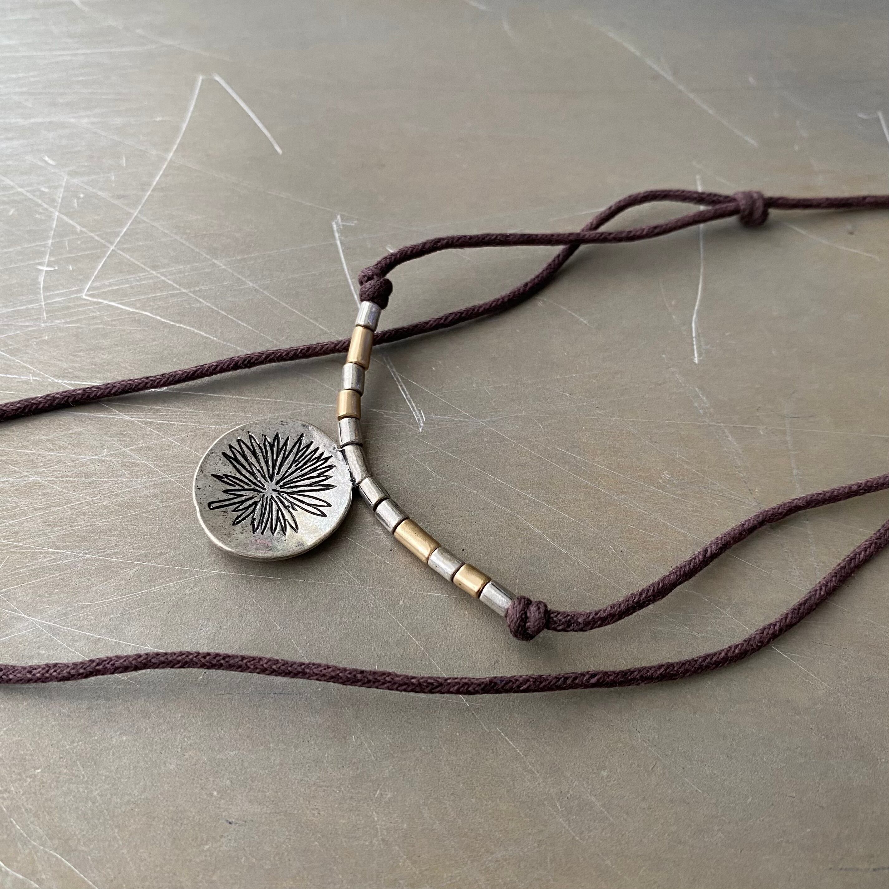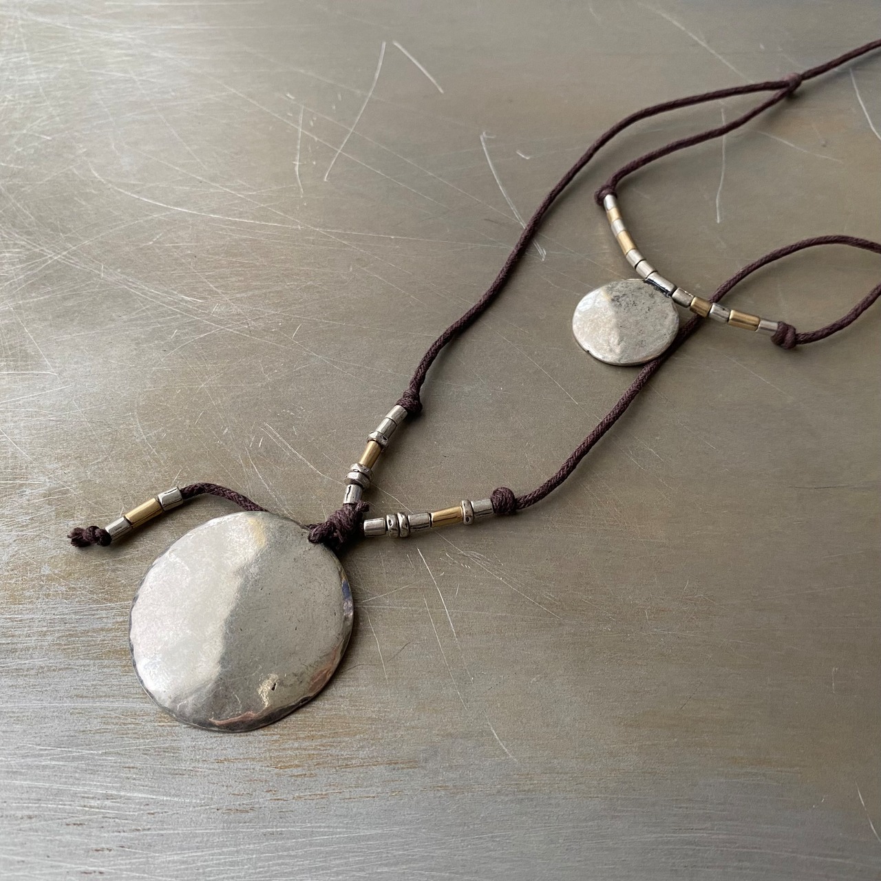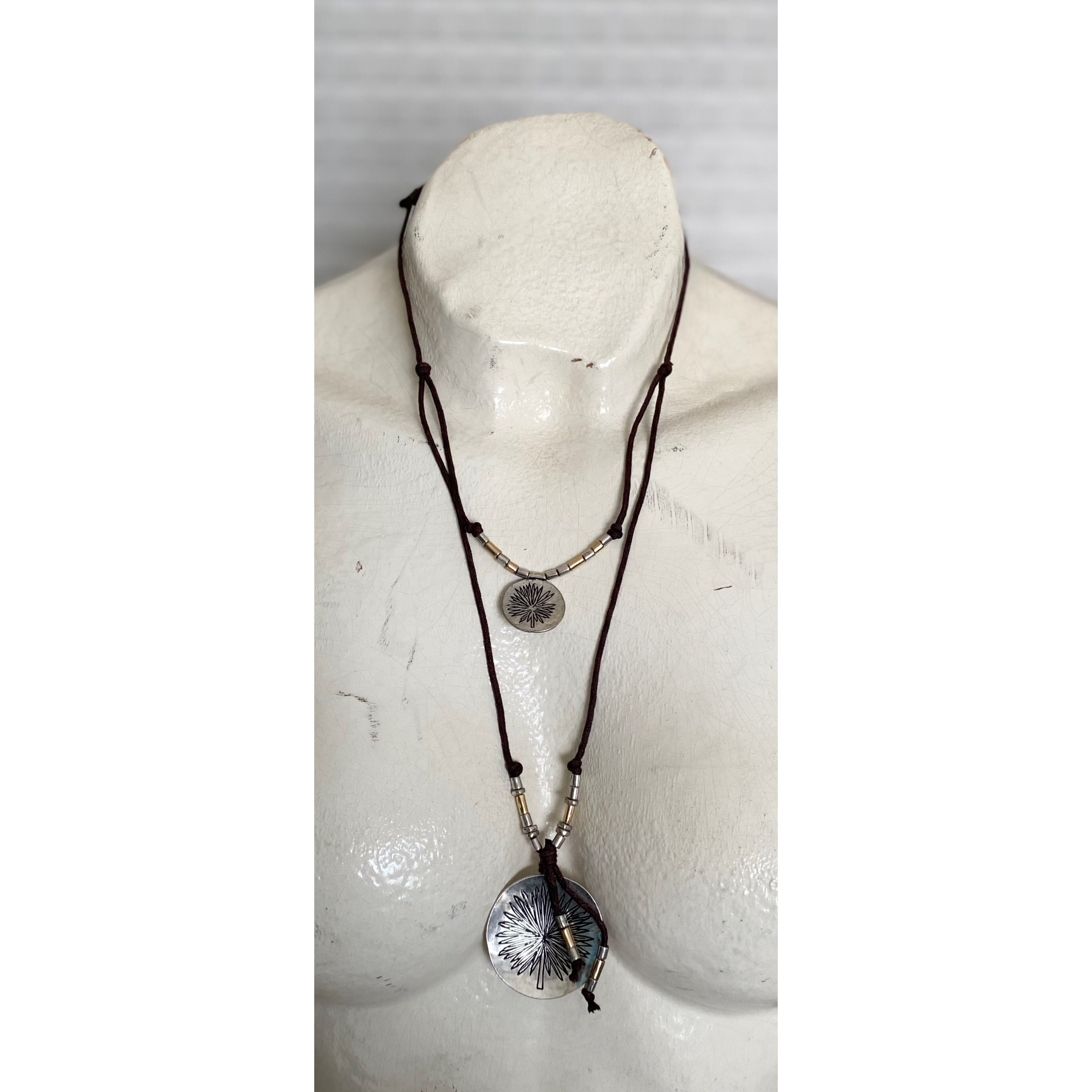 エスニックな雰囲気のUSAユーズドネックレス。結び目を左右に引っ張るとお好きな長さに調整出来るアジャスタブルな作りです。存在感があり古着やユニセックスなスタイルにもおすすめです。