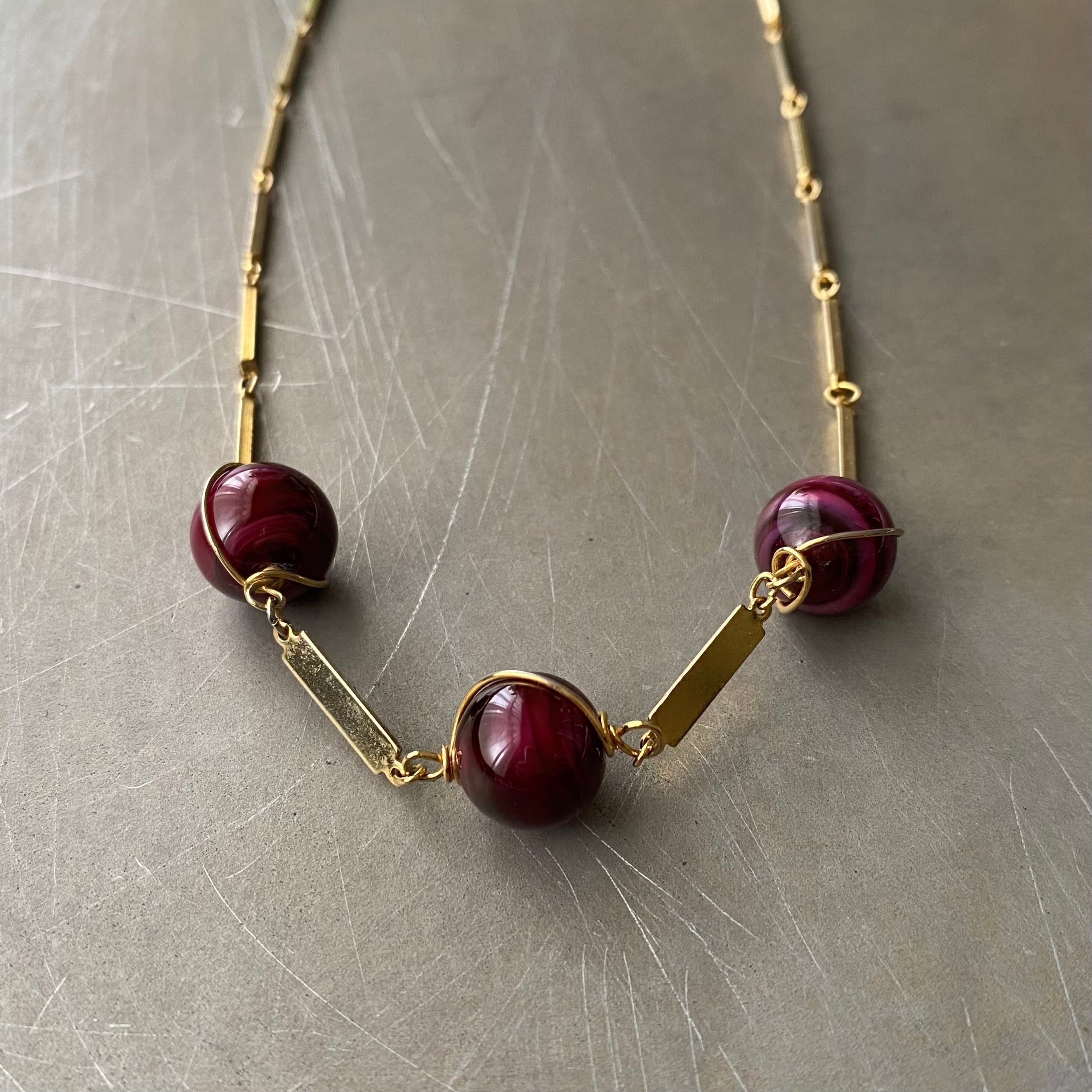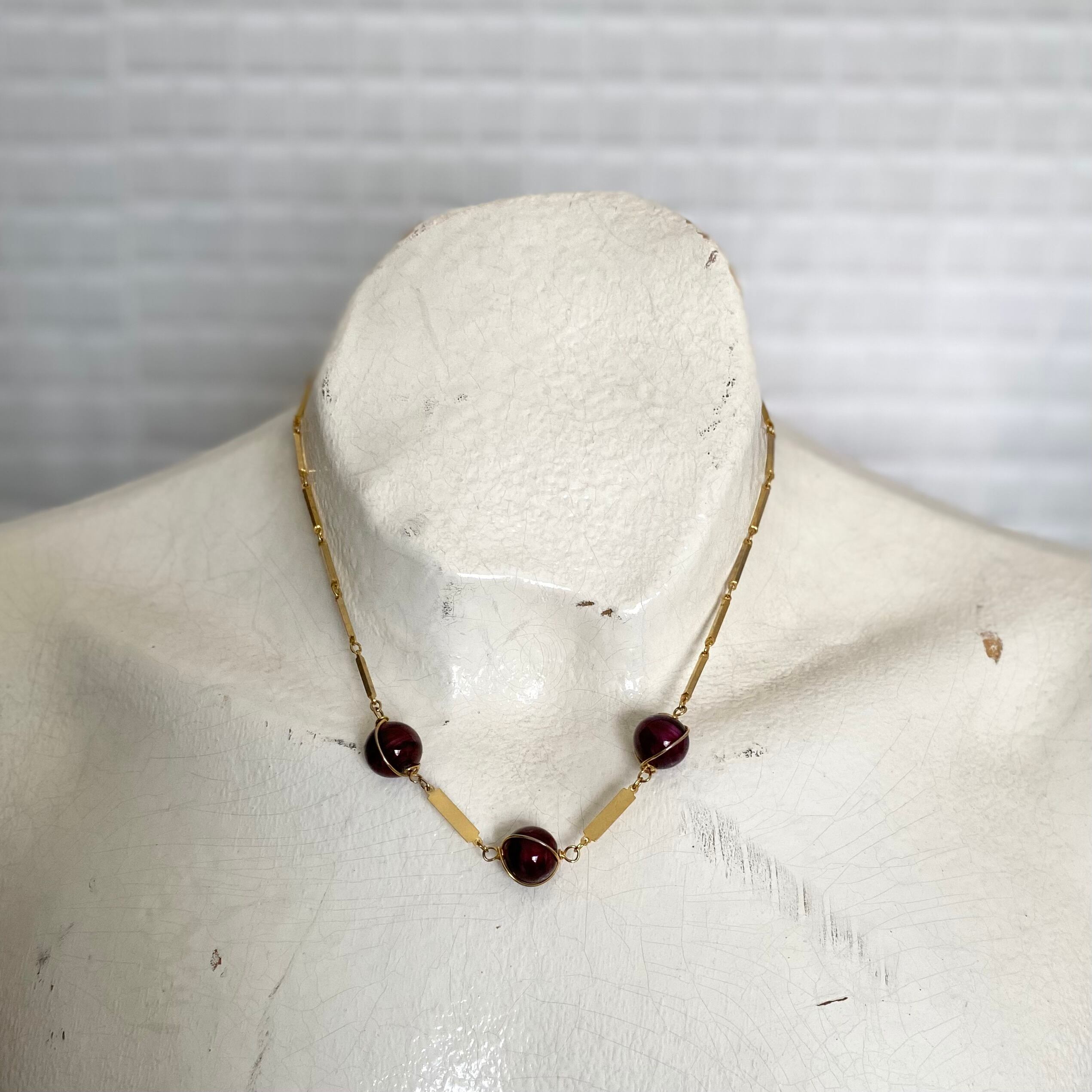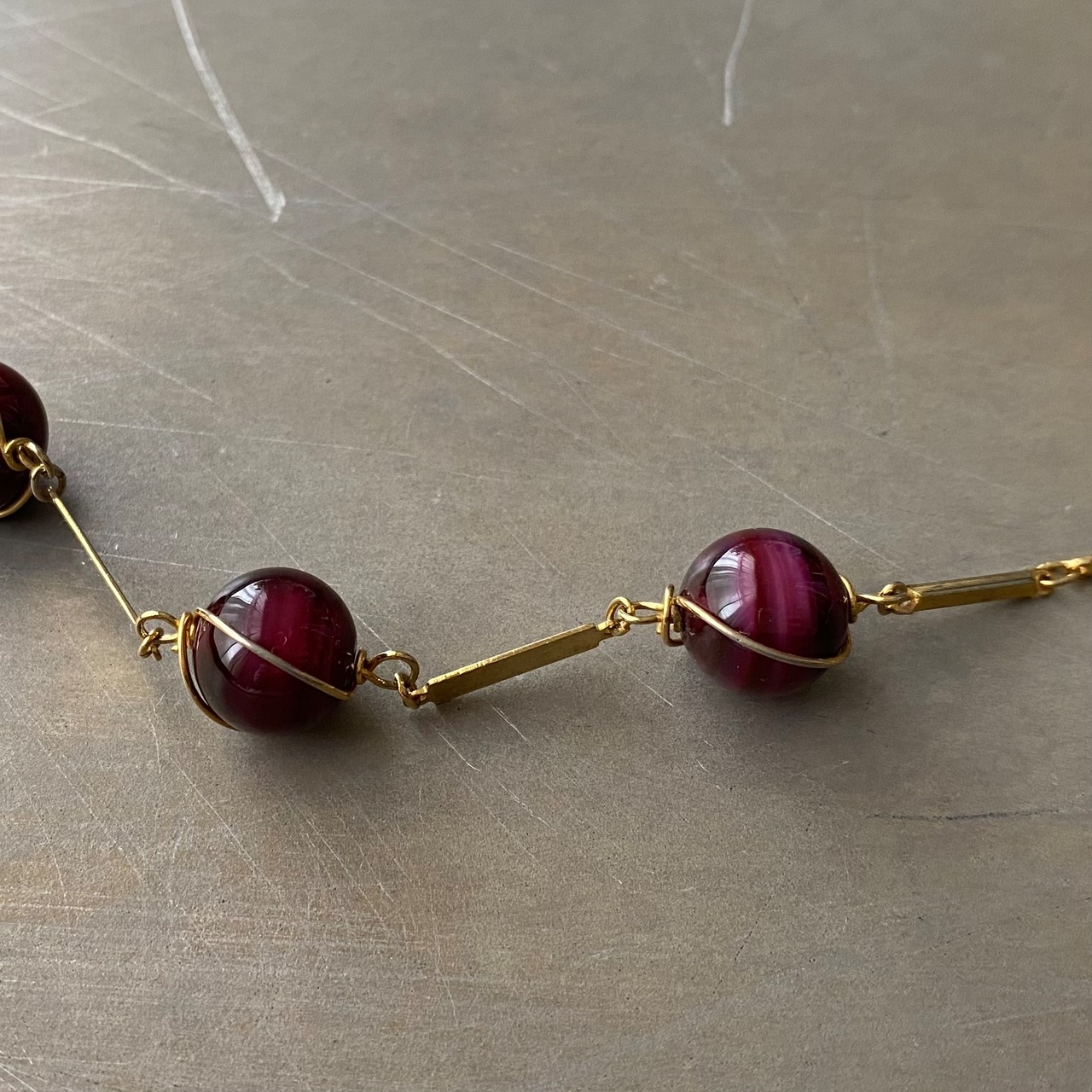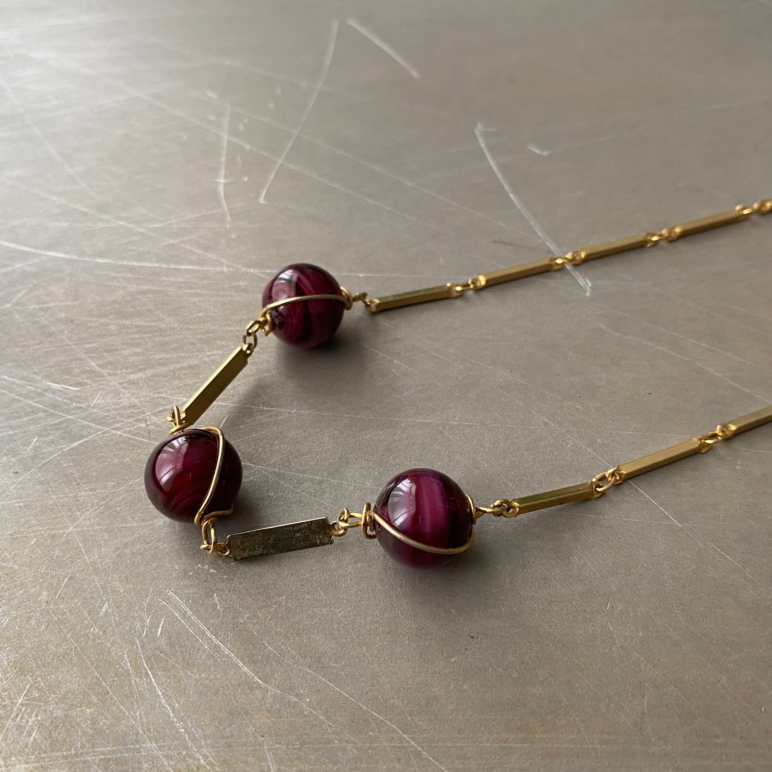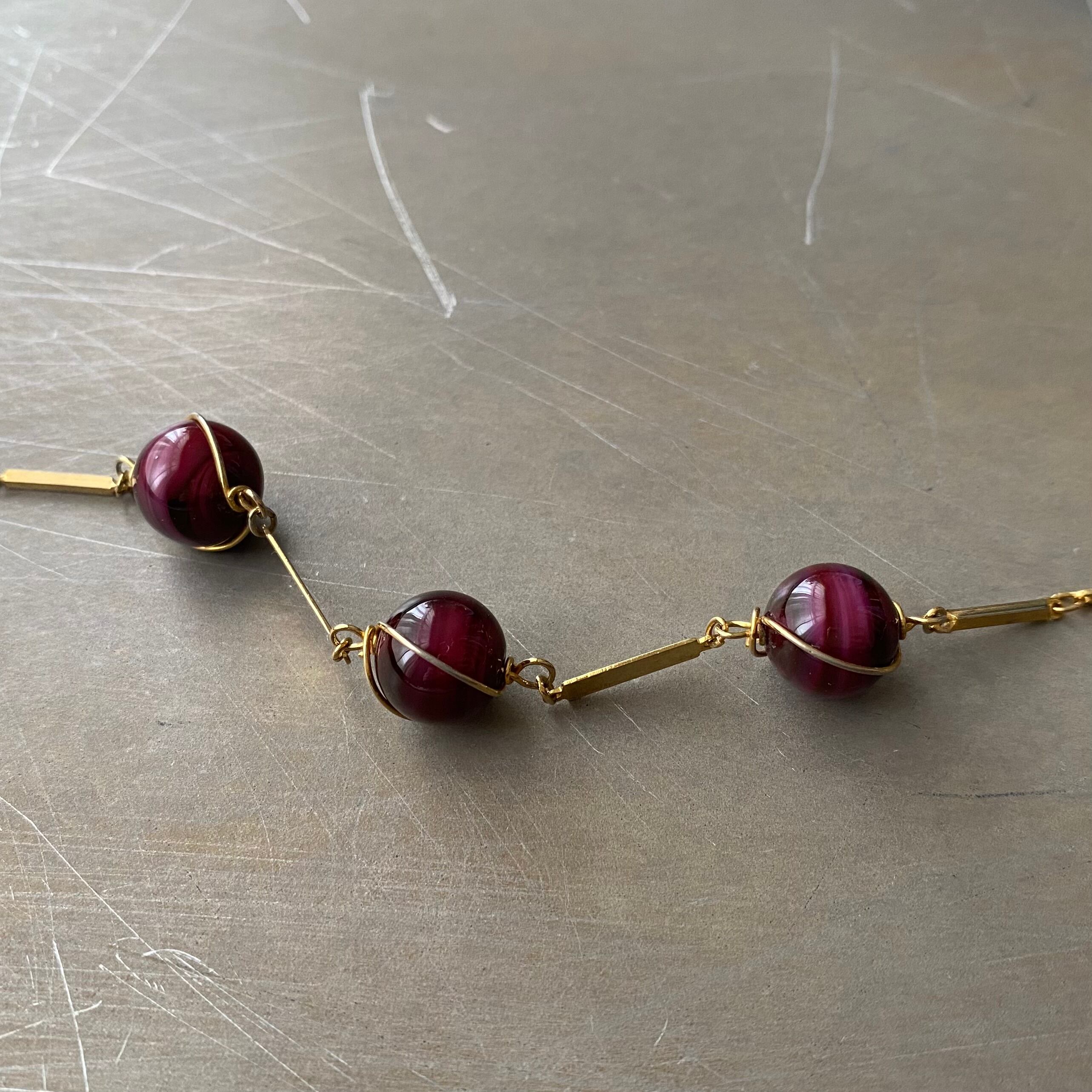 Vintage retro wirework glass beads chain necklace レトロ ヴィンテージ アクセサリー ワイヤーワーク ガラスビーズ チェーン ネックレス