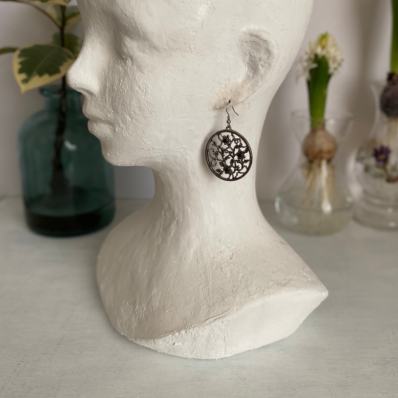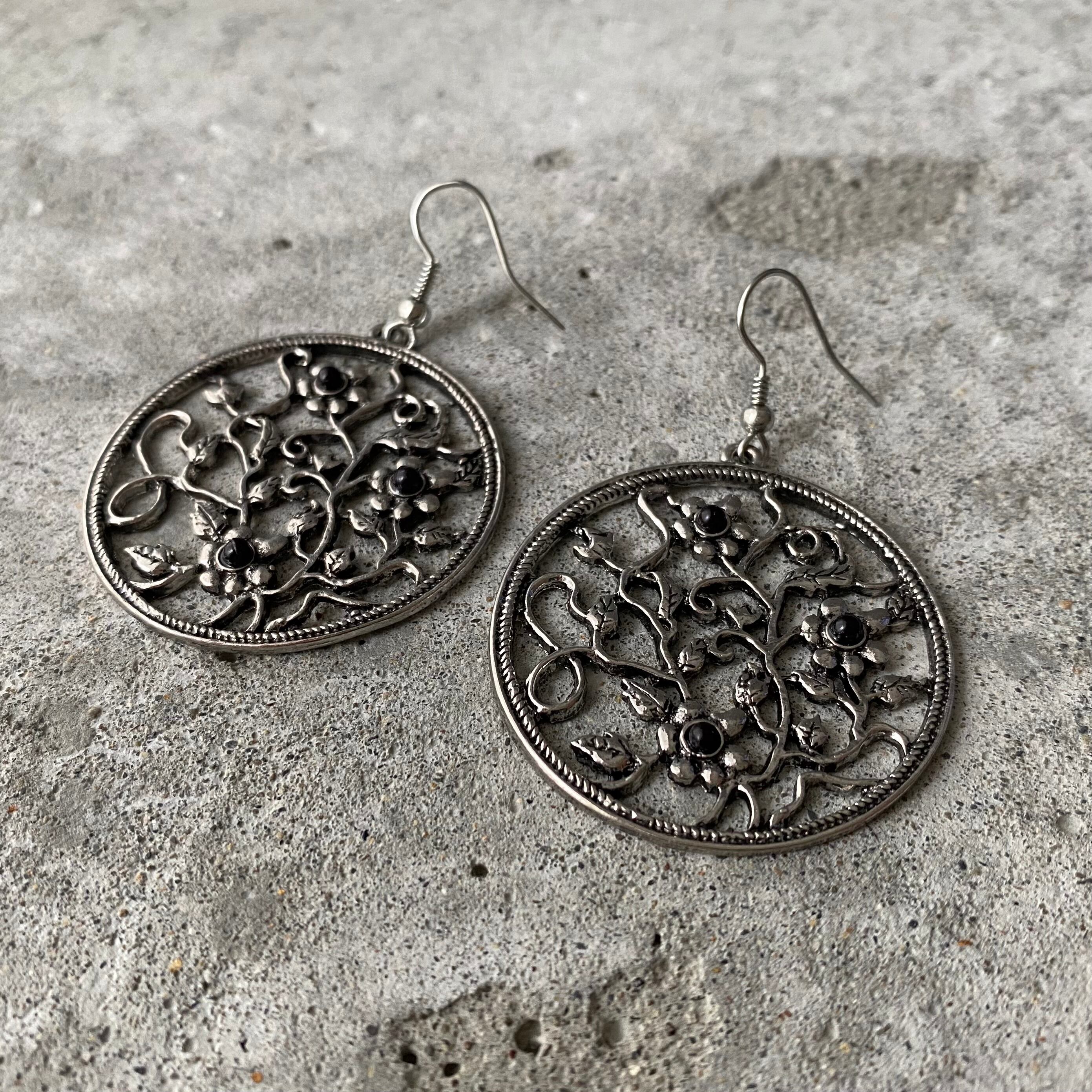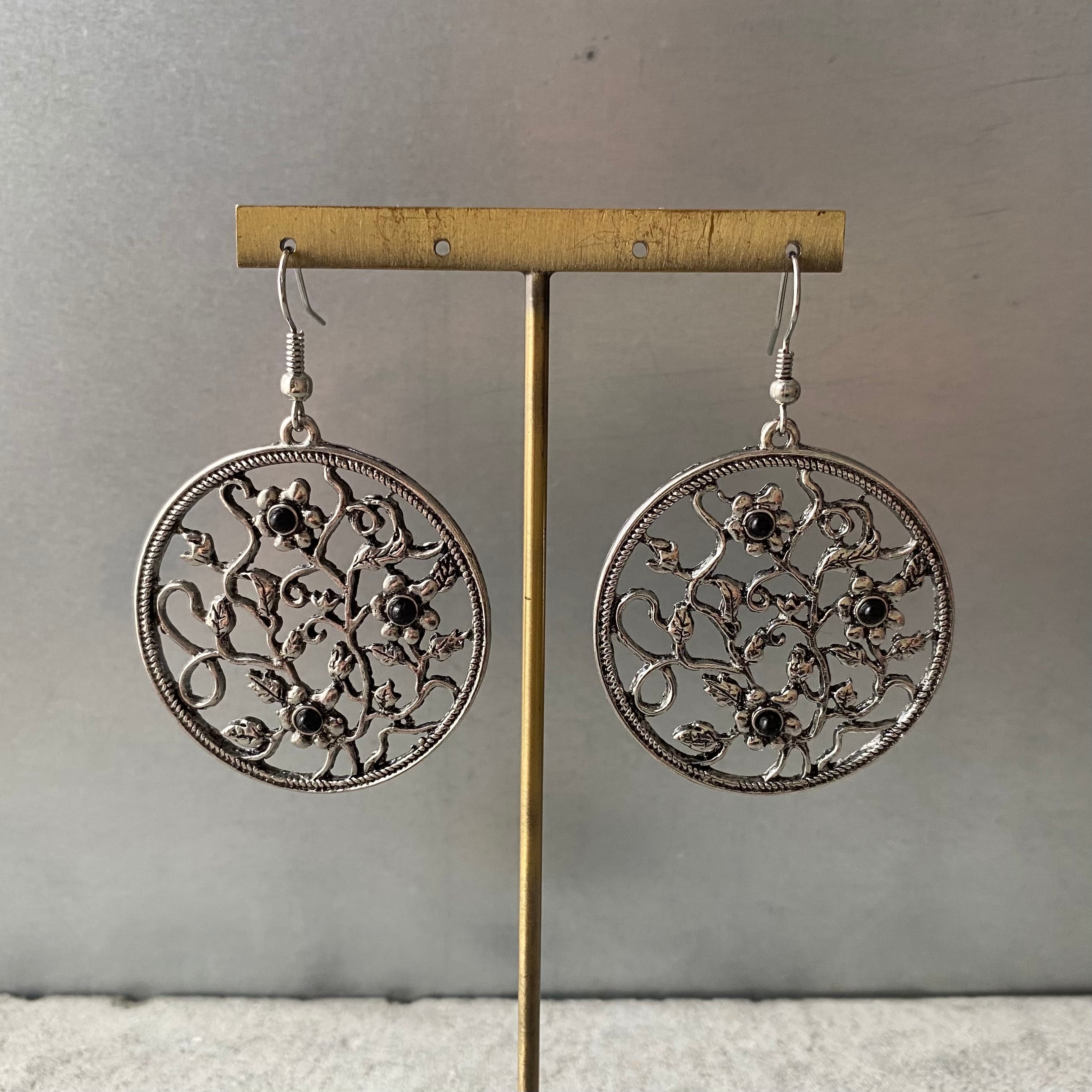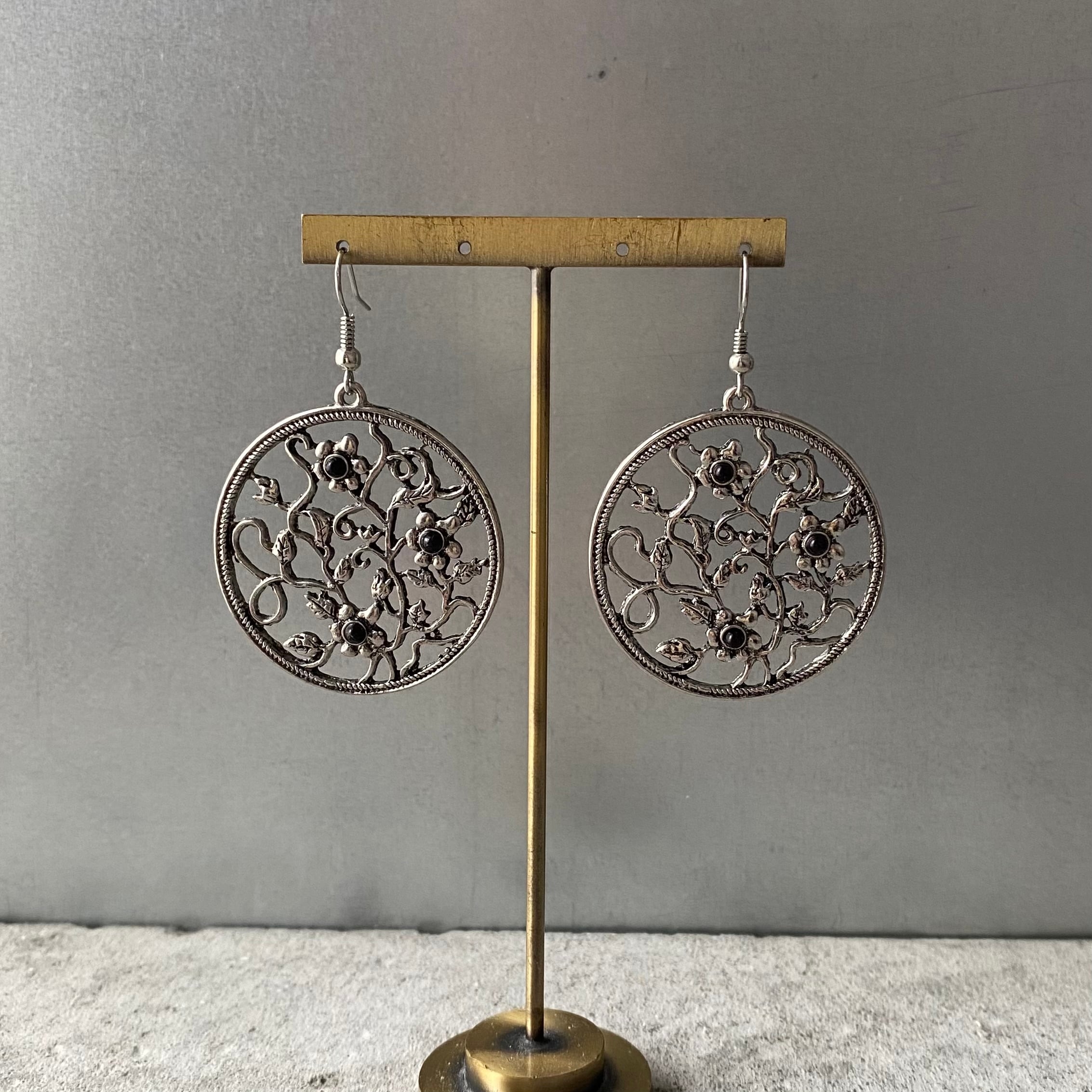 Used USA retro botanical flower circle pierce レトロ アメリカ ユーズド アクセサリー ボタニカル フラワー サークル ピアス/イヤリング