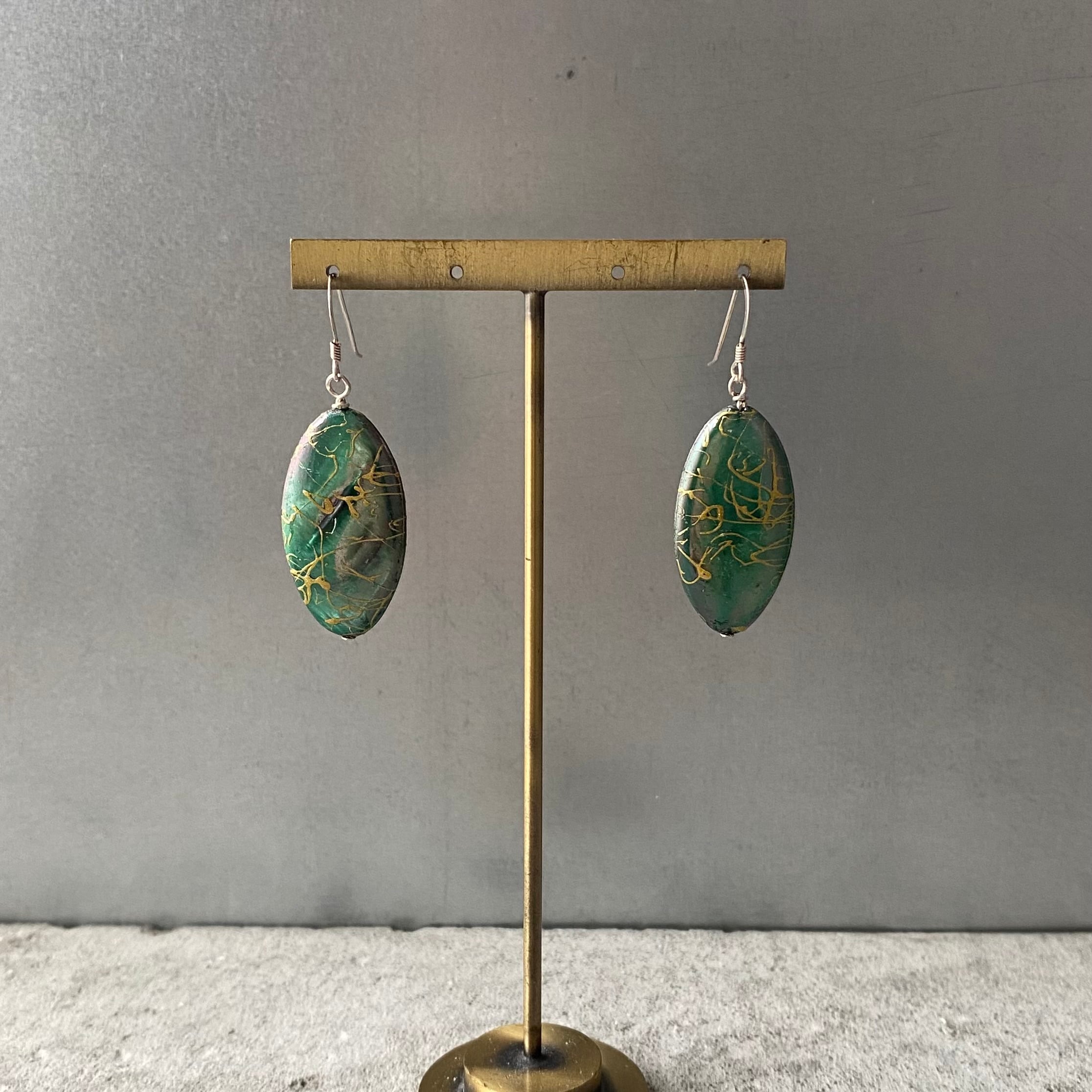 Vintage 00s USA retro gold painted green shell pierce レトロ アメリカ ヴィンテージ アクセサリー 天然石 ゴールド ペイント グリーン シェル ピアス
