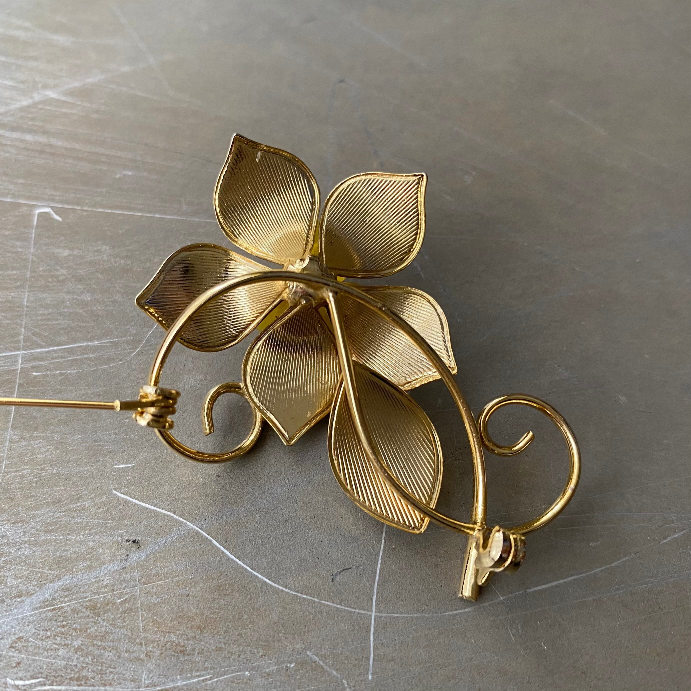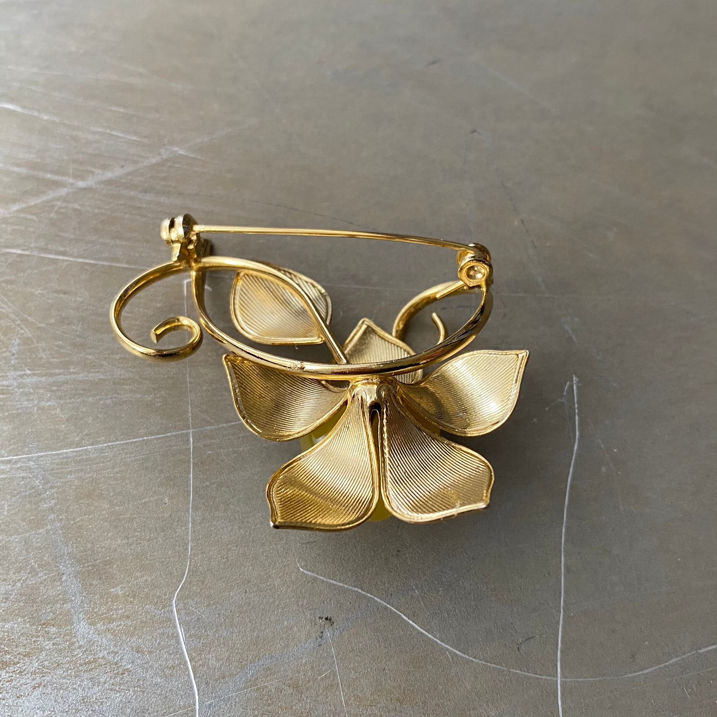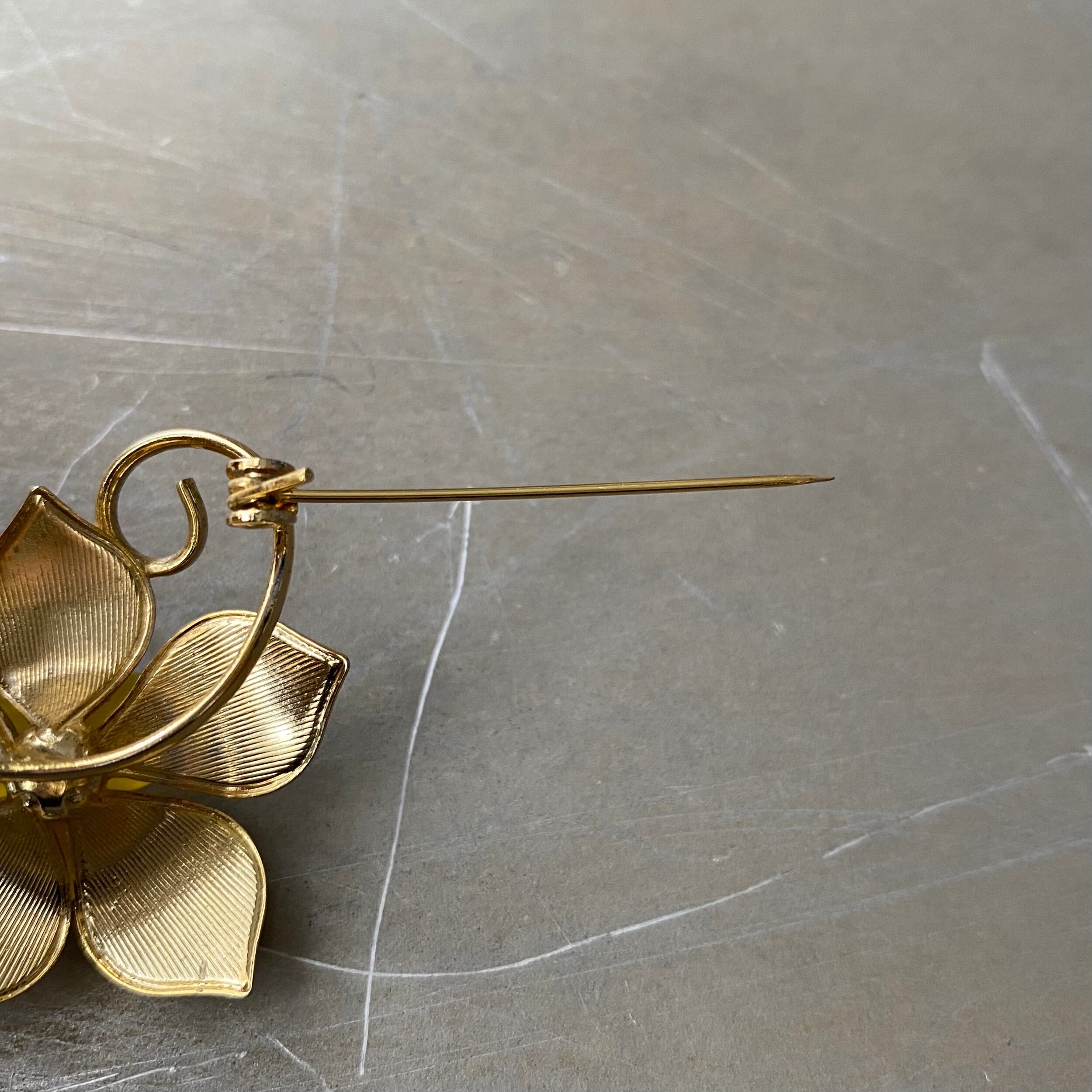 Vintage 80s-90s retro yellow stone enamel flower brooch レトロ ヴィンテージ アクセサリー イエロー ストーン エナメル フラワー ブローチ