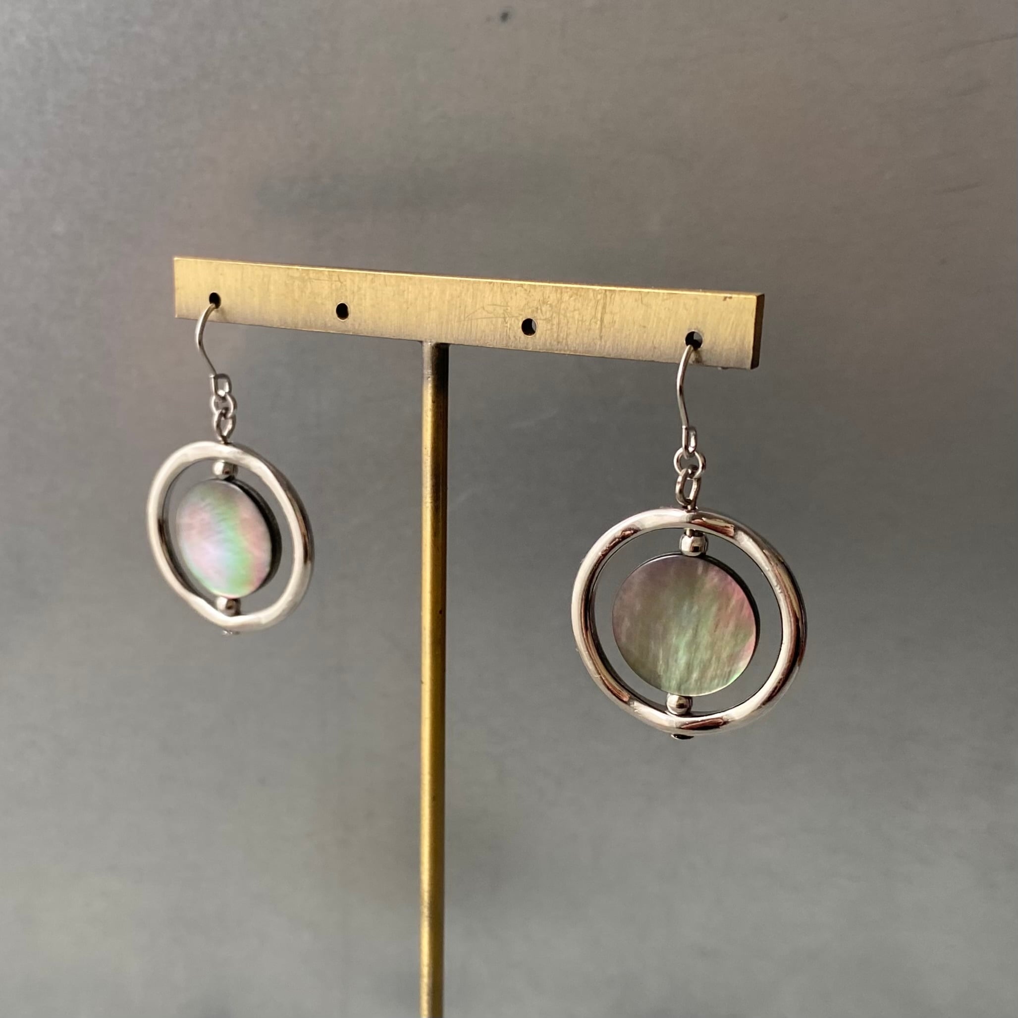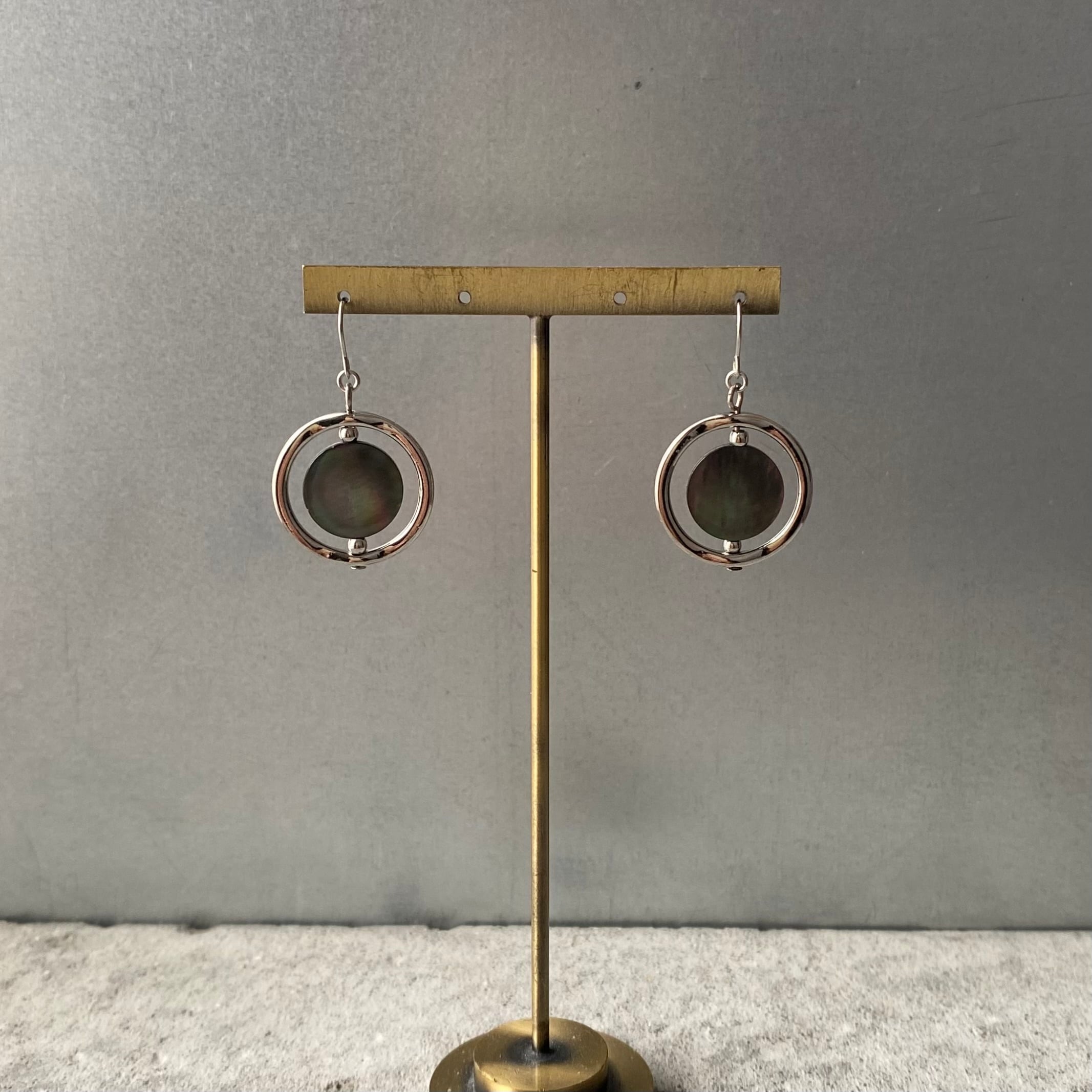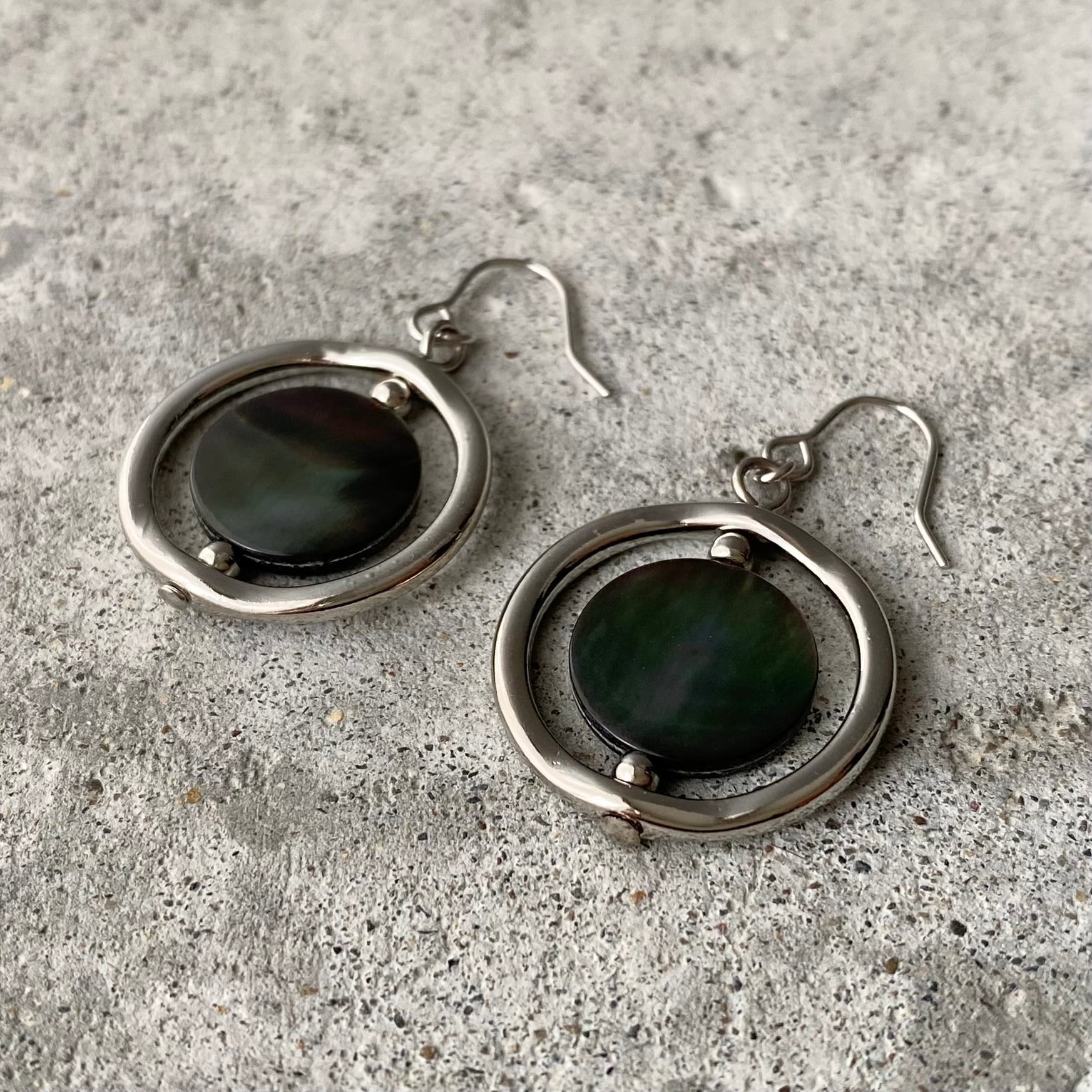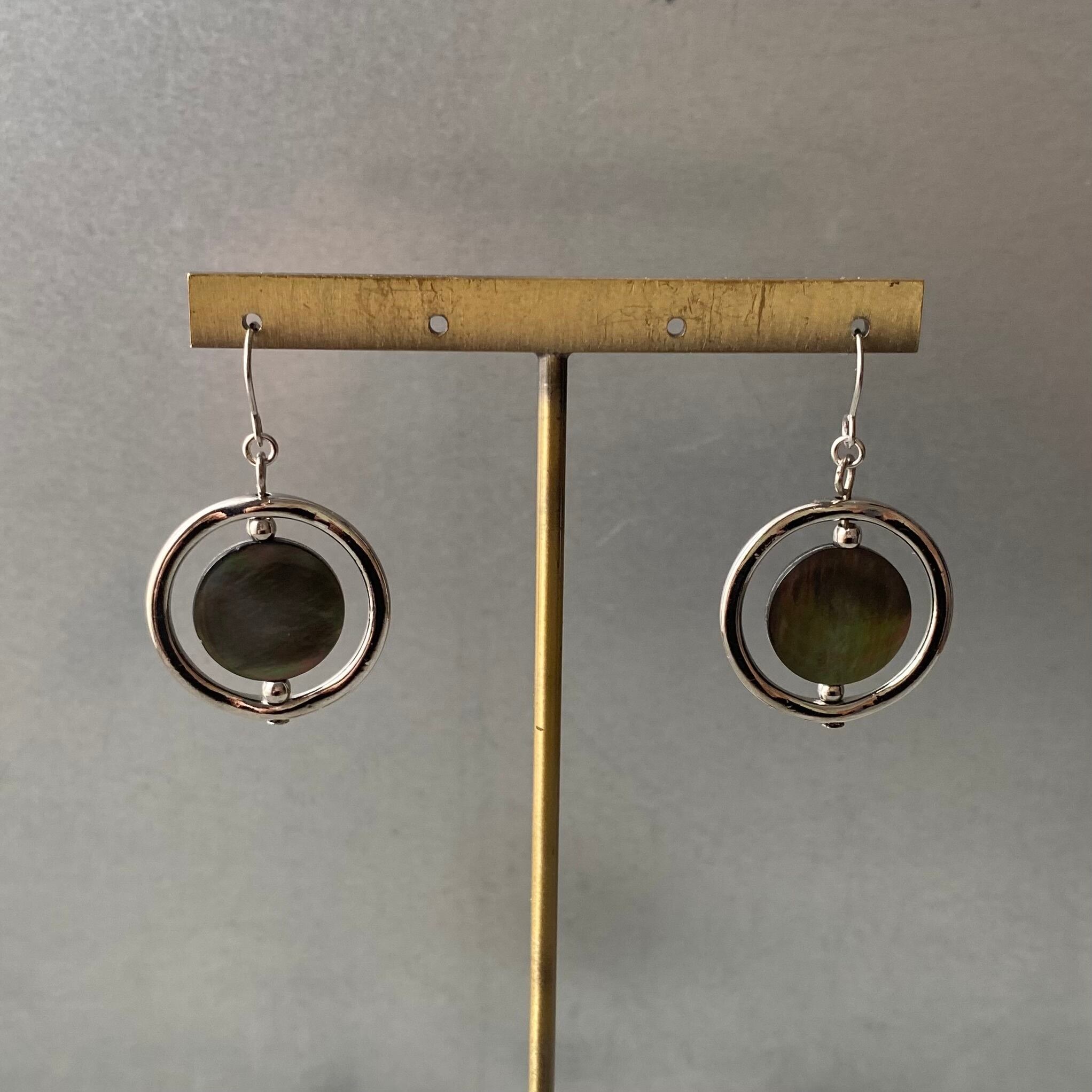 スタイリッシュな雰囲気のUSAヴィンテージピアス。揺れるたびに虹色に輝く美しいシェルが魅力的。身につけやすいサイズ感でスタイリングにお洒落な雰囲気をプラスしてくれます。