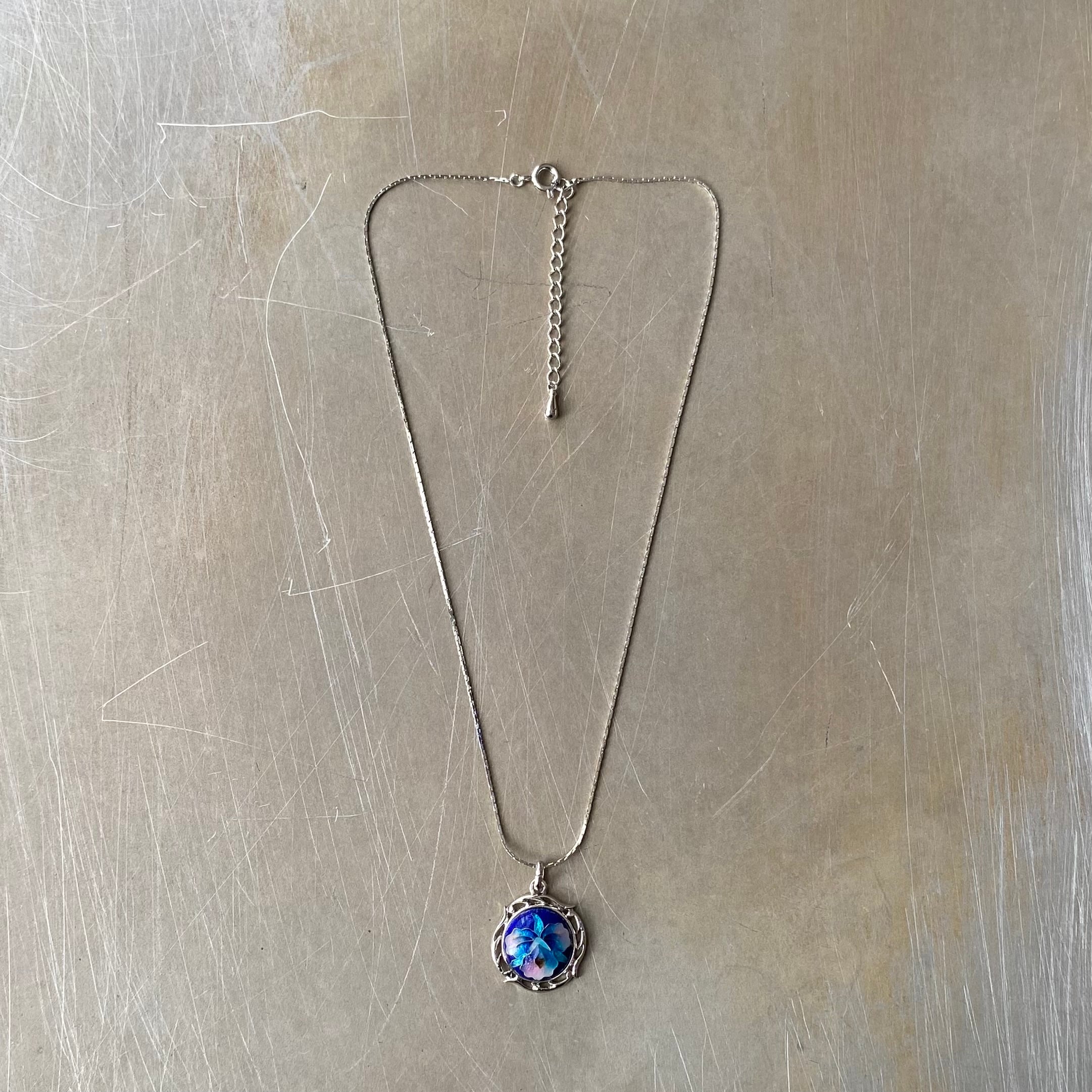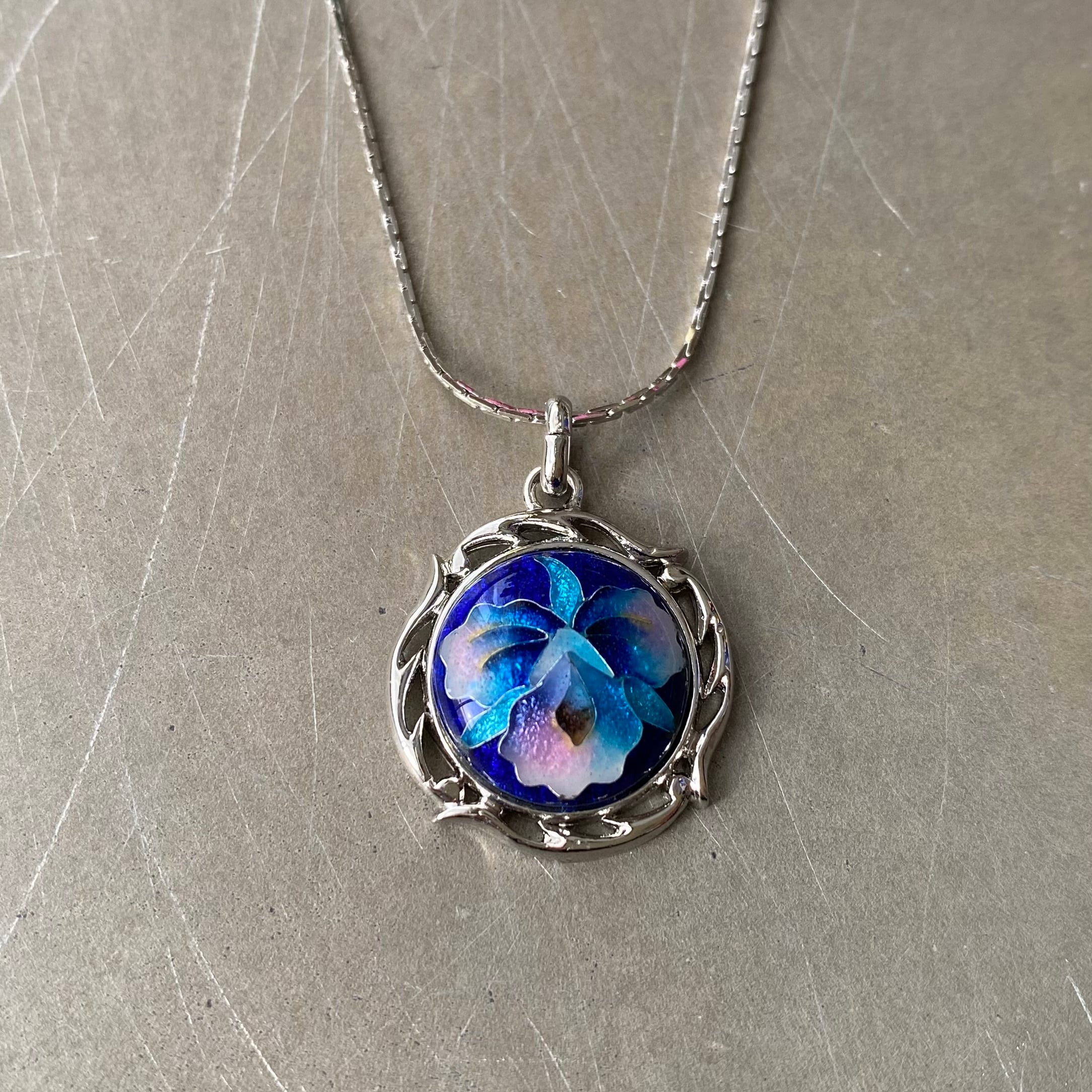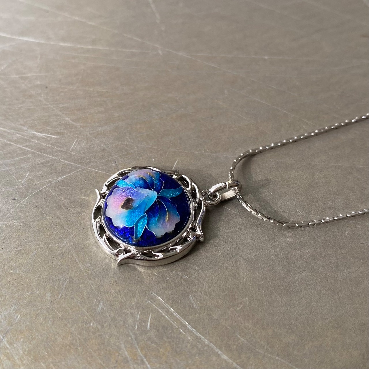 Vintage retro botanical flower blue enamel necklace レトロ ヴィンテージ アクセサリー ボタニカル フラワー ブルー エナメル ネックレス
