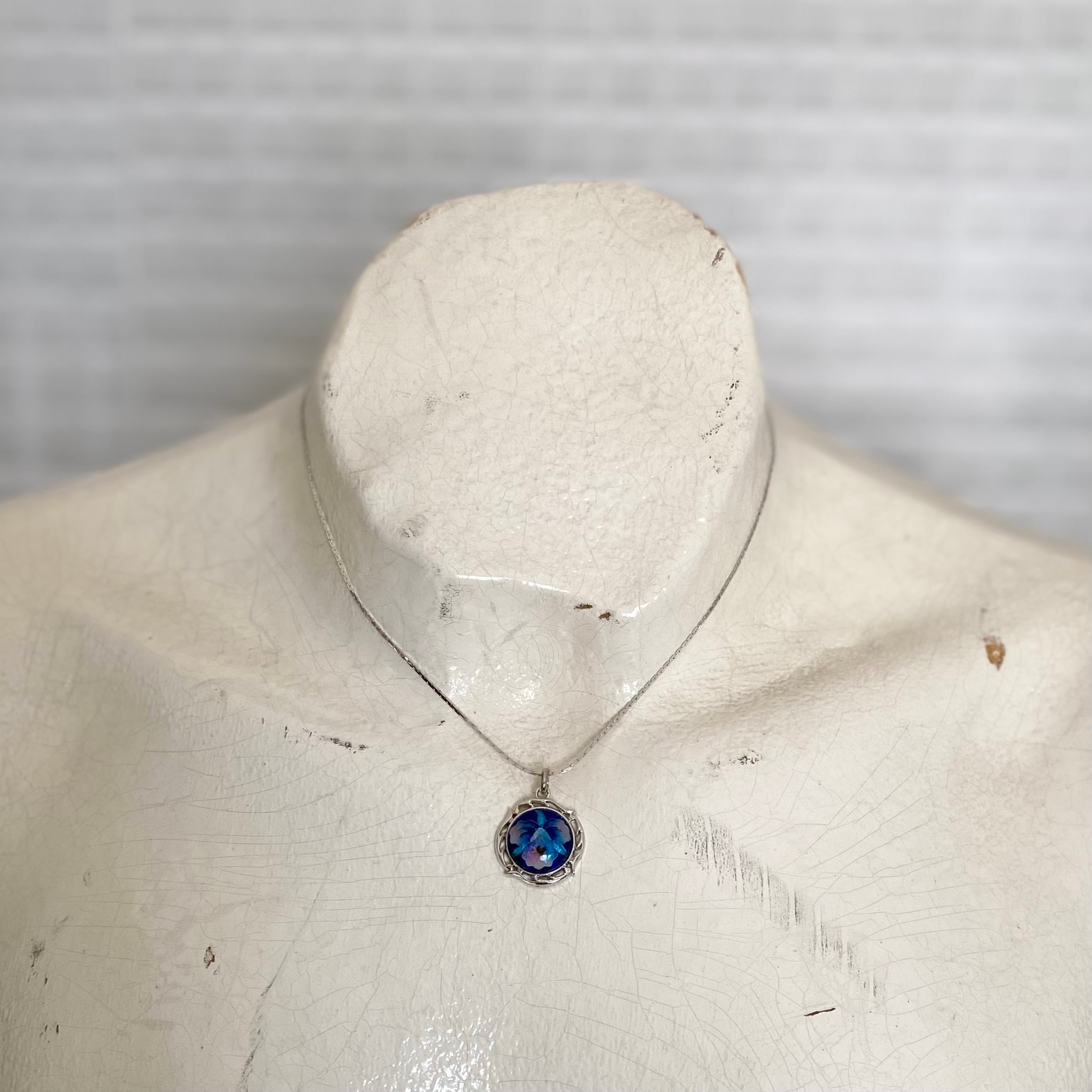 美しいブルーのエナメルで表現されたフラワーモチーフのヴィンテージネックレス。身につけやすいサイズ感でスタイリングの差し色におすすめです。