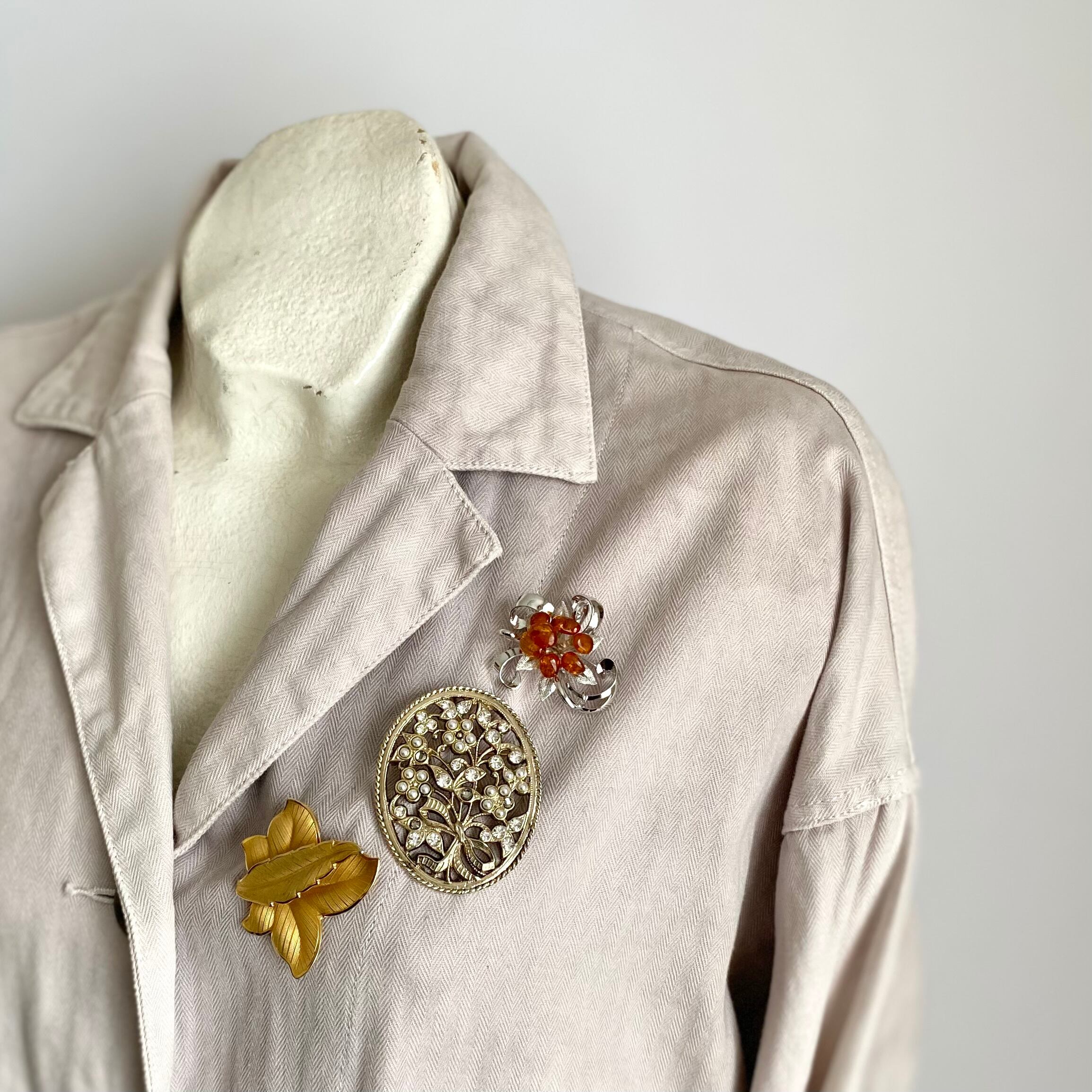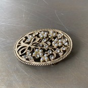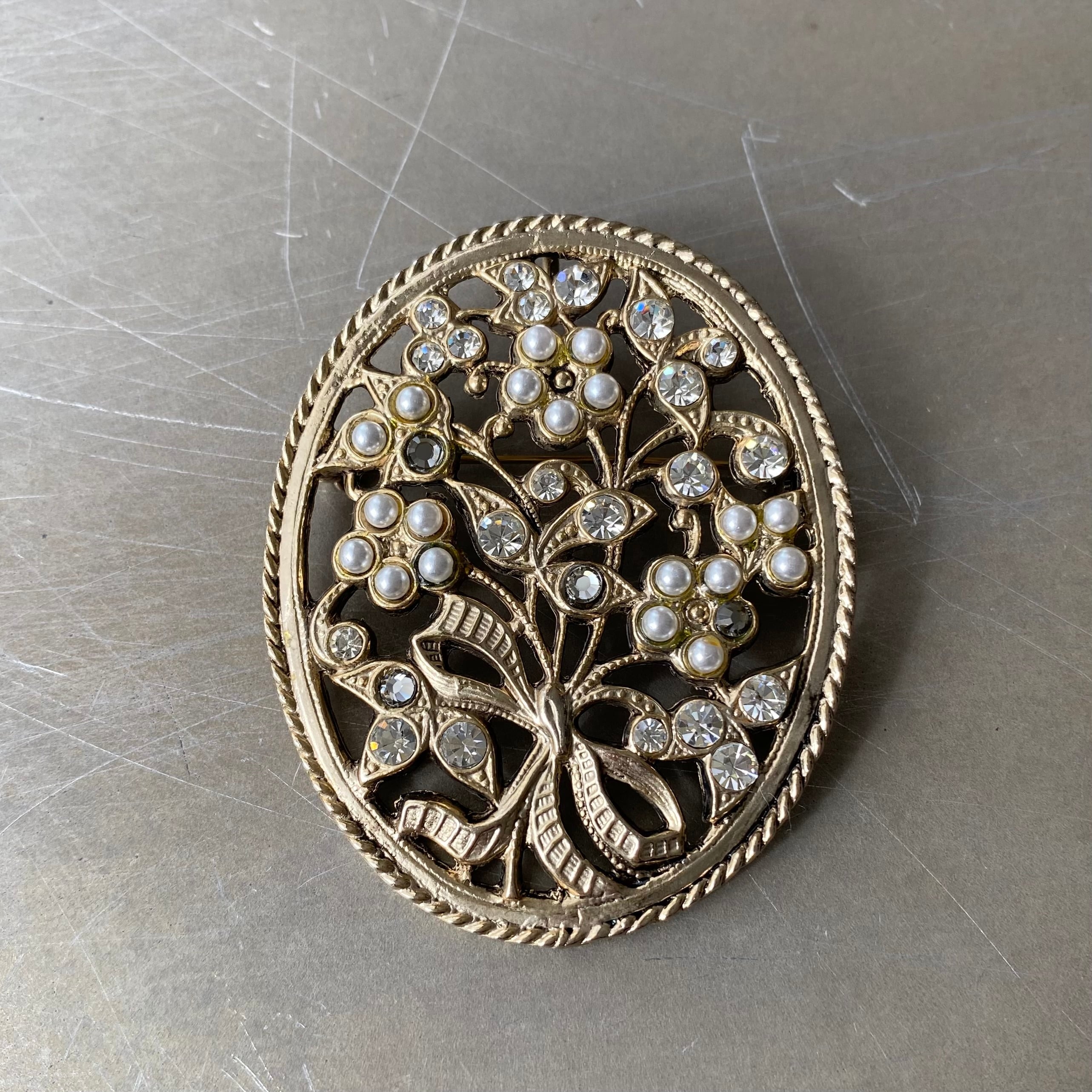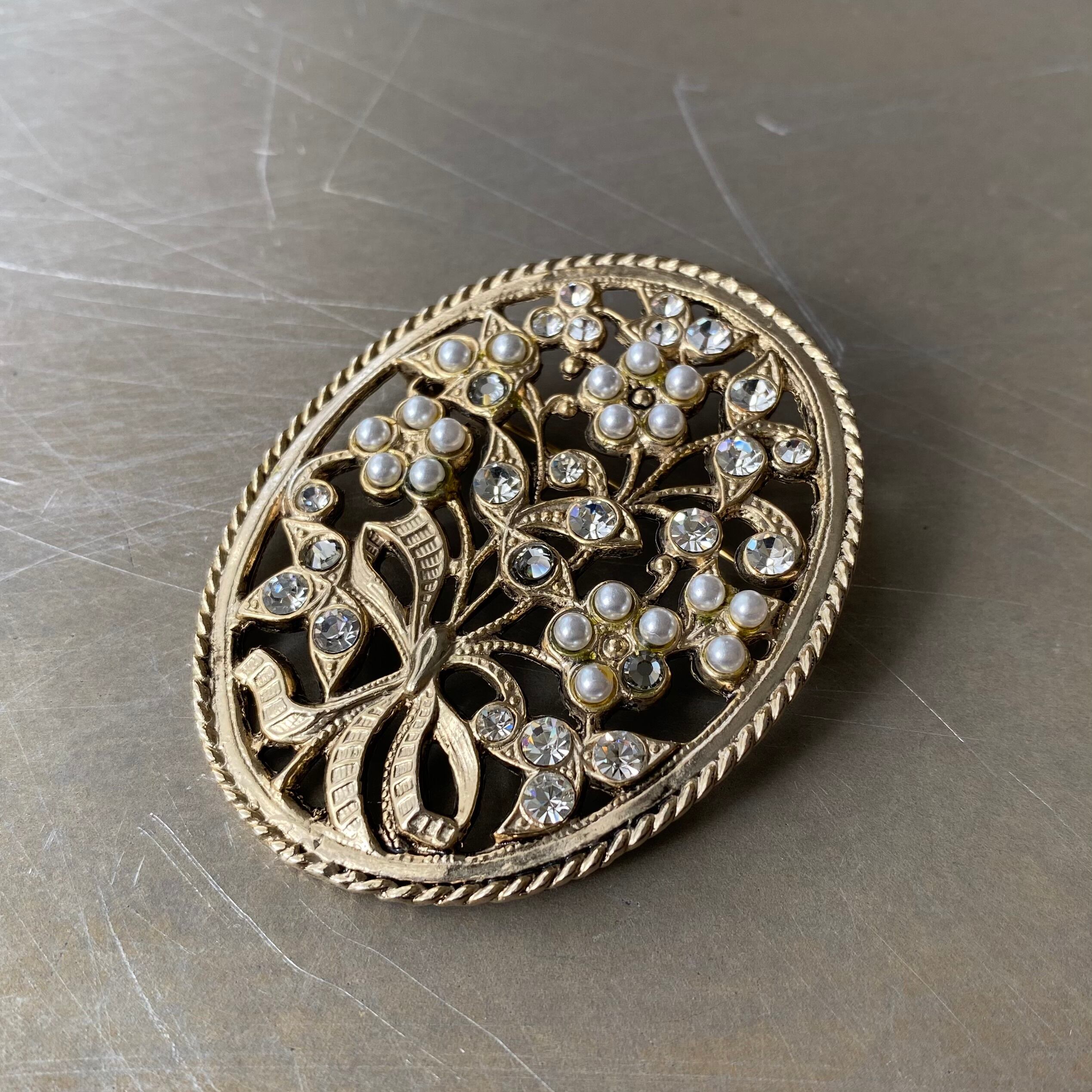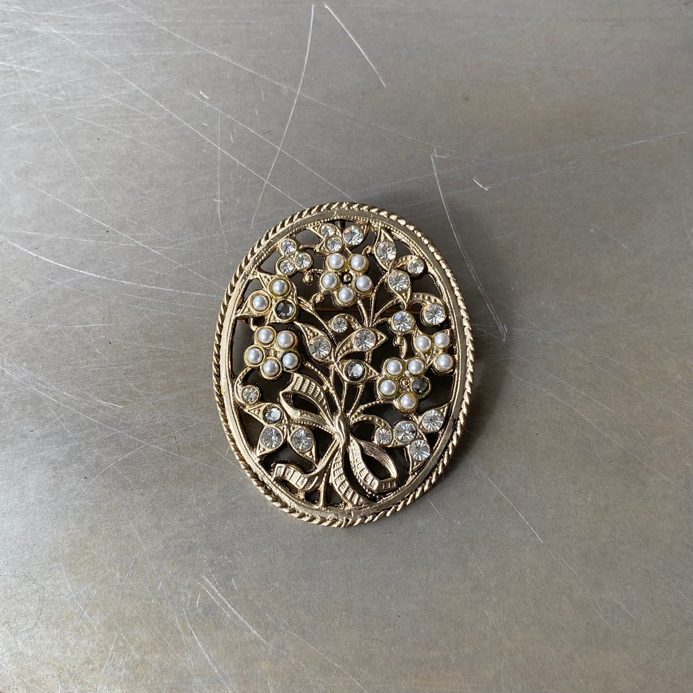 Vintage retro botanical flower crystal bijou brooch レトロ ヴィンテージ アクセサリー ボタニカル フラワー クリスタル ビジュー ブローチ