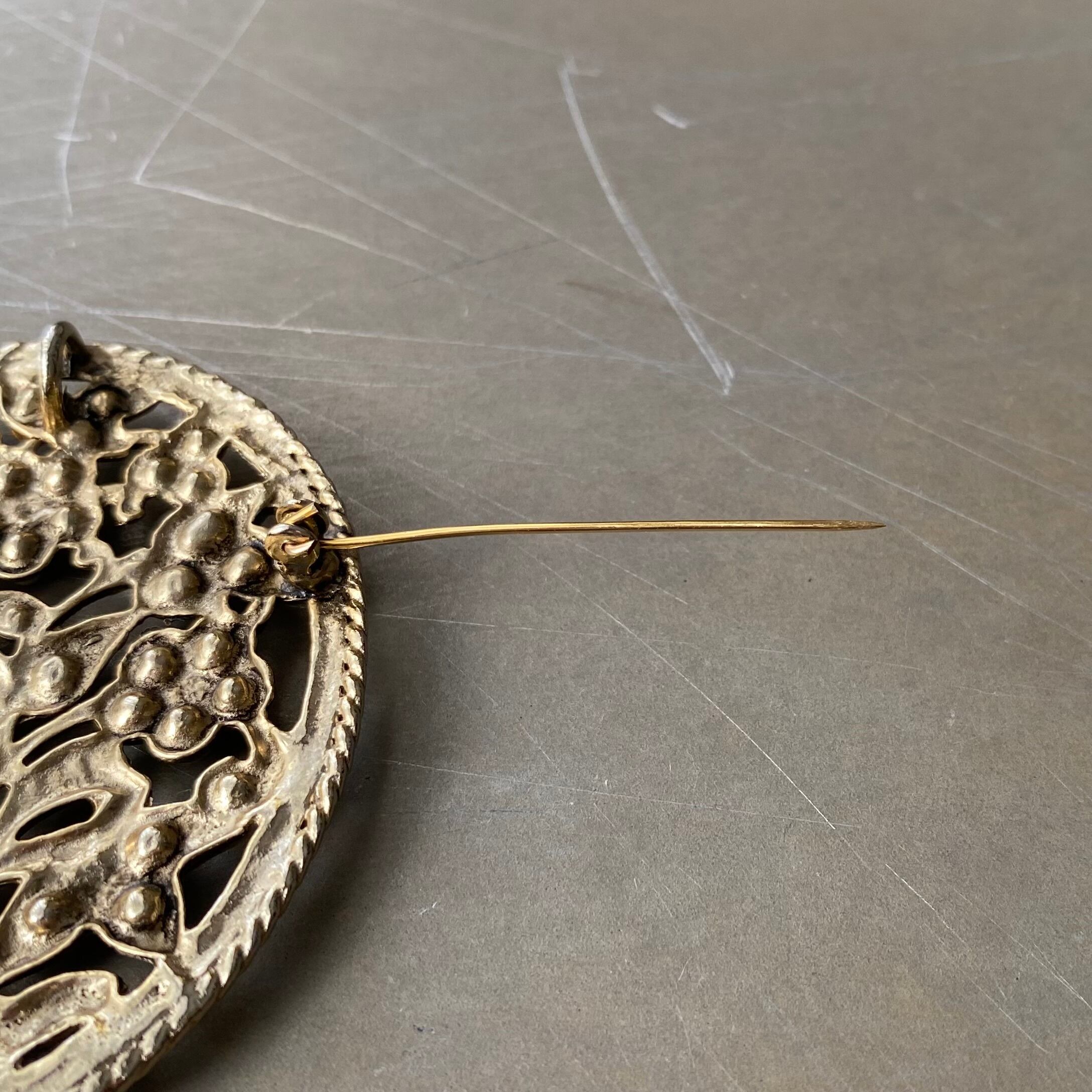 パールやビジューで表現されたボタニカルデザインが魅力的なヴィンテージブローチ。裏側にはカンが付いており、チェーンを通すとネックレスとしてもお使いいただけます。大ぶりで存在感がありスタイリングに華やかな雰囲気をプラスしてくれます。