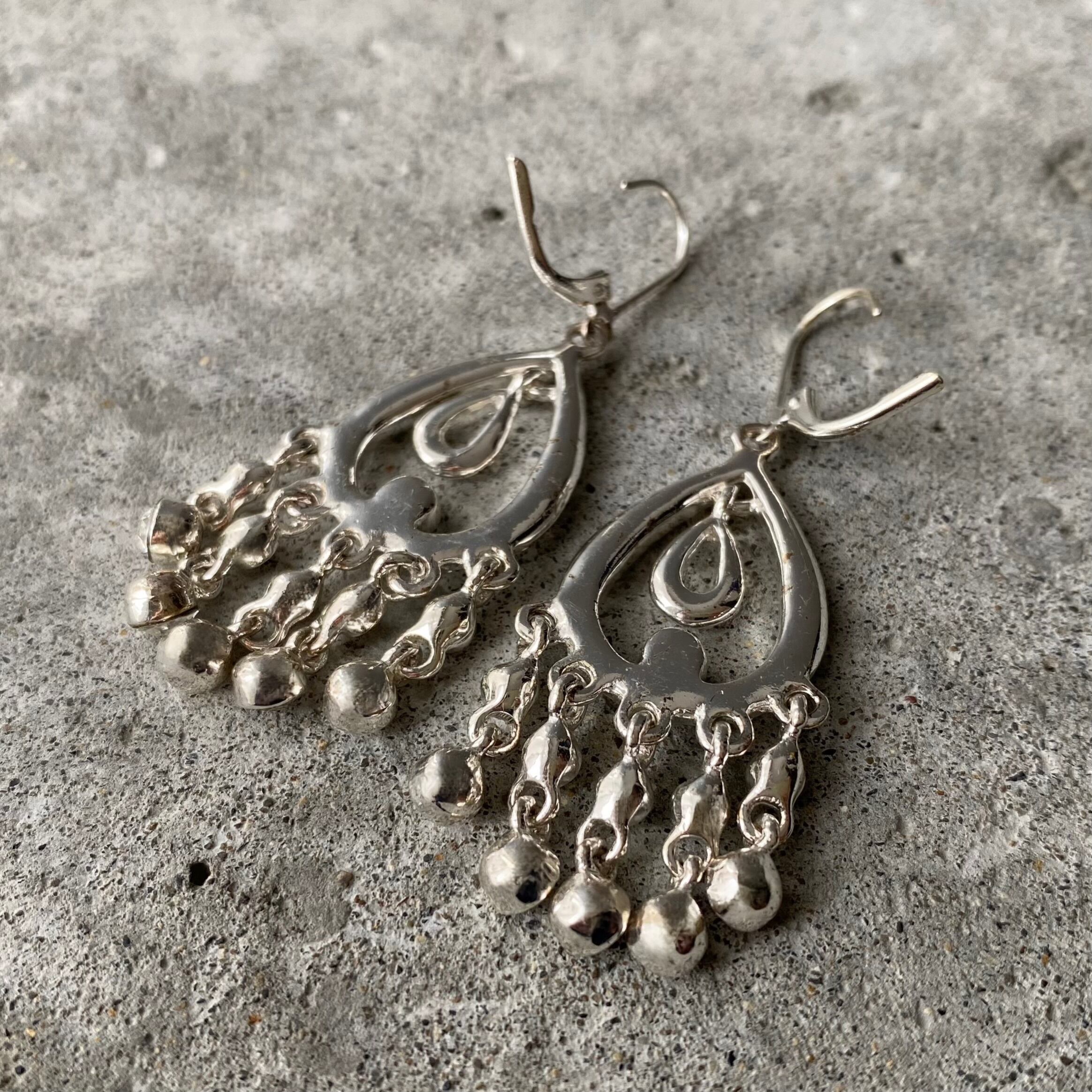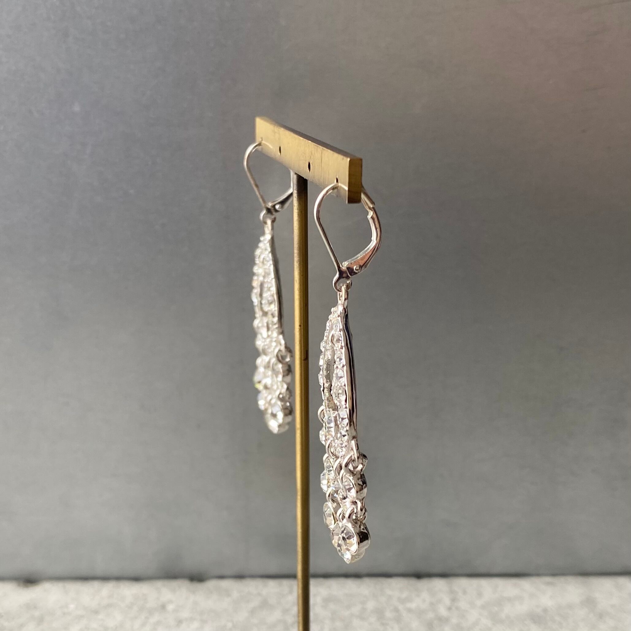 Vintage 90s-00s USA retro silver tone crystal bijou tassel pierce レトロ アメリカ ヴィンテージ アクセサリー シルバー クリスタル ビジュー タッセル ピアス/イヤリング