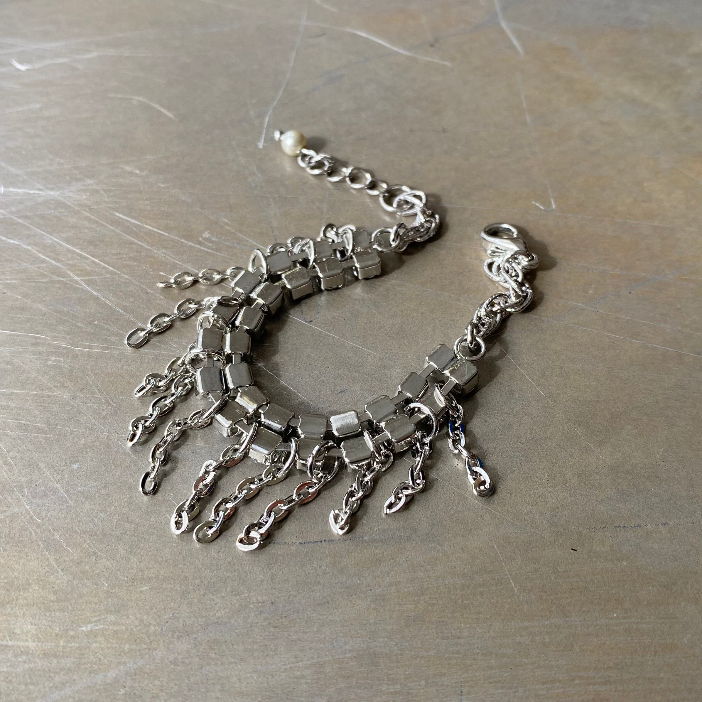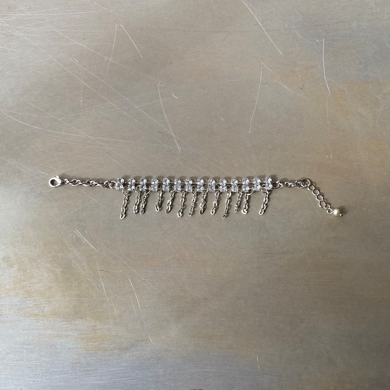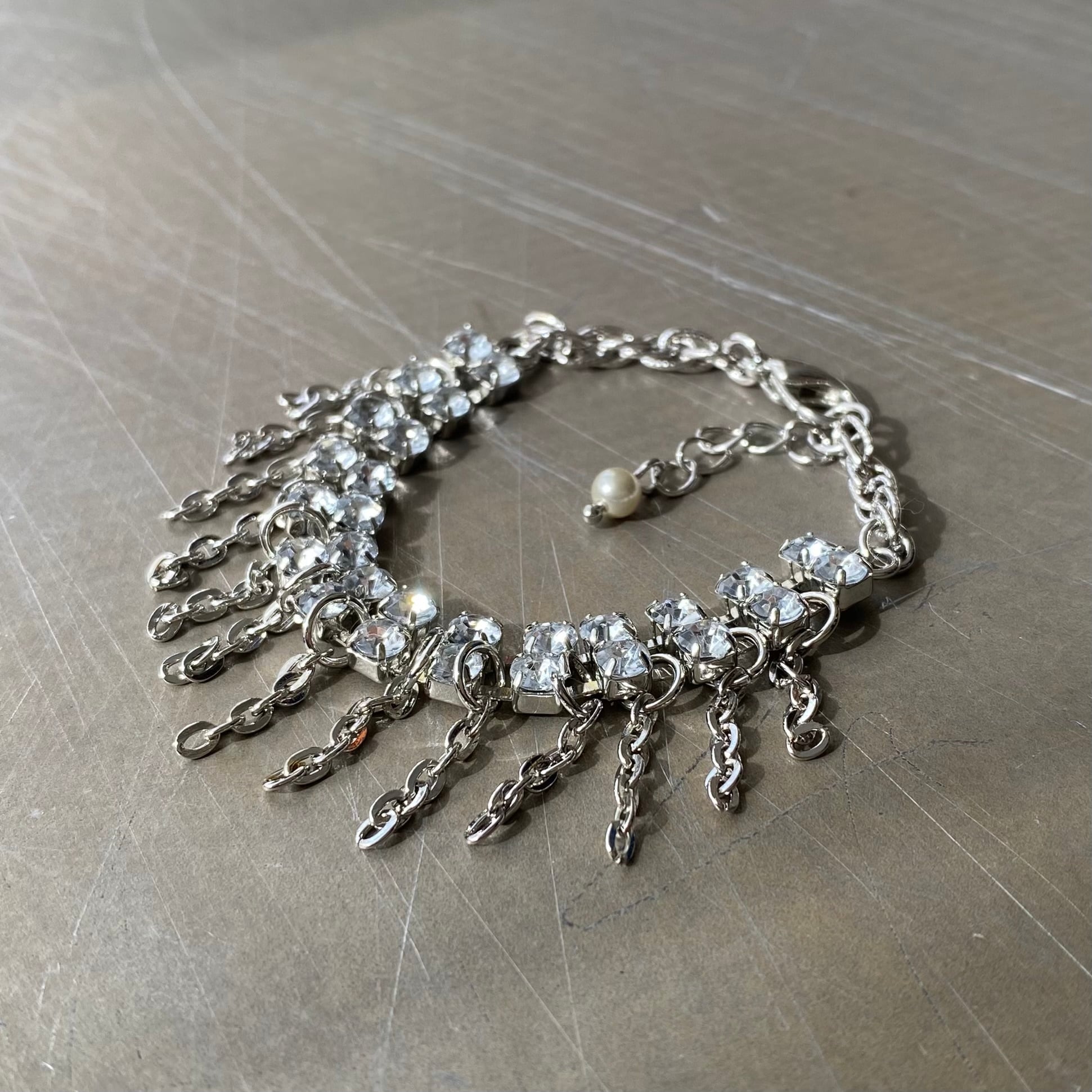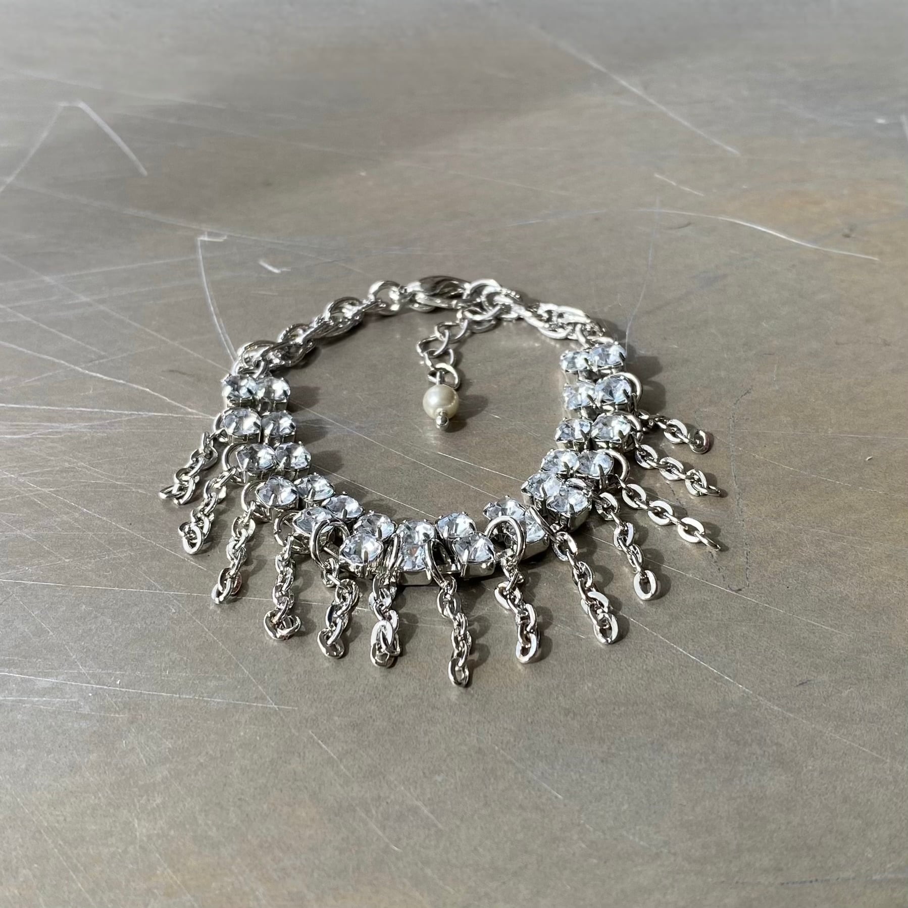 Vintage 90s retro crystal bijou chain tassel bracelet レトロ ヴィンテージ アクセサリー シルバー クリスタル ビジュー チェーン タッセル ブレスレット