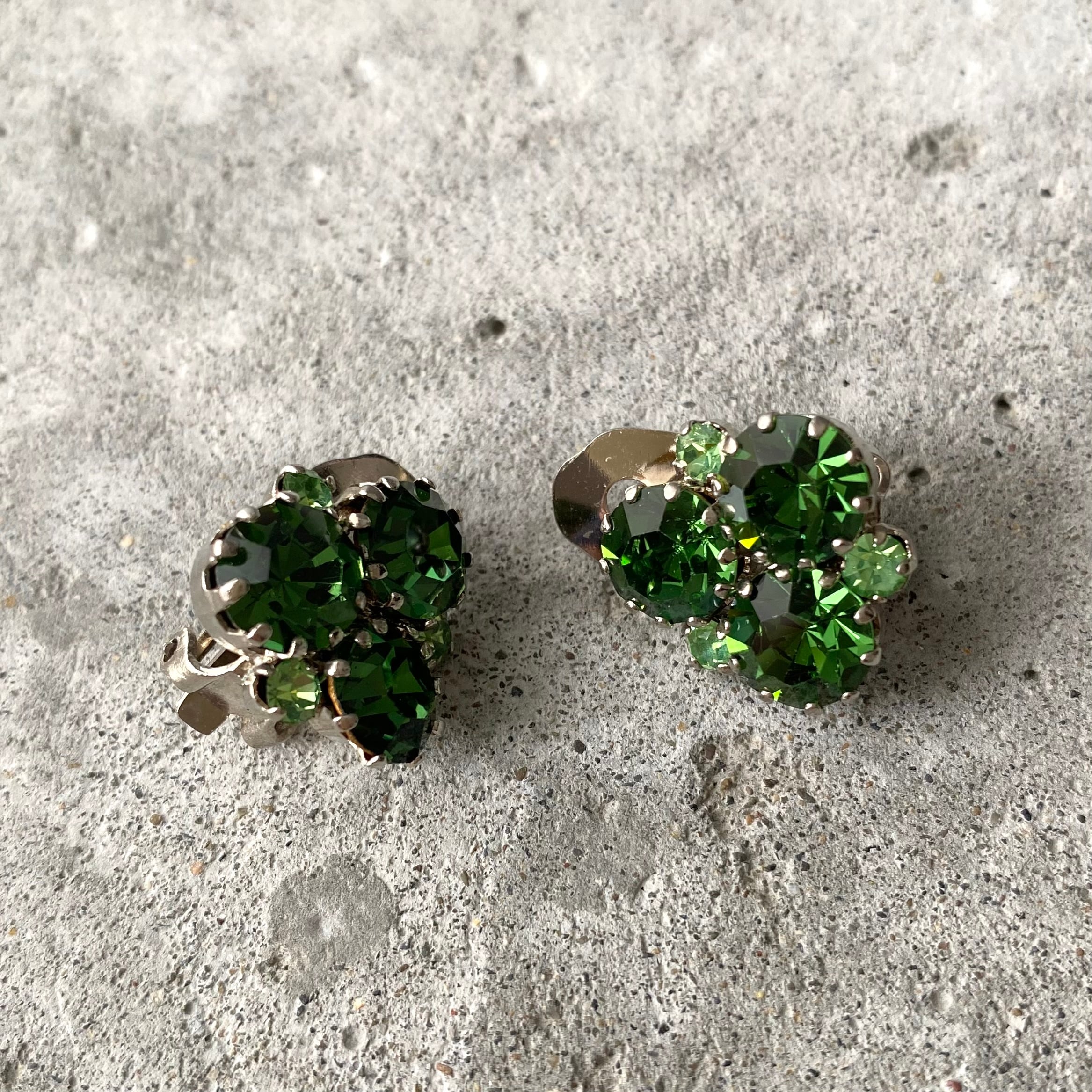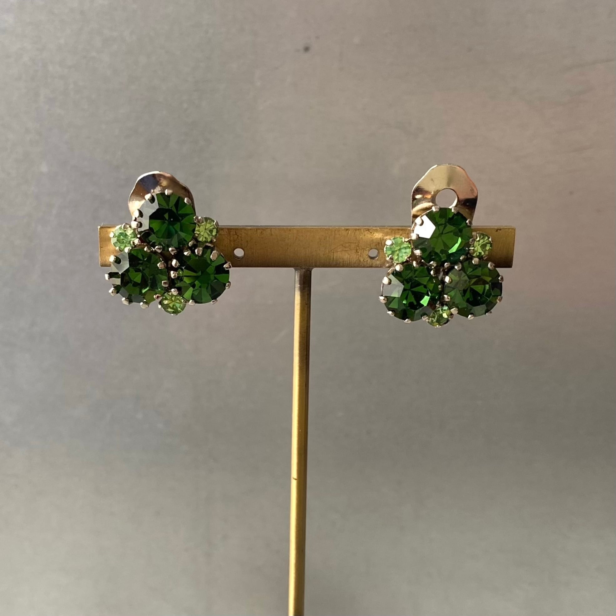 Vintage 60s retro green bijou earring レトロ ヴィンテージ アクセサリー グリーン ビジュー イヤリング