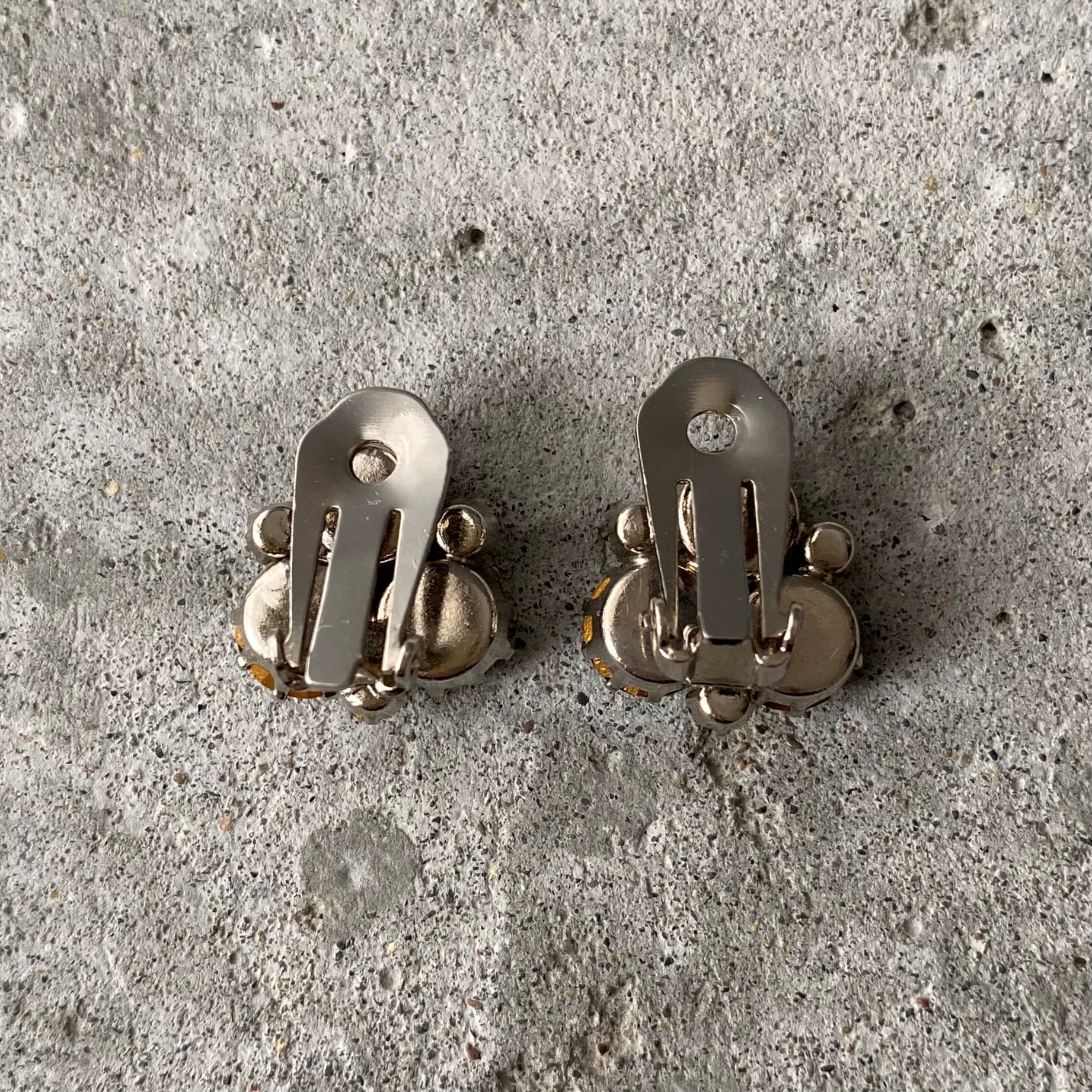 レトロなグリーンのビジューが魅力的なヴィンテージイヤリング。ヴィンテージならではの繊細な爪留めにより、ビジューがより一層美しく輝きます。身につけやすいサイズ感でお顔まわりを華やかに彩ってくれます。