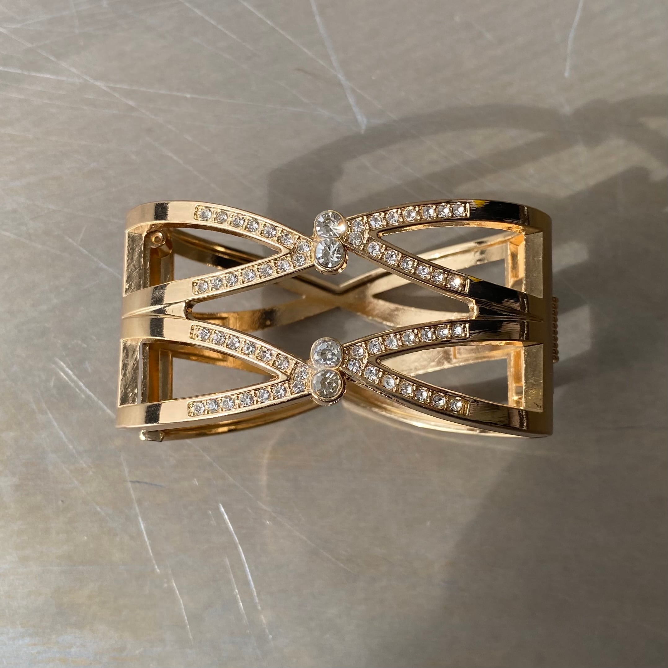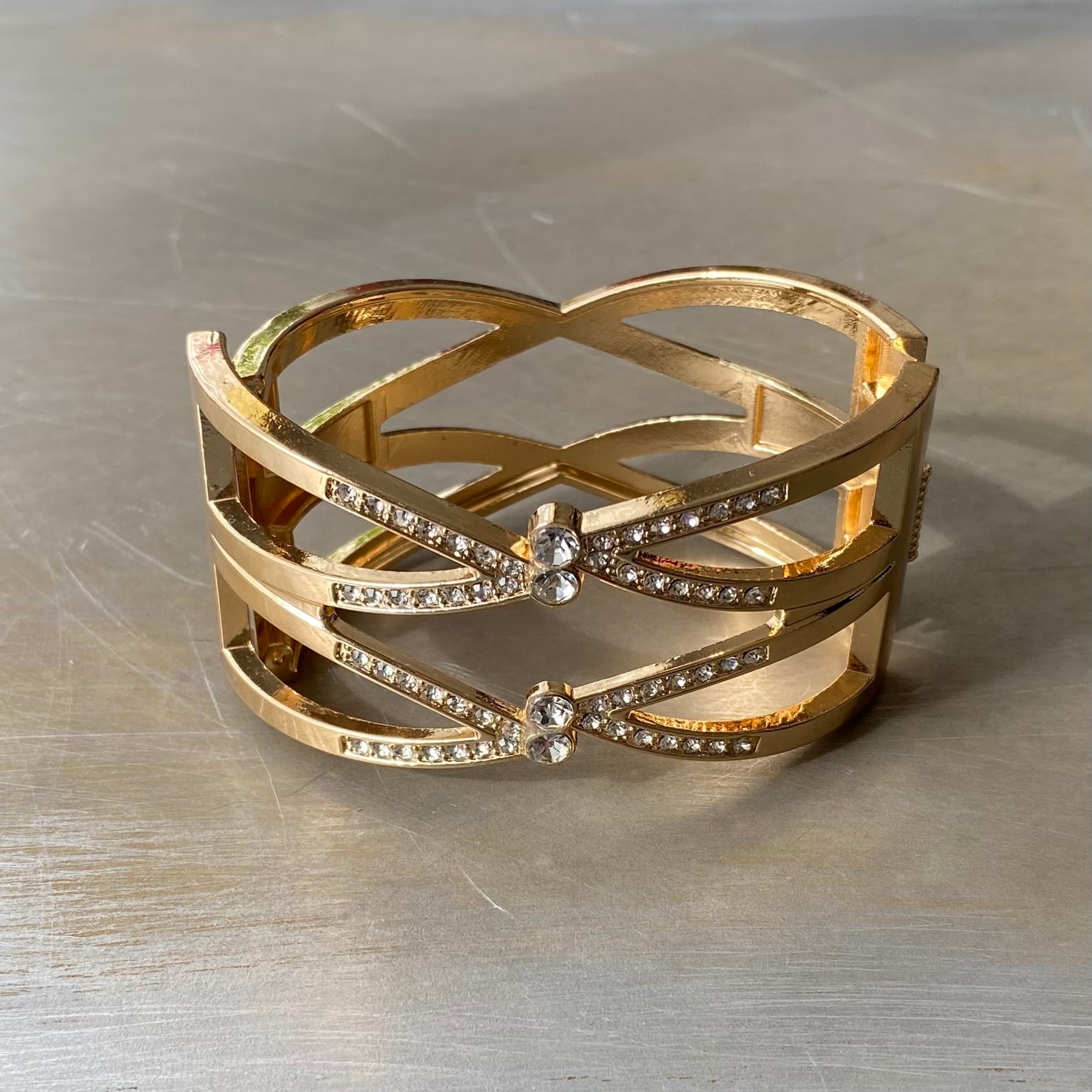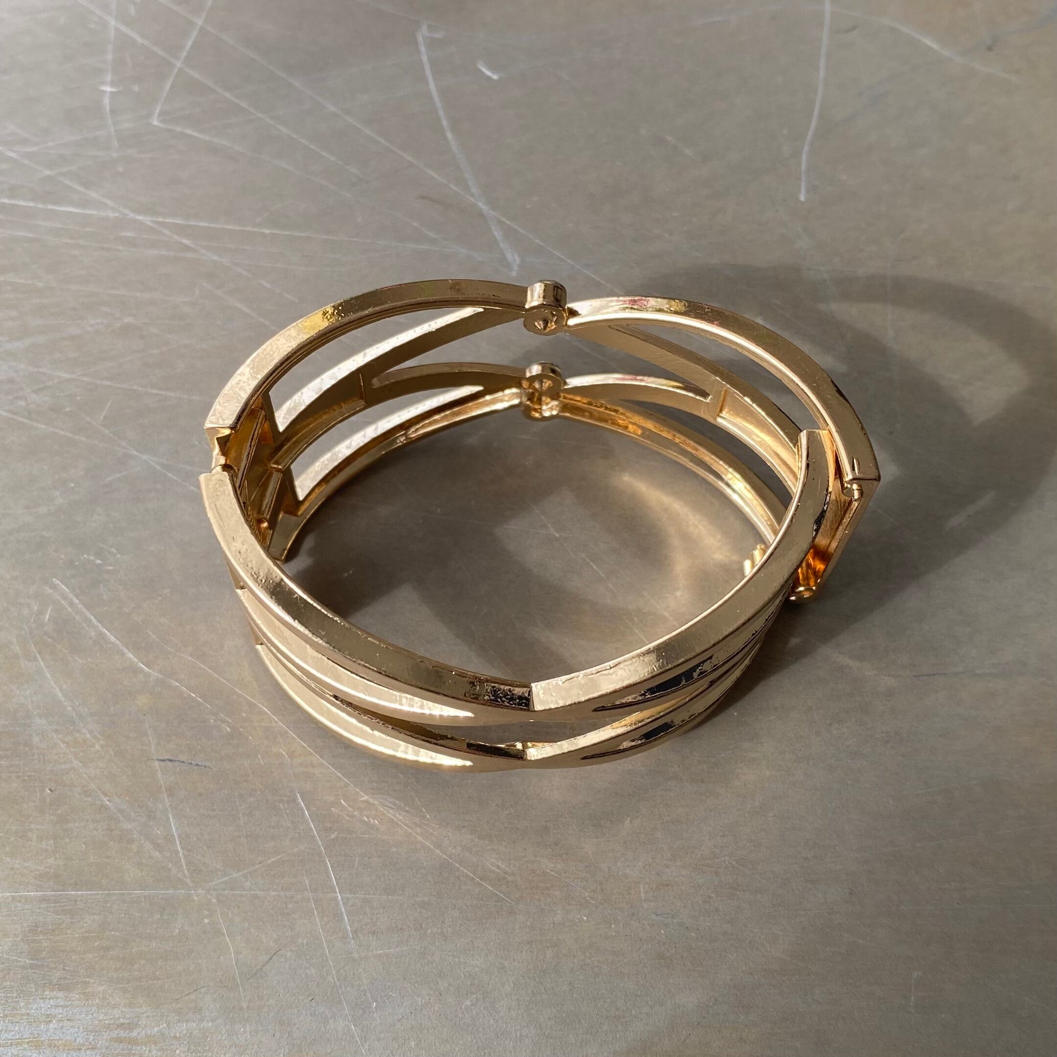 Used USA retro double cross crystal bijou bangle レトロ アメリカ ユーズド アクセサリー ゴールド ダブル クロス ビジュー バングル