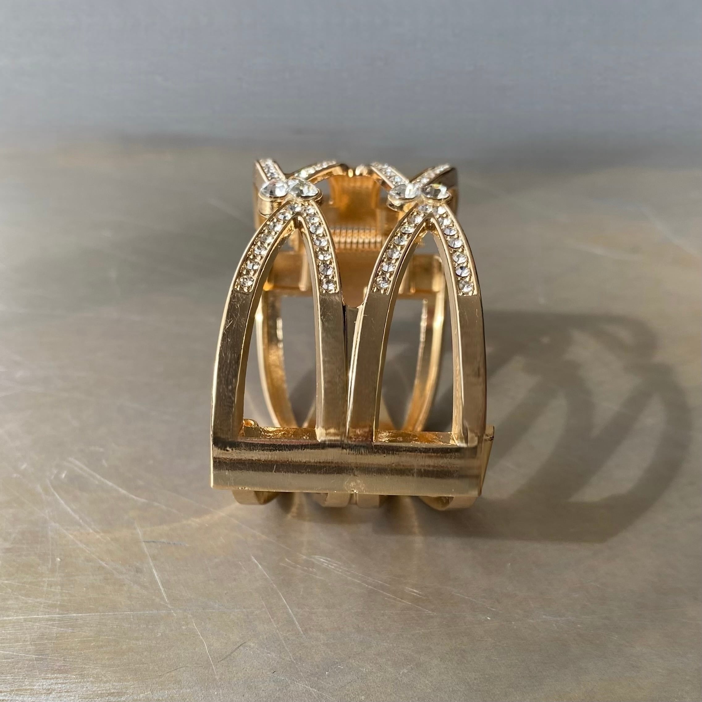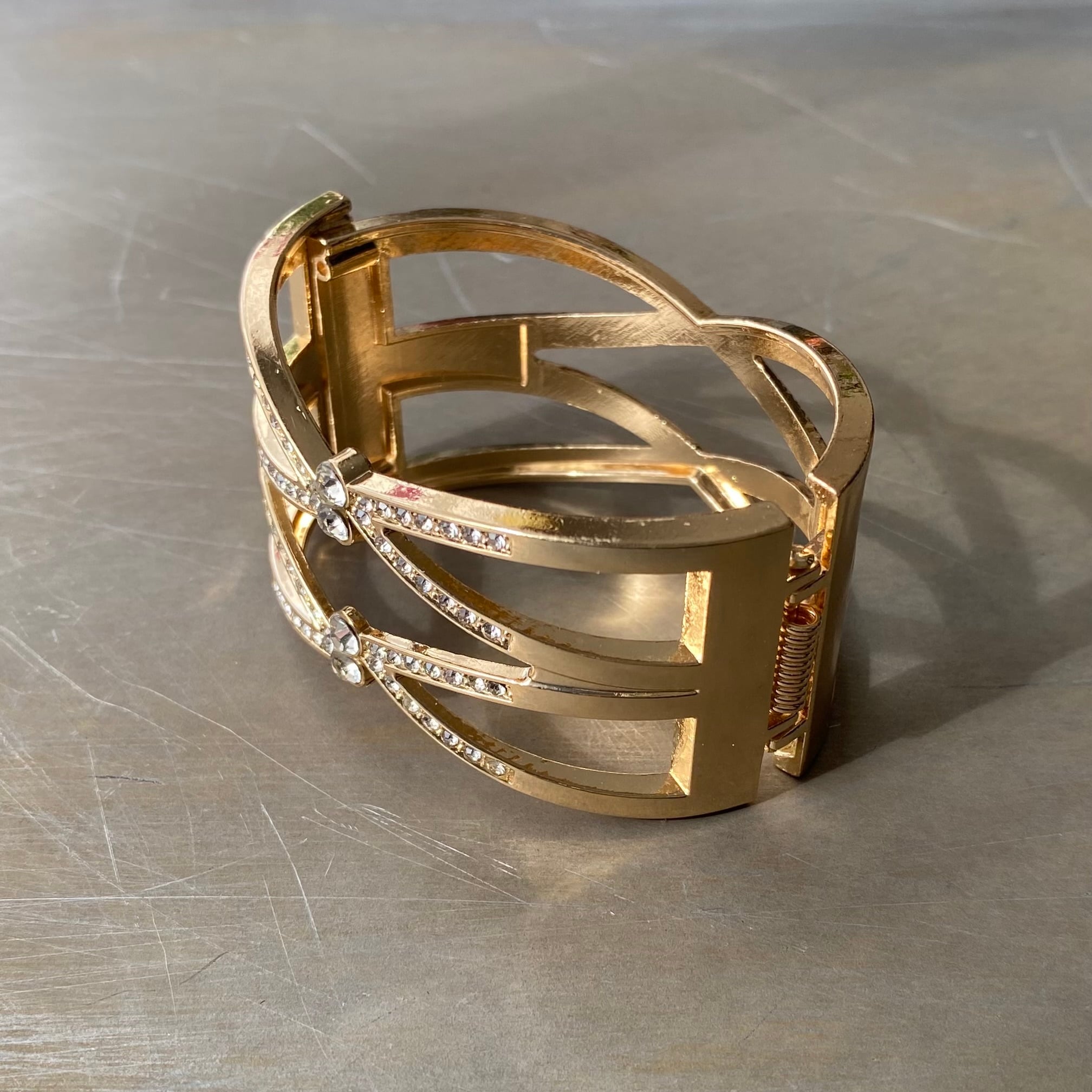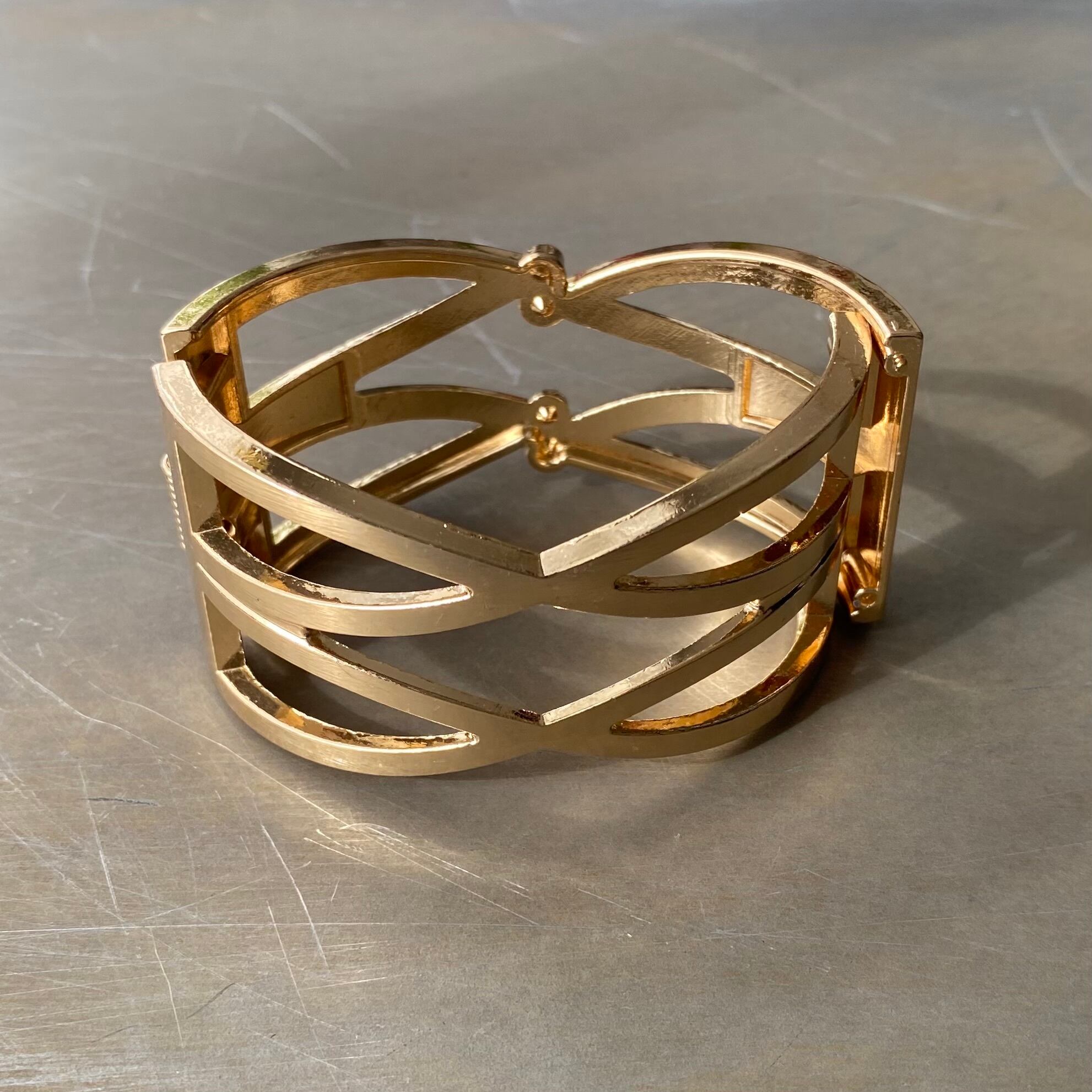 Used USA retro double cross crystal bijou bangle レトロ アメリカ ユーズド アクセサリー ゴールド ダブル クロス ビジュー バングル