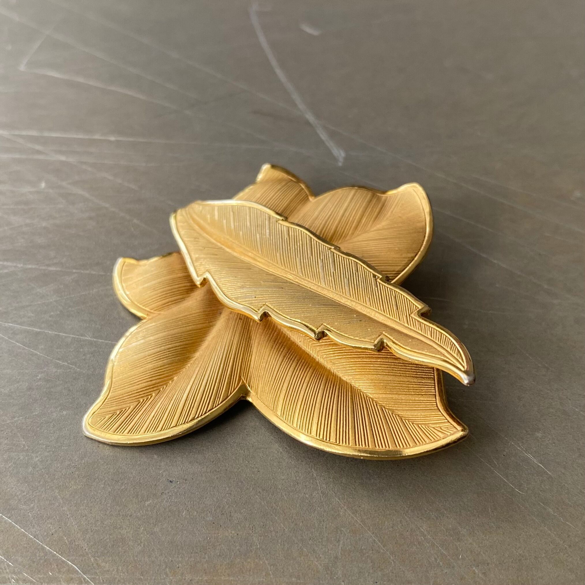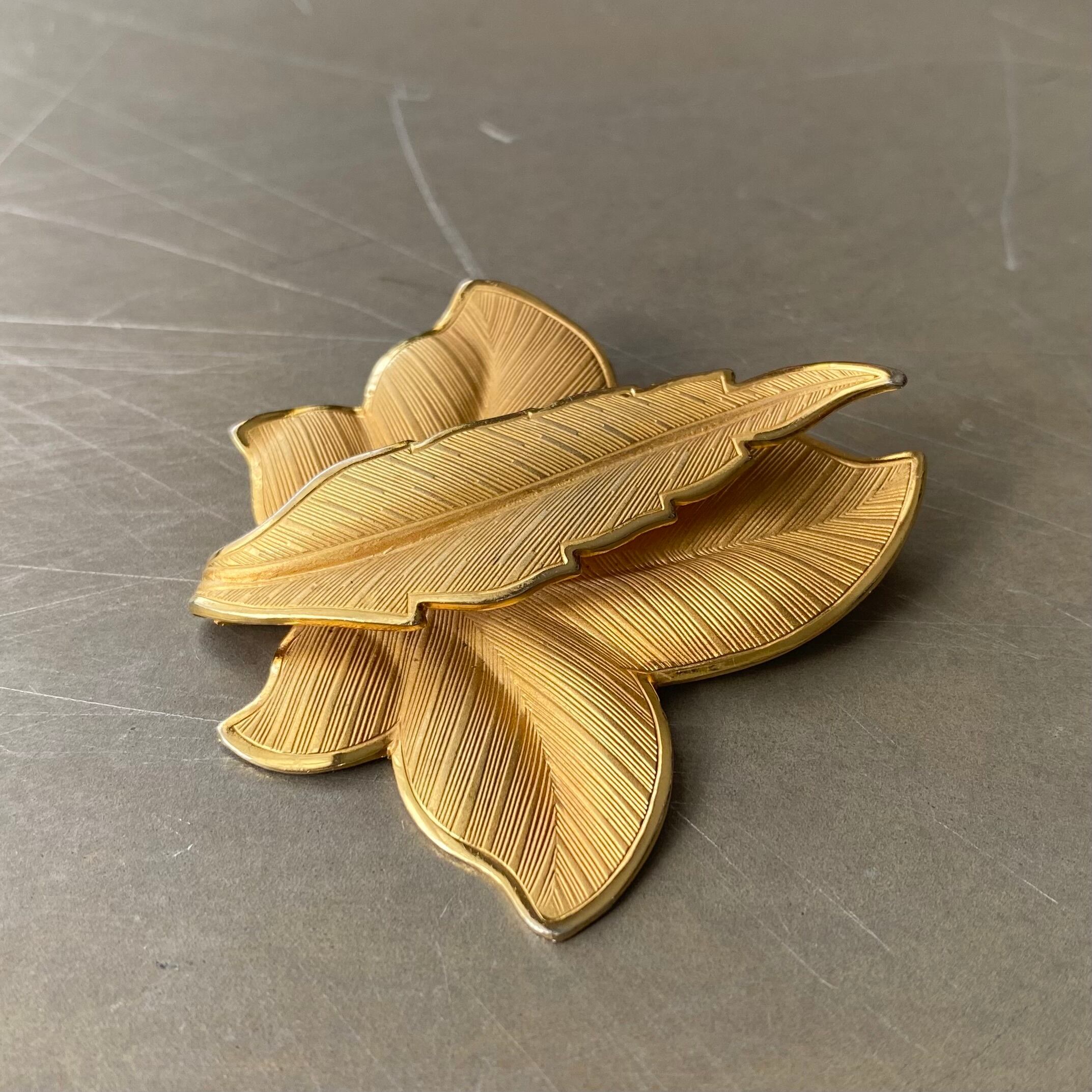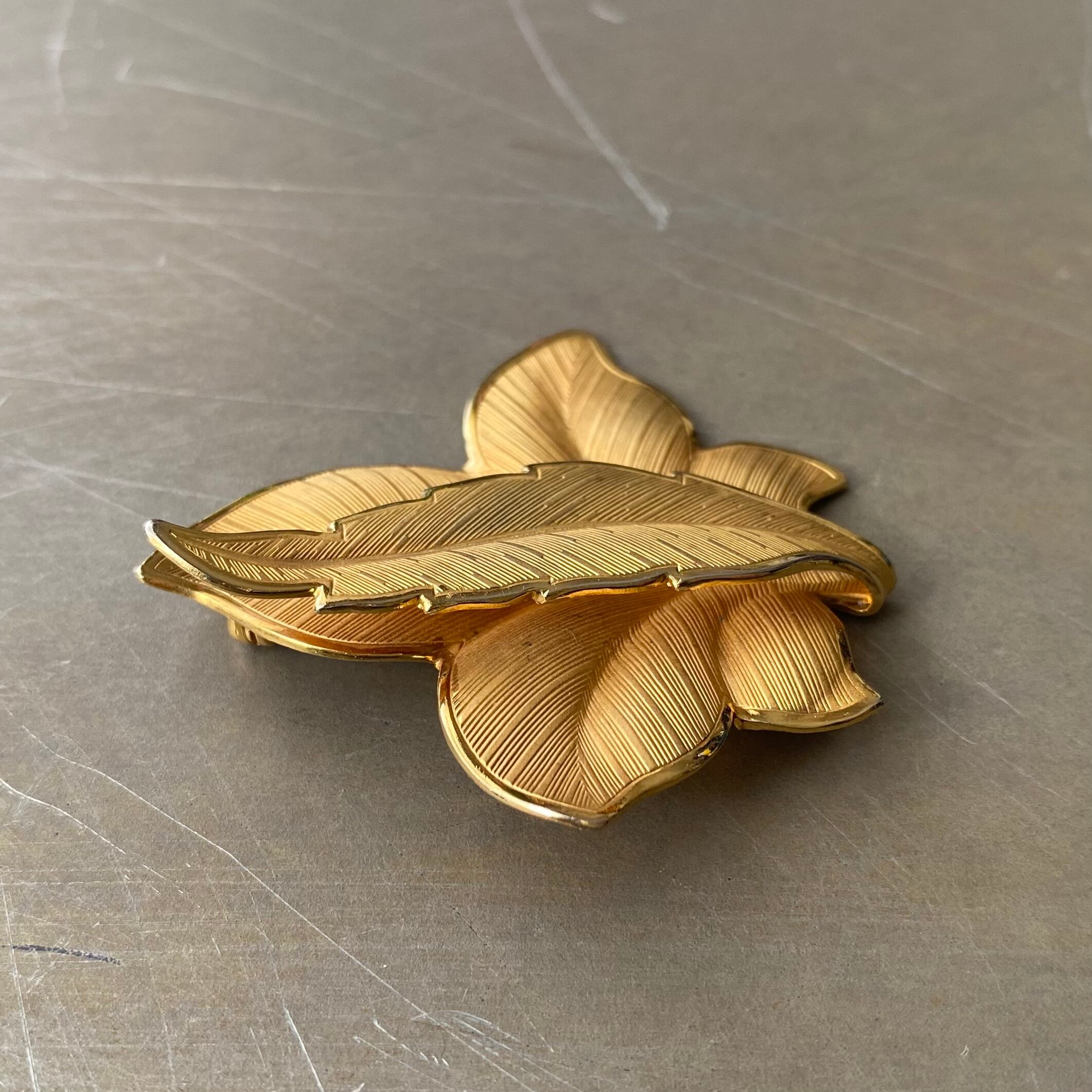 Vintage 80s USA retro gold tone botanical leaf brooch レトロ アメリカ ヴィンテージ アクセサリー ゴールド ボタニカル リーフ ブローチ