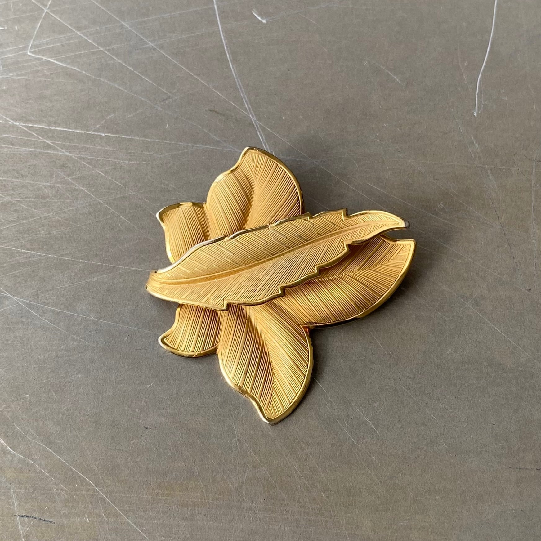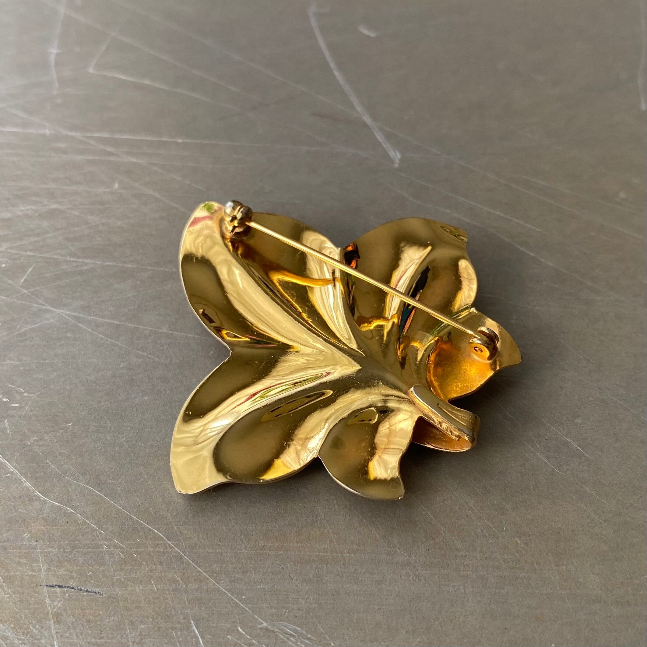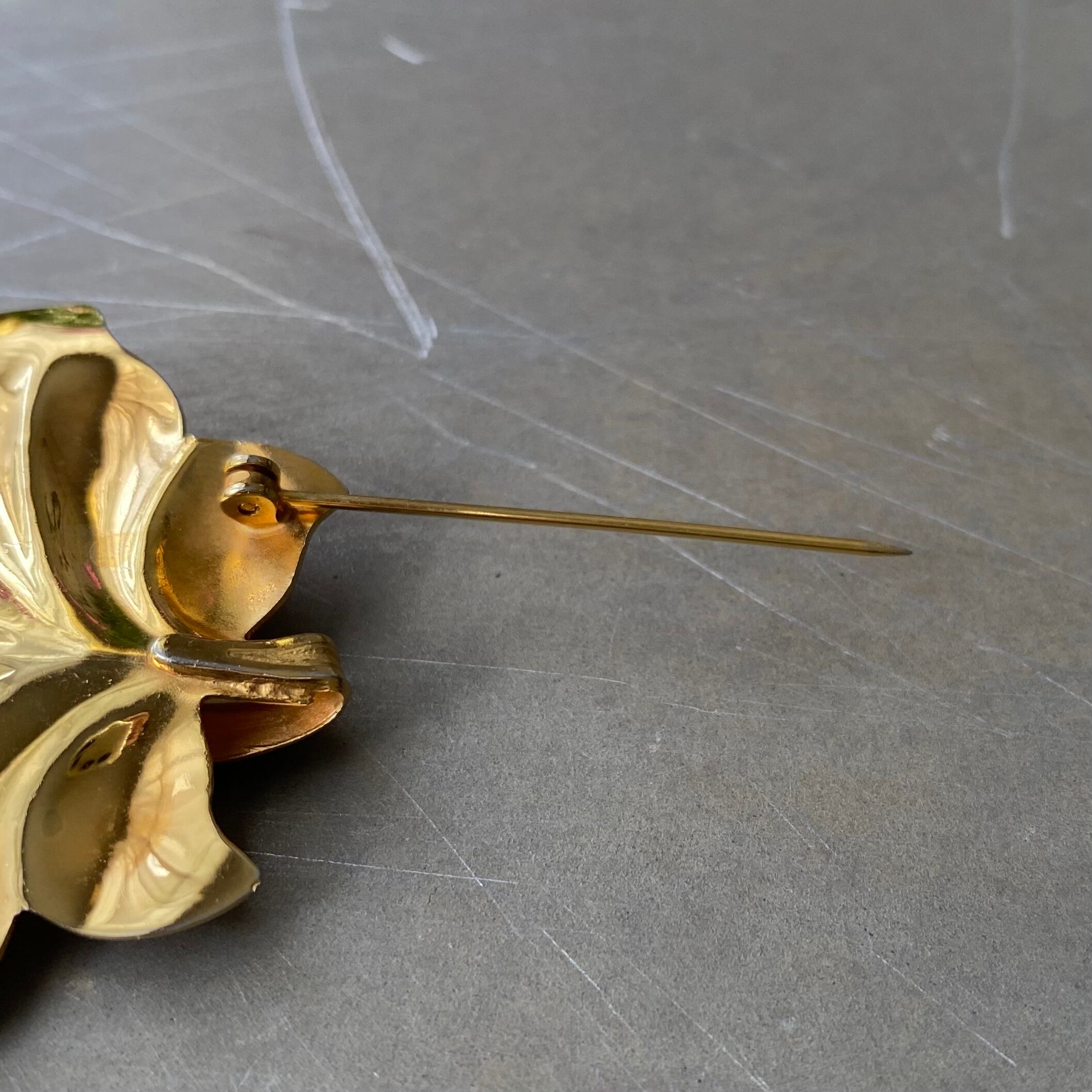 Vintage 80s USA retro gold tone botanical leaf brooch レトロ アメリカ ヴィンテージ アクセサリー ゴールド ボタニカル リーフ ブローチ