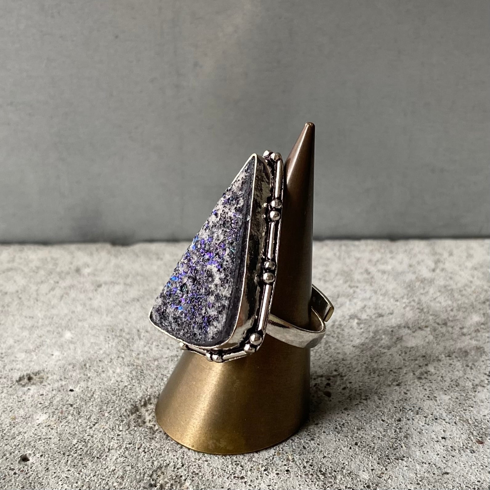 Retro natural stone titanium druzy hand made ring レトロ アクセサリー 天然石 チタニウム ドルジー ハンドメイド リング 指輪