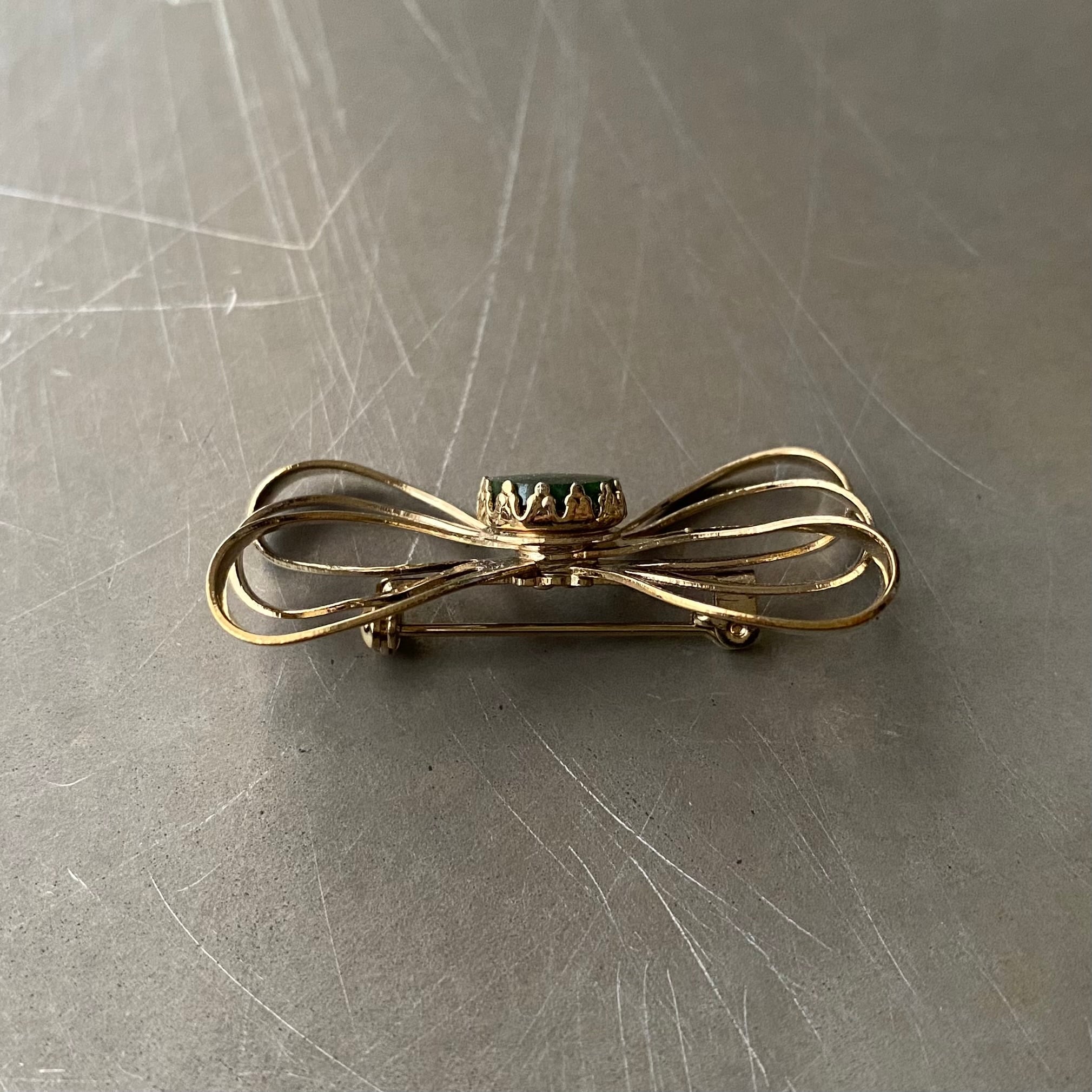 Vintage 80s-90s USA retro green jade ribbon brooch レトロ アメリカ ヴィンテージ アクセサリー 天然石 グリーンジェイド ゴールド リボン ブローチ