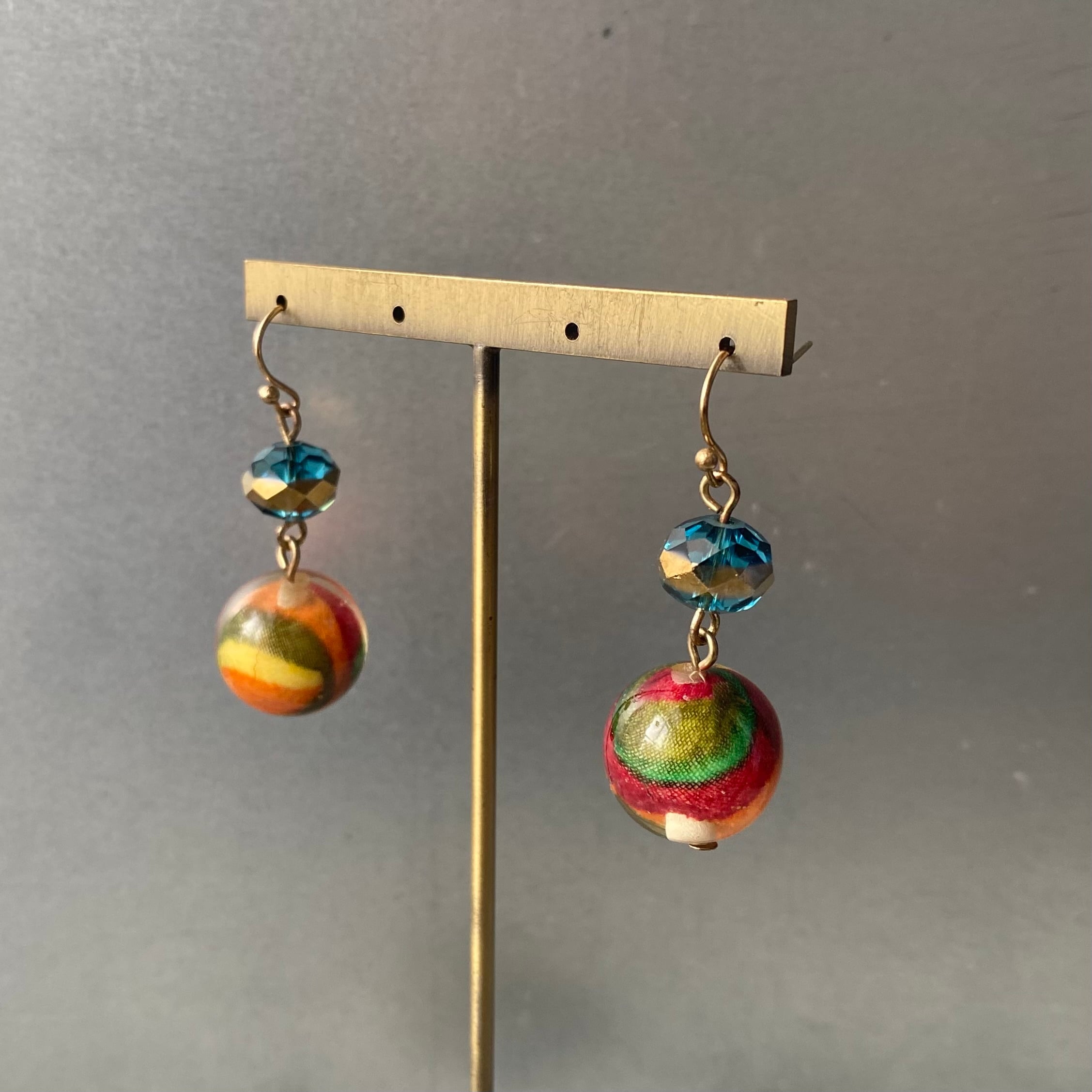 まるでキャンディーようなビーズが揺らめくUSAヴィンテージピアス。ヴィンテージならではのレトロな色合いがお洒落な雰囲気。身につけやすいサイズ感でお顔まわりを明るい雰囲気にしてくれます。
