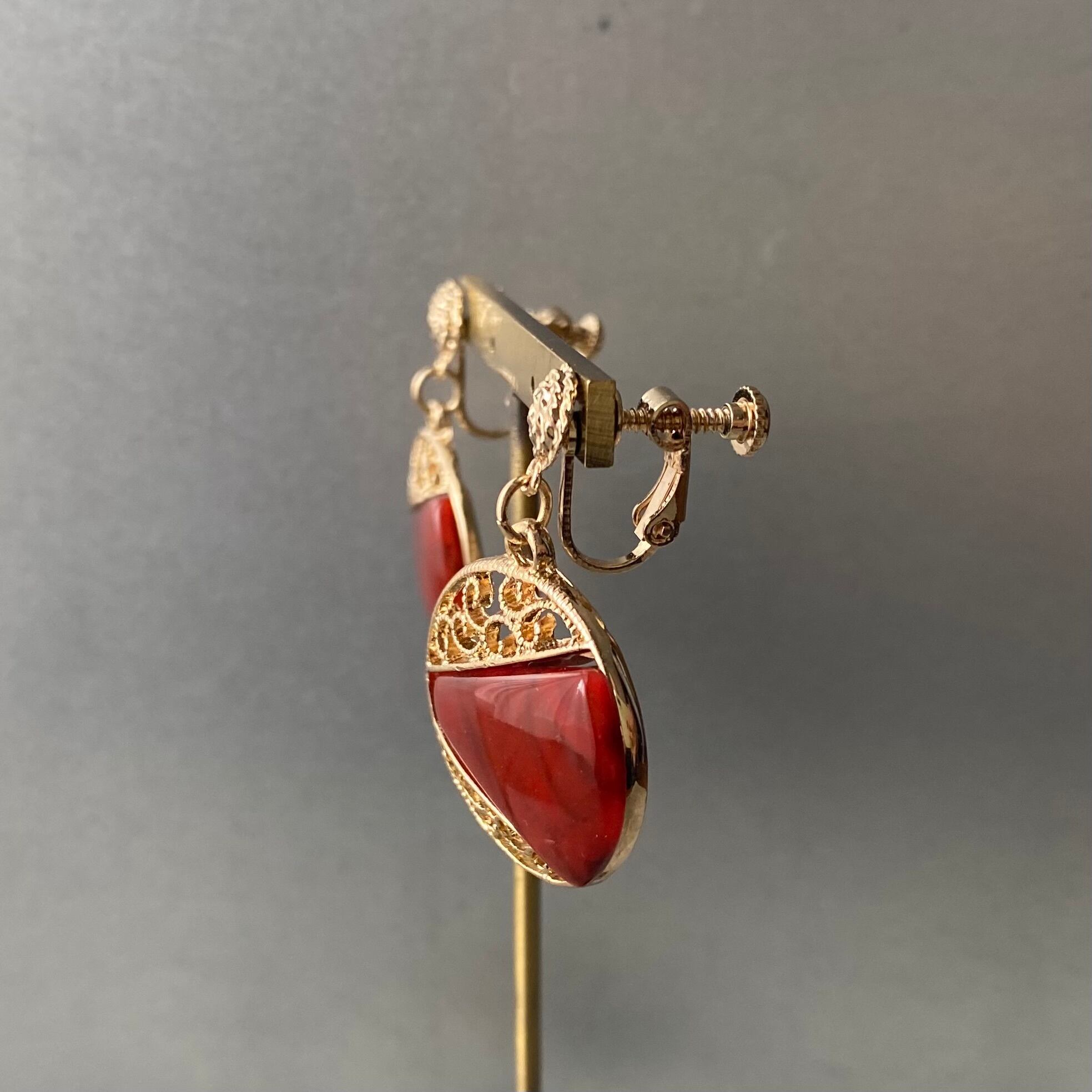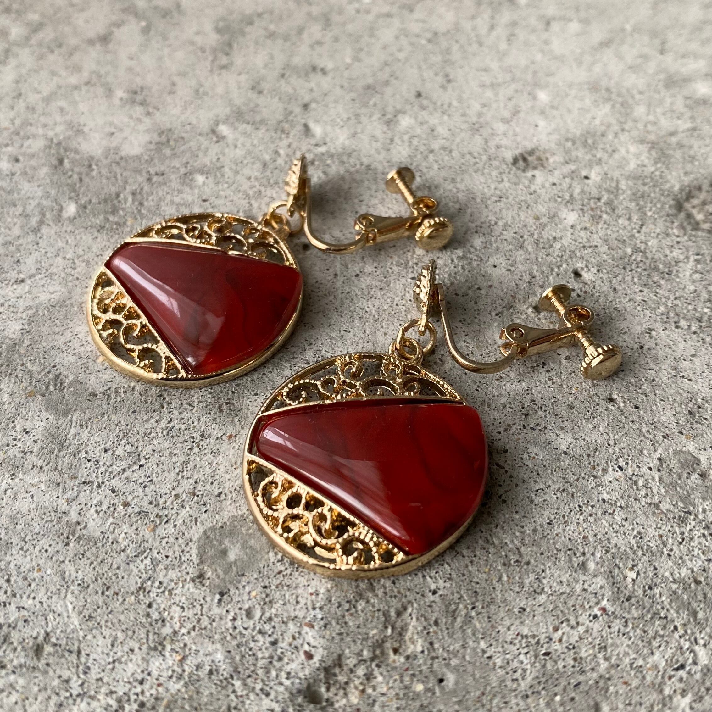 Used retro red stone classical earring レトロ ユーズド アクセサリー レッド ストーン クラシカル イヤリング
