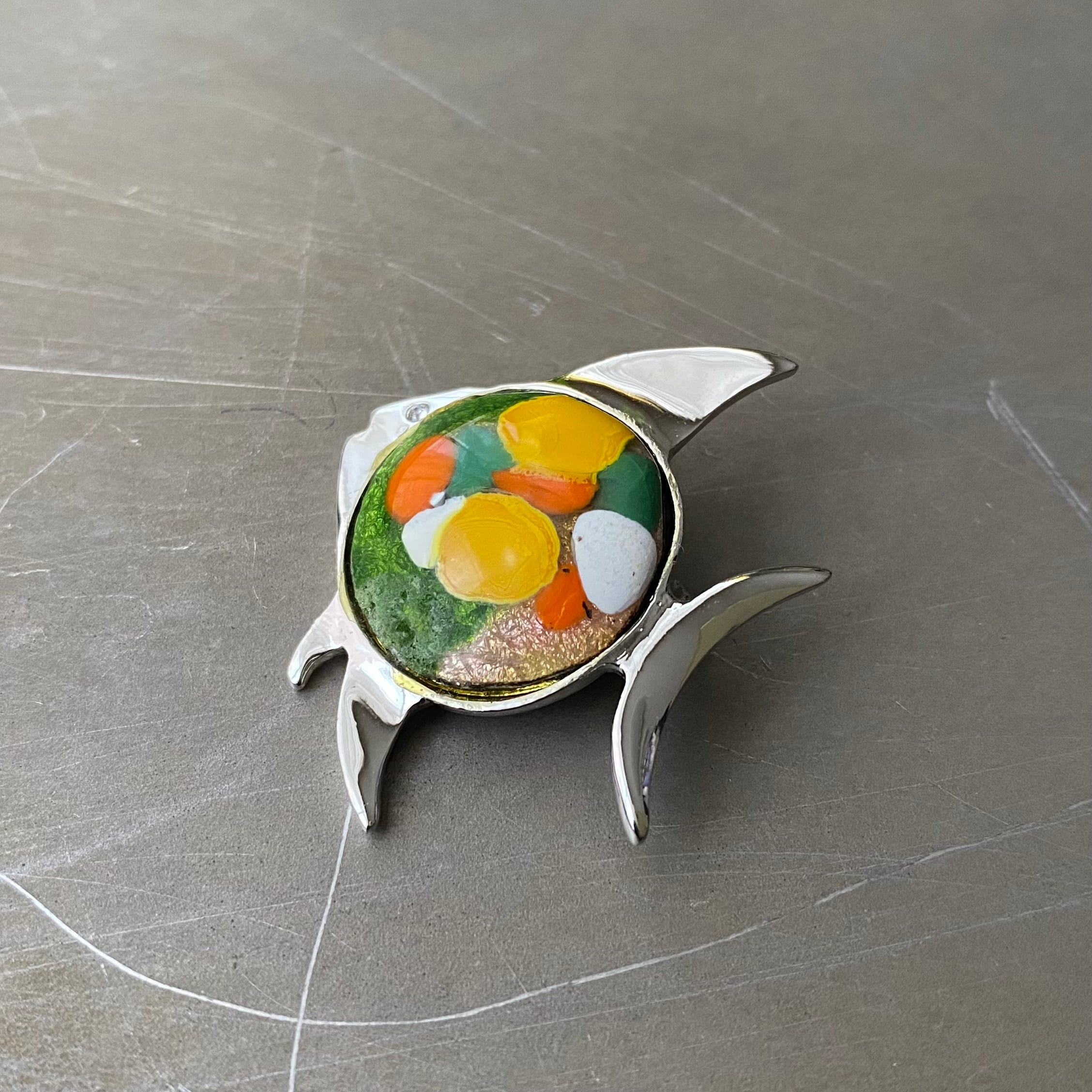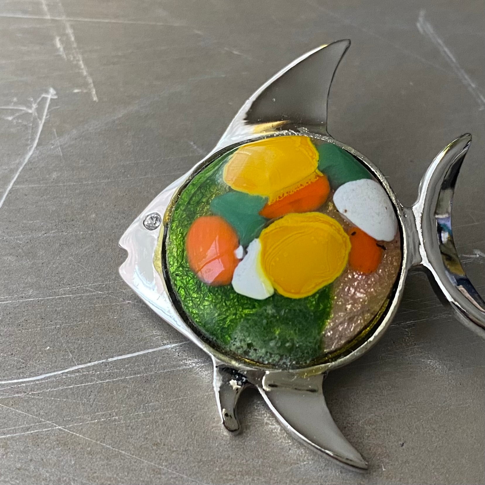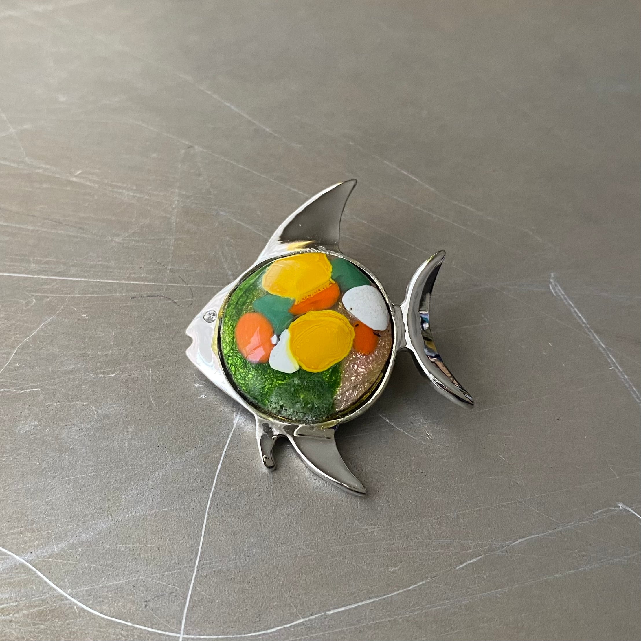 レトロ可愛いお魚のヴィンテージブローチ。エナメルで彩られたカラフルなデザインが魅力的です。スタイリングの差し色になり、ストールやジャケット等のアクセントにおすすめです。