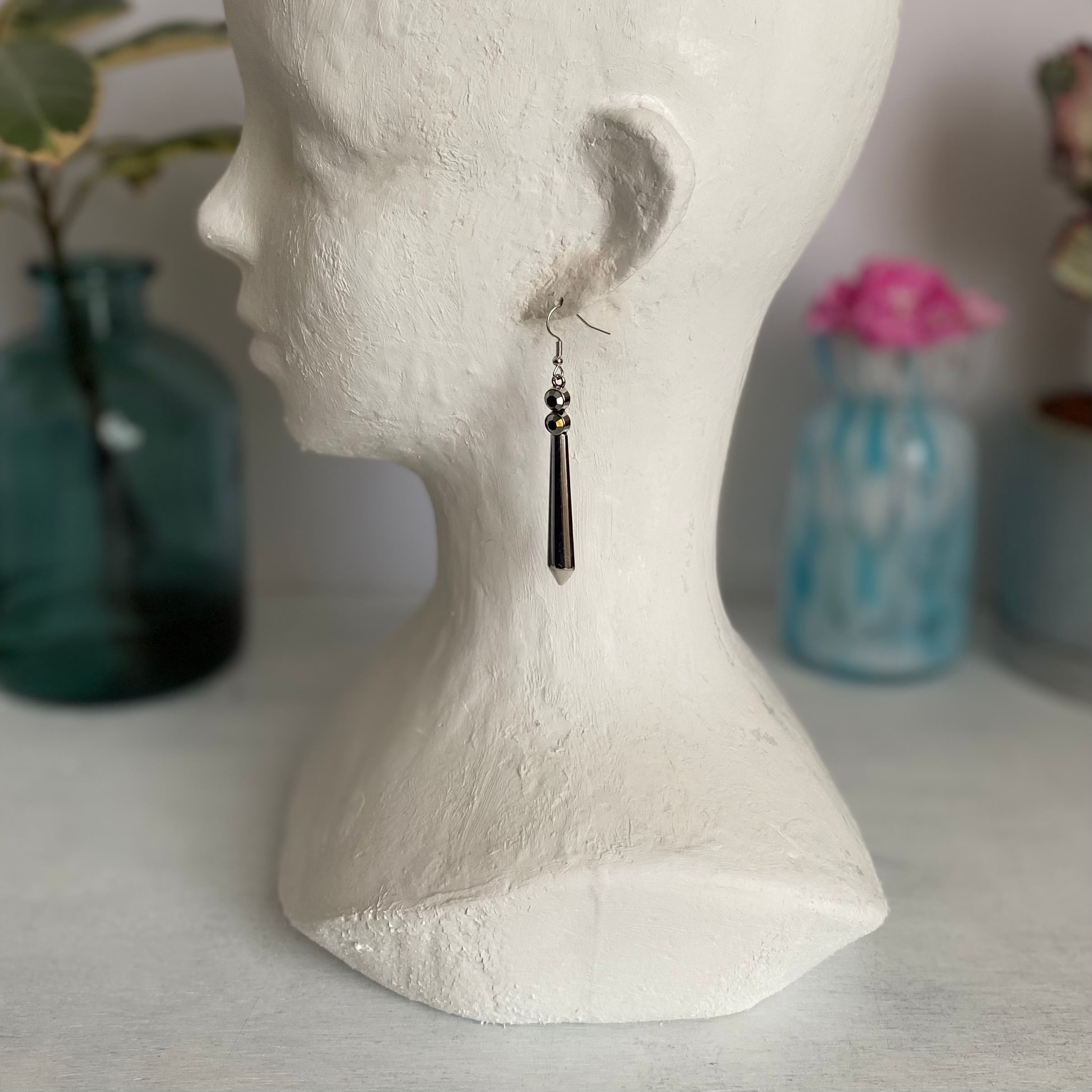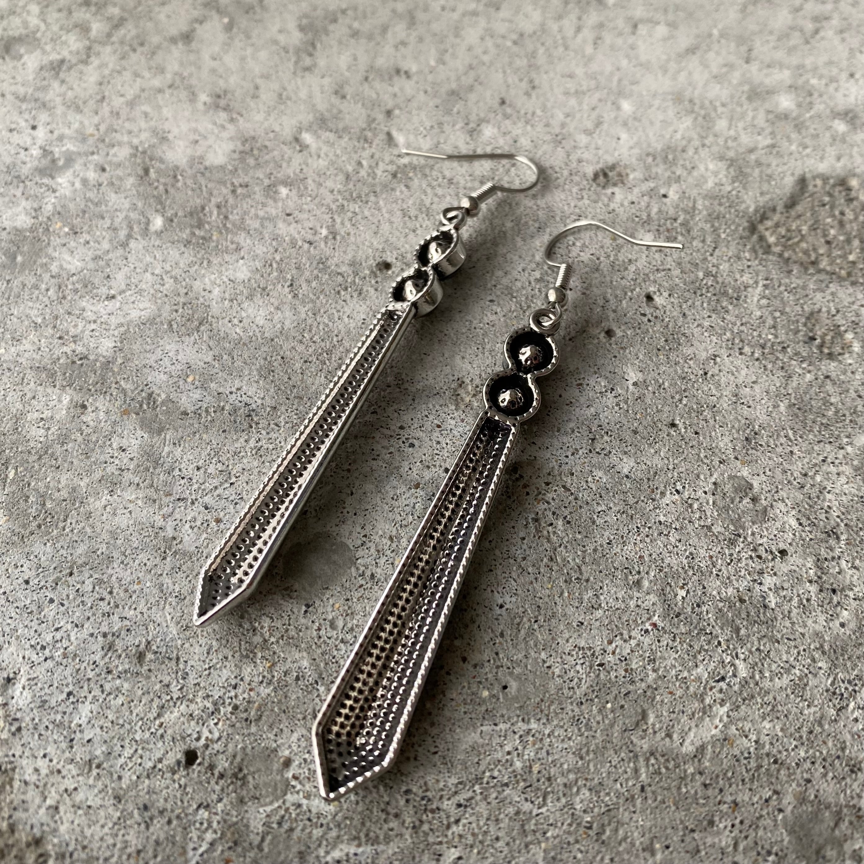 スタイリッシュな雰囲気のUSAユーズドピアス。シルバーカラーのメタルにビジューが輝くクールなデザインが魅力的です。