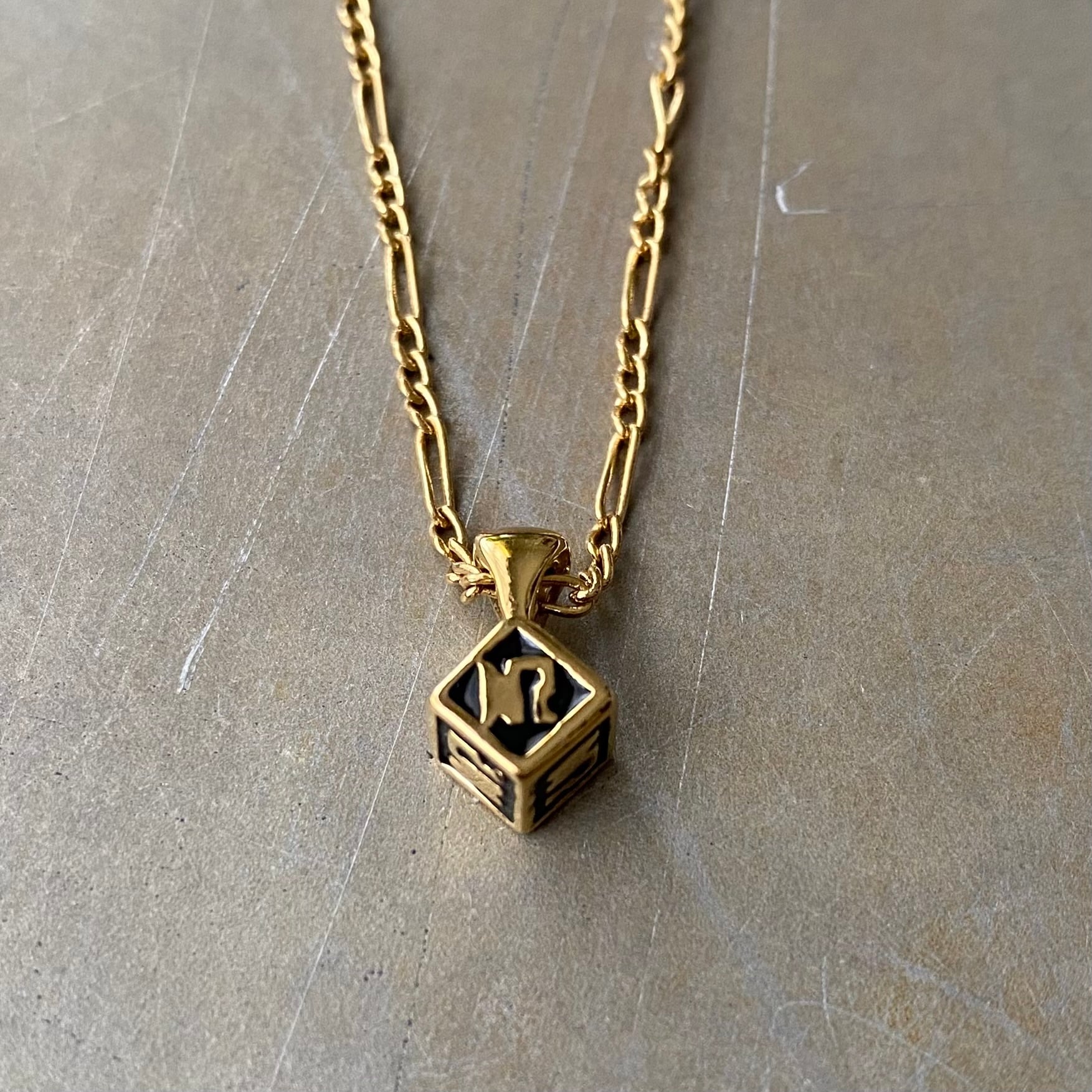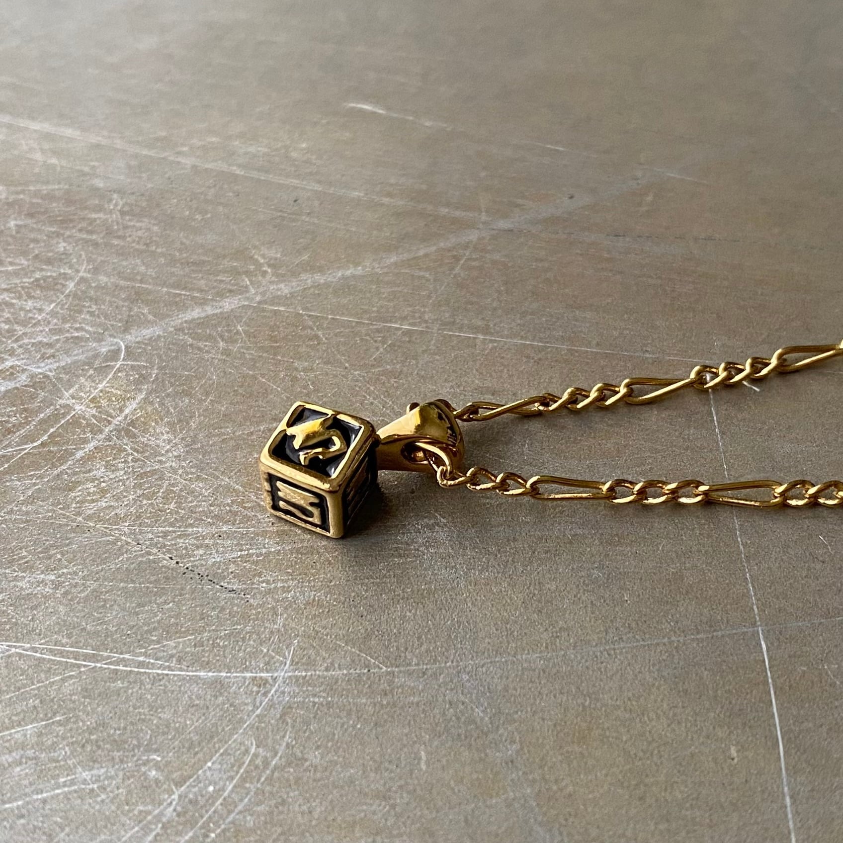 Vintage USA NINA RICCI enamel cube charm necklace レトロ アメリカ ヴィンテージ アクセサリー ニナリッチ ゴールド エナメル キューブ チャーム ネックレス
