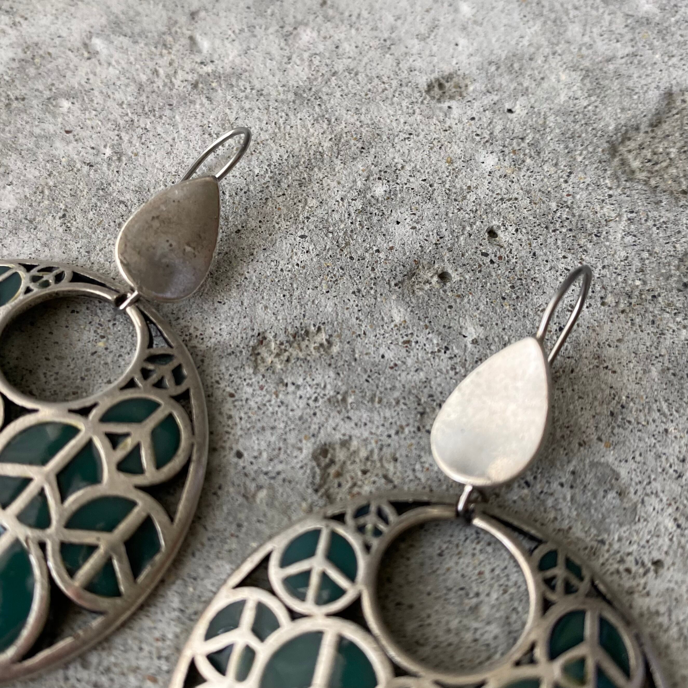 Vintage USA retro green enamel big circle pierce レトロ アメリカ ヴィンテージ アクセサリー グリーン エナメル ビッグ サークル ピアス
