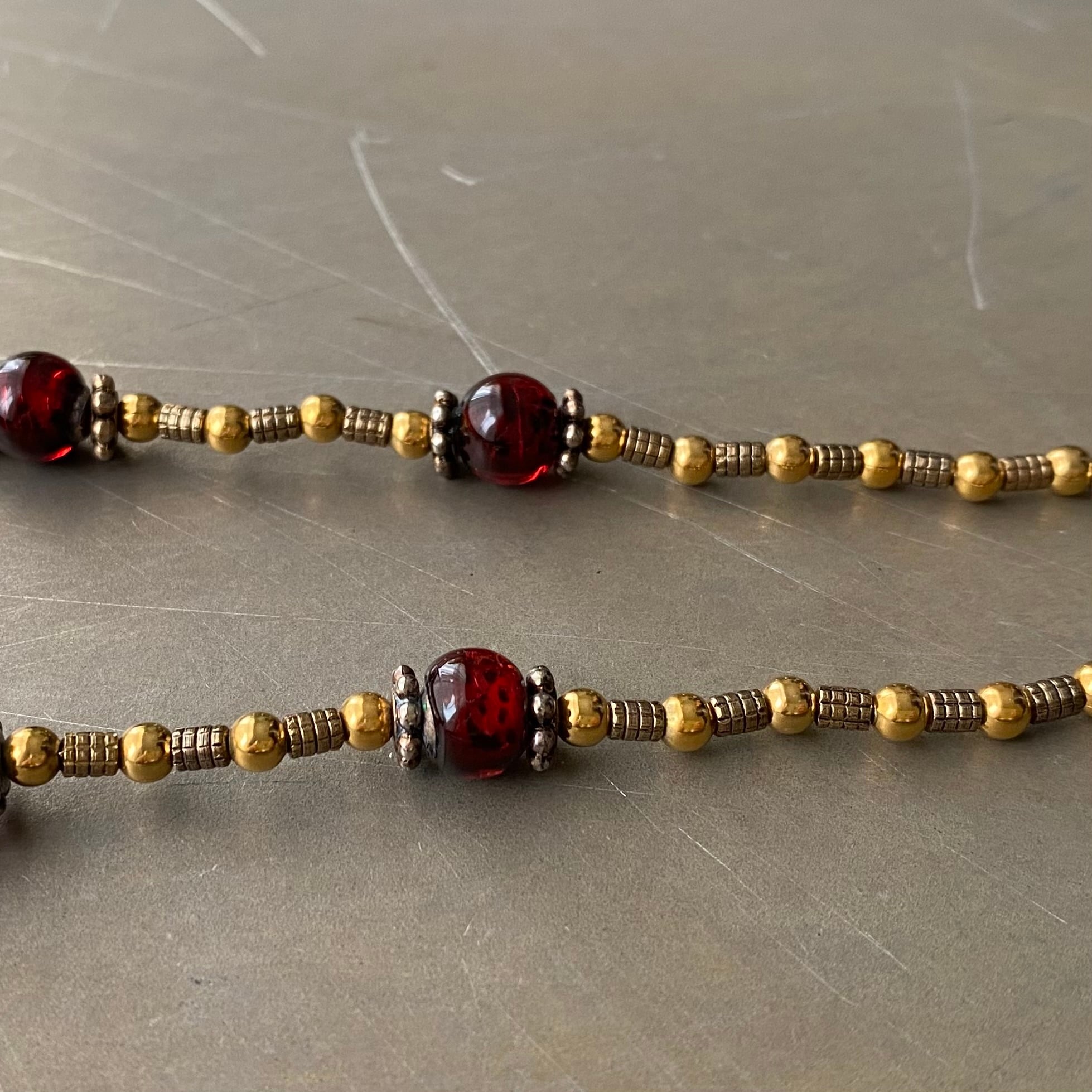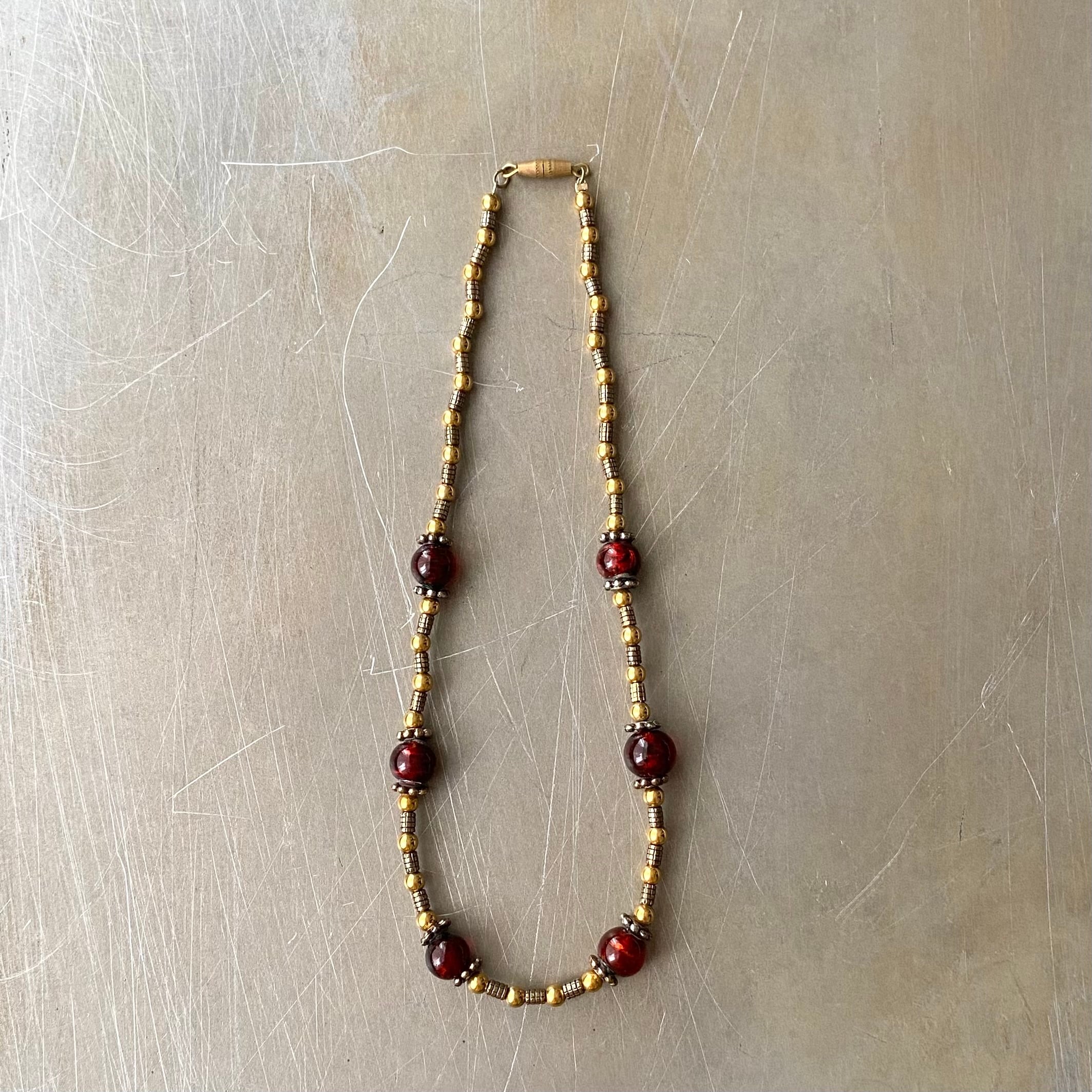 レトロなハンドメイドのガラスビーズが魅力的なUSAヴィンテージネックレス。落ち着いたメタルの色味がクラシカルな雰囲気。身につけやすいサイズ感でスタイリングにお洒落な雰囲気をプラスしてくれます。